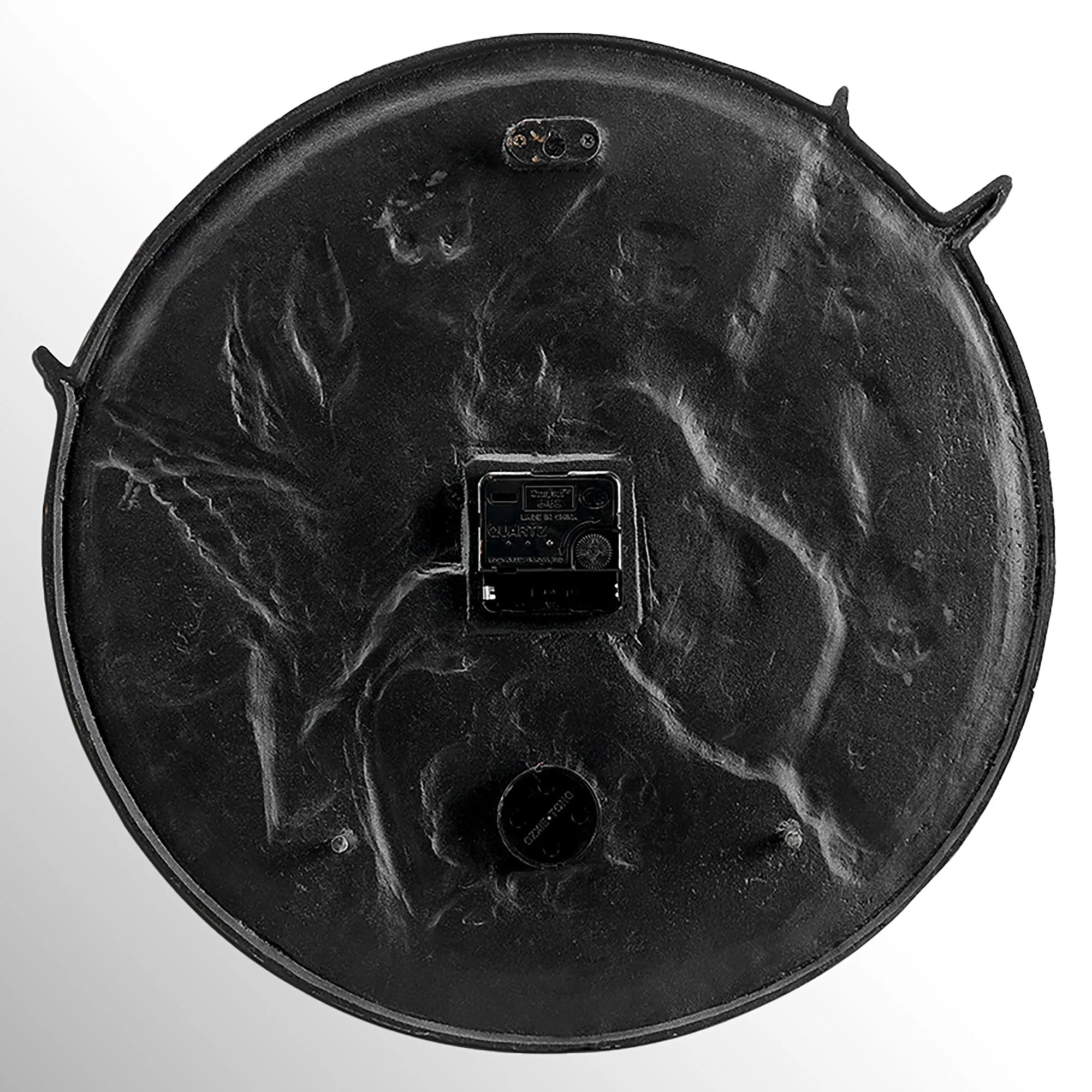 Charming Hummingbirds and flowers display the beauty of nature. This aluminum garden wall clock is hand-finished in bronze and features two gold birds and verdi green blossoms. Roman numerals and hands are gold. The clock not only tells the time, but it also displays the temperature in increments of 20. Requires one AA battery, not included. Indoor or outdoor year-round use. Measures 16"Wx2"Dx15.5"H.