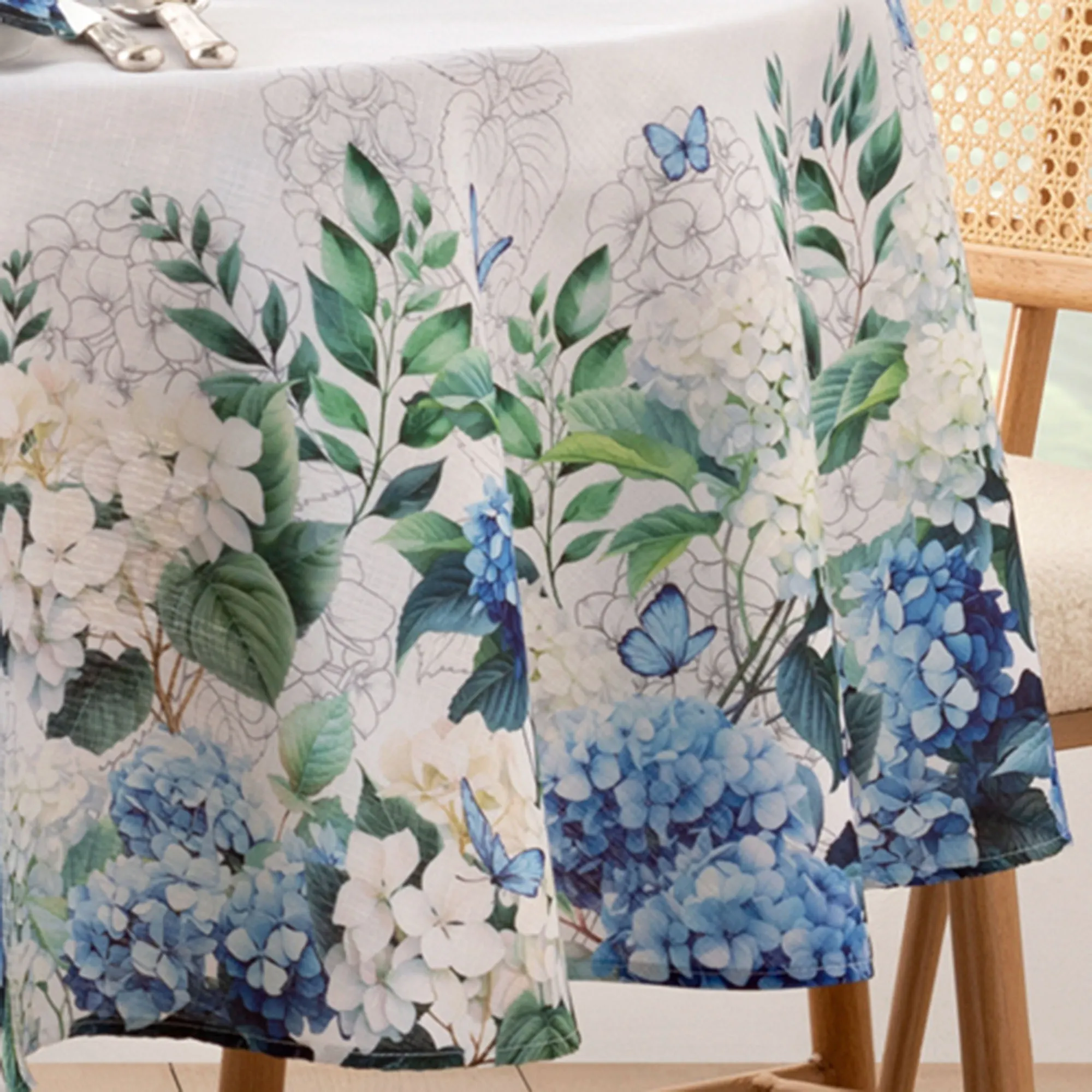 Hydrangea Garden Blue Floral Round Tablecloth and Table Linens