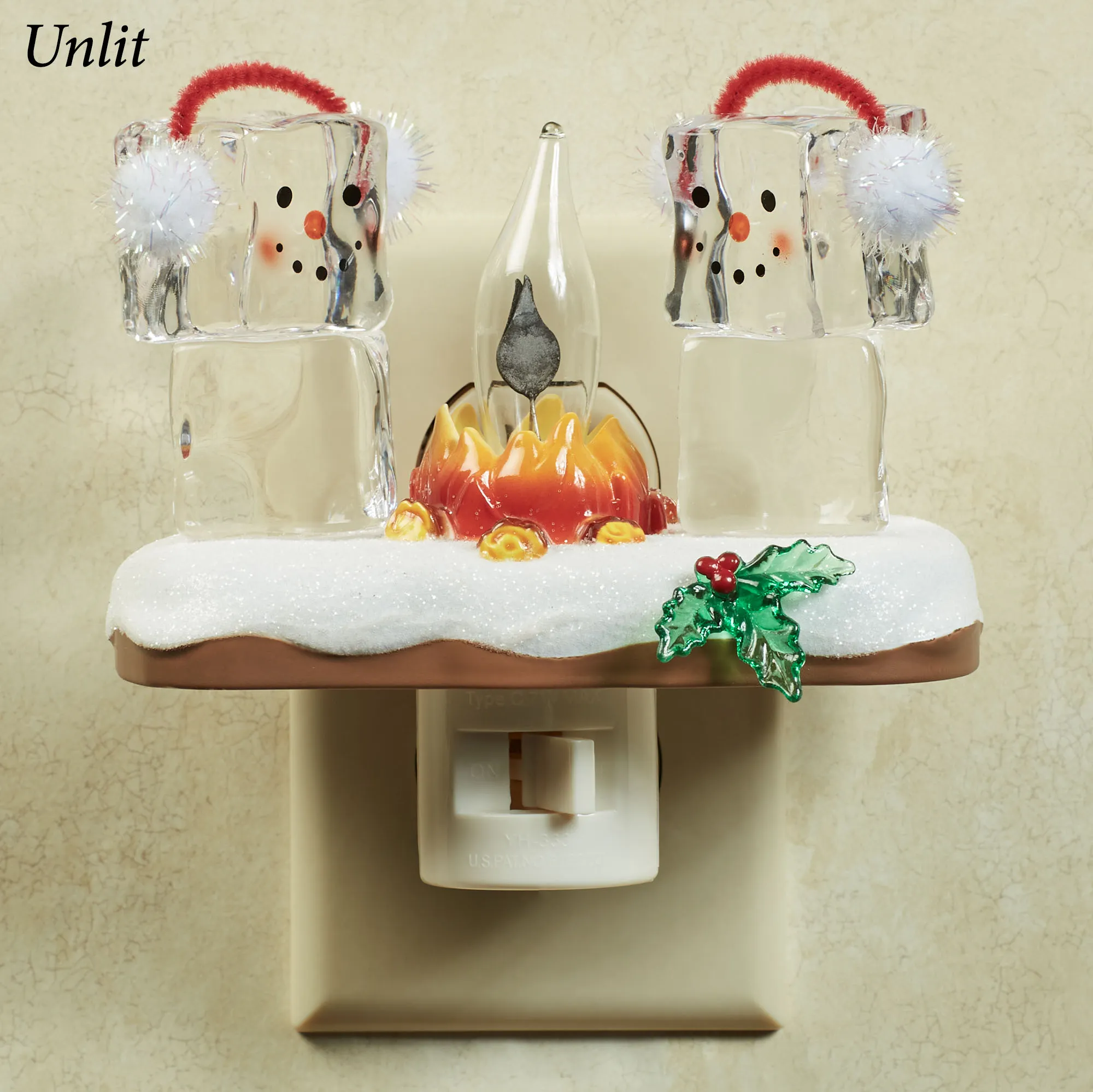 Ice Cube Snowmen Flicker Flame Winter Campfire Nightlight by Roman Lights