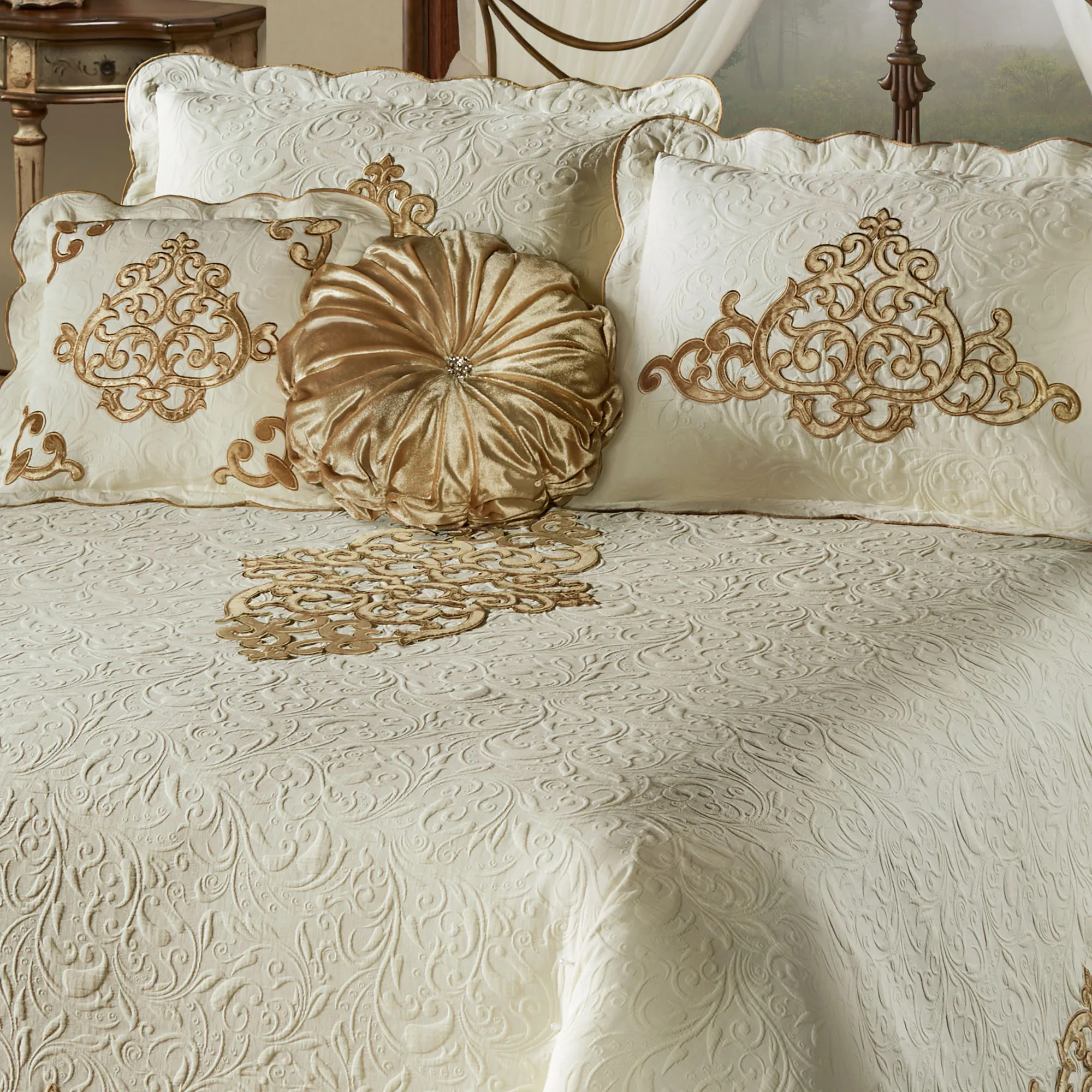 Imperial Gold Scroll and Ivory Woven Matelasse Oversized Bedspread Set Bedding
