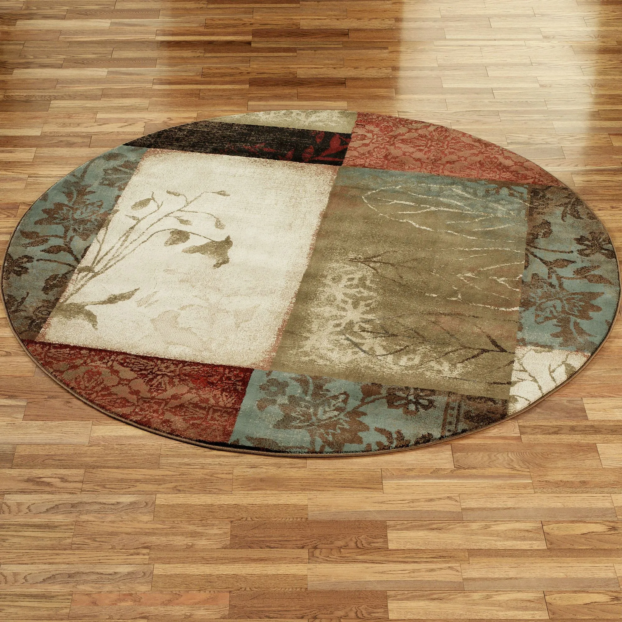 The elegant Impression Leaf Round Rugs are machine-woven of heat-set polypropylene and feature rich hues that are modern and stylish. Round area rugs, .5" thick, are a wonderful addition to your home with their subtle, neutral hues of ivory, crimson, soft blue, brown, olive, and dark charcoal. Block patterns, leaf outlines, abstract florals, and solid color leaves complete these versatile round rugs. We recommend professional cleaning by a rug cleaner. Imported.
