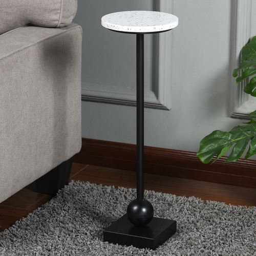 Ingrid Black Metal Drink Table with White Terrazzo Top