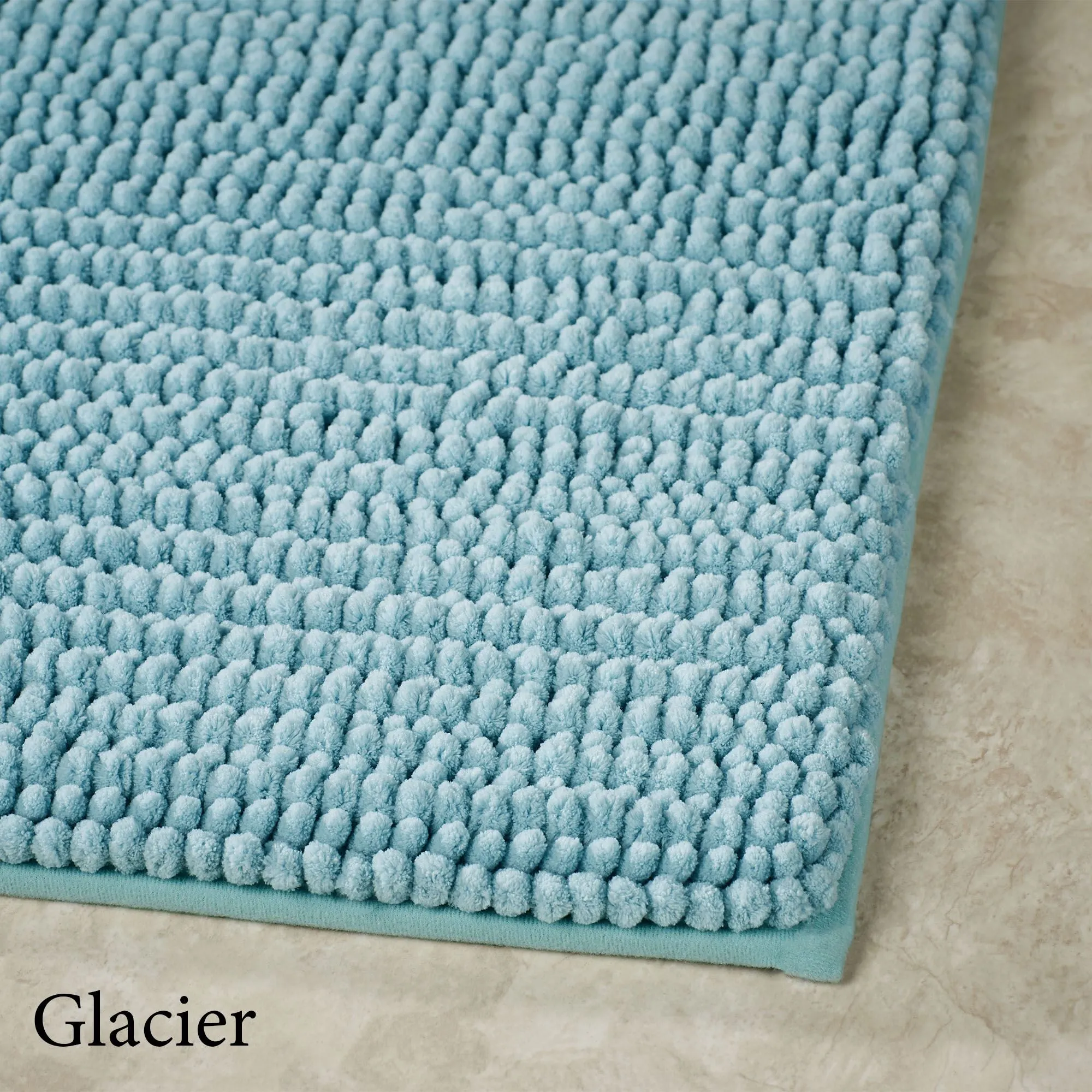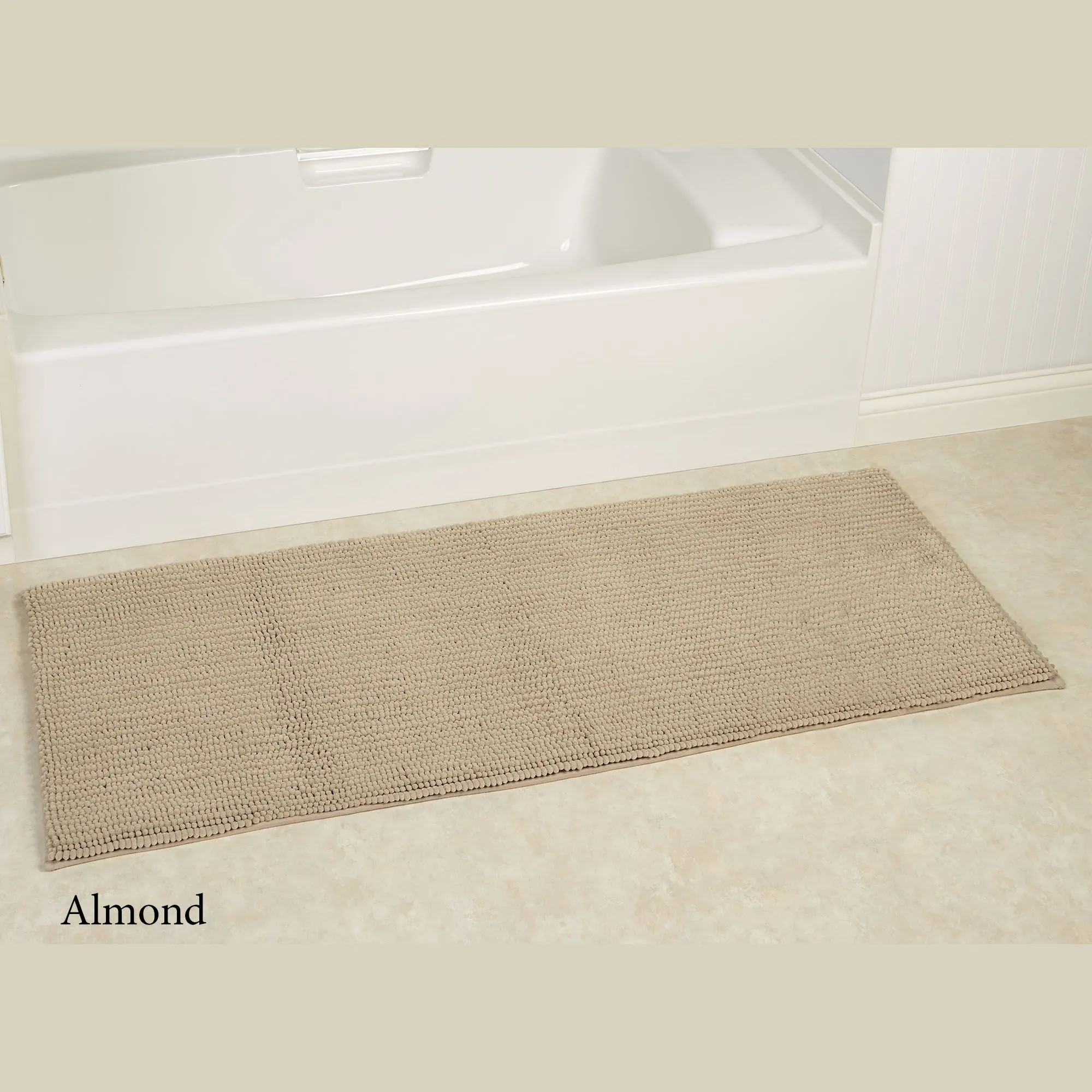 The Island Life Bath Rug Runner, with its tufted designs, is soft and luxurious underfoot. This micro denier polyester rug, 1" thick, is a solid color with memory foam fill and a nonskid latex backing. Runner is 24"x60" (2'x5'). Specify Sage, Almond, Glacier, Silver, or White. Machine washable. Imported.