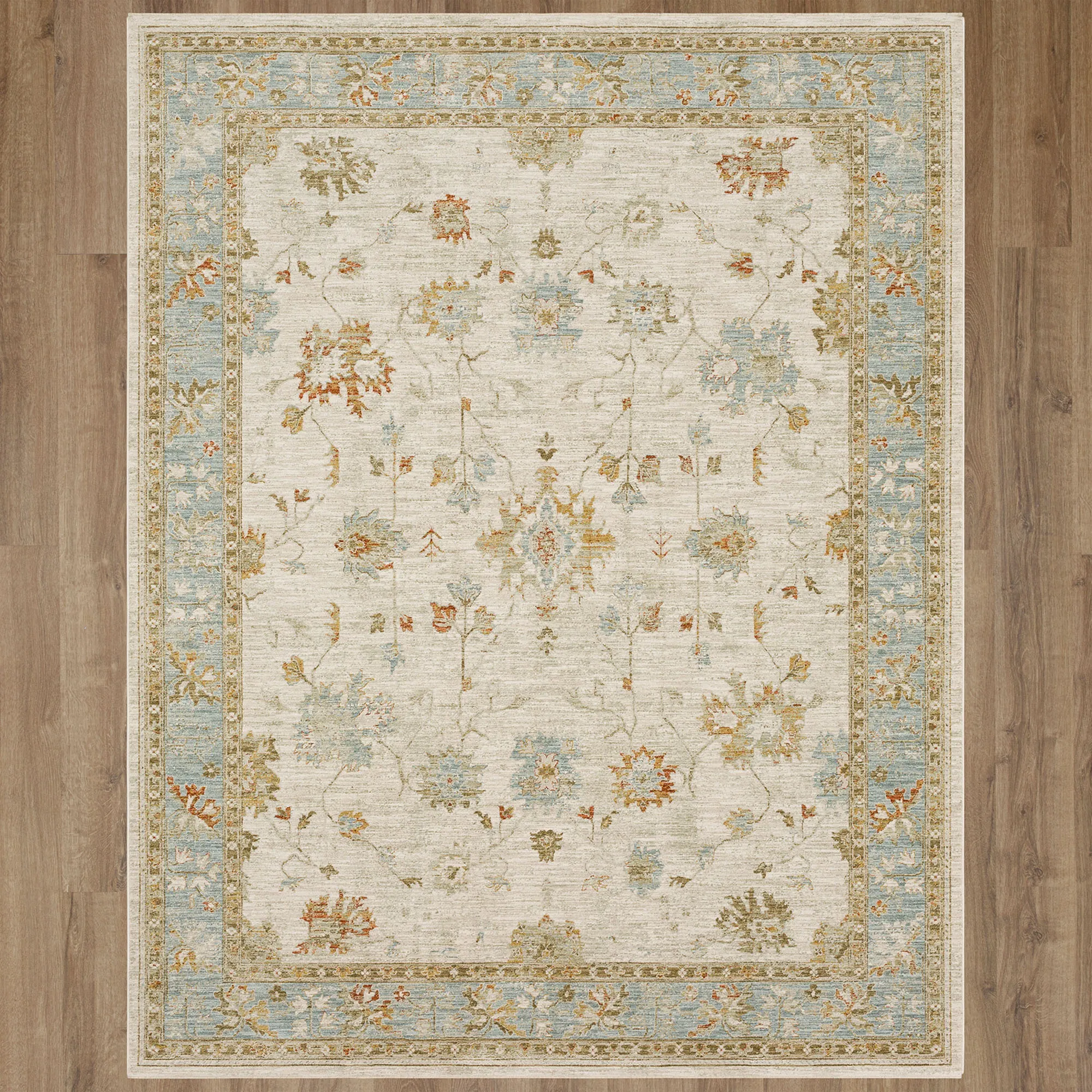 Ivette Stain Resistant Variegated Ivory Traditional Palmette Area Rugs
