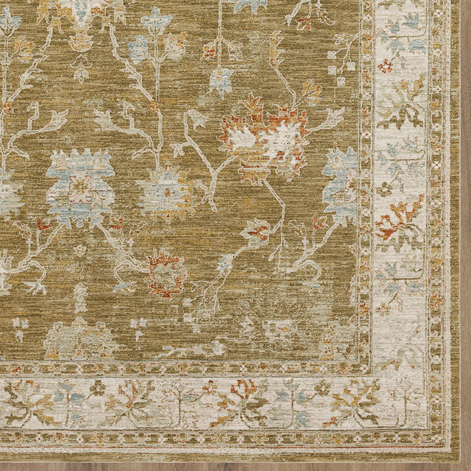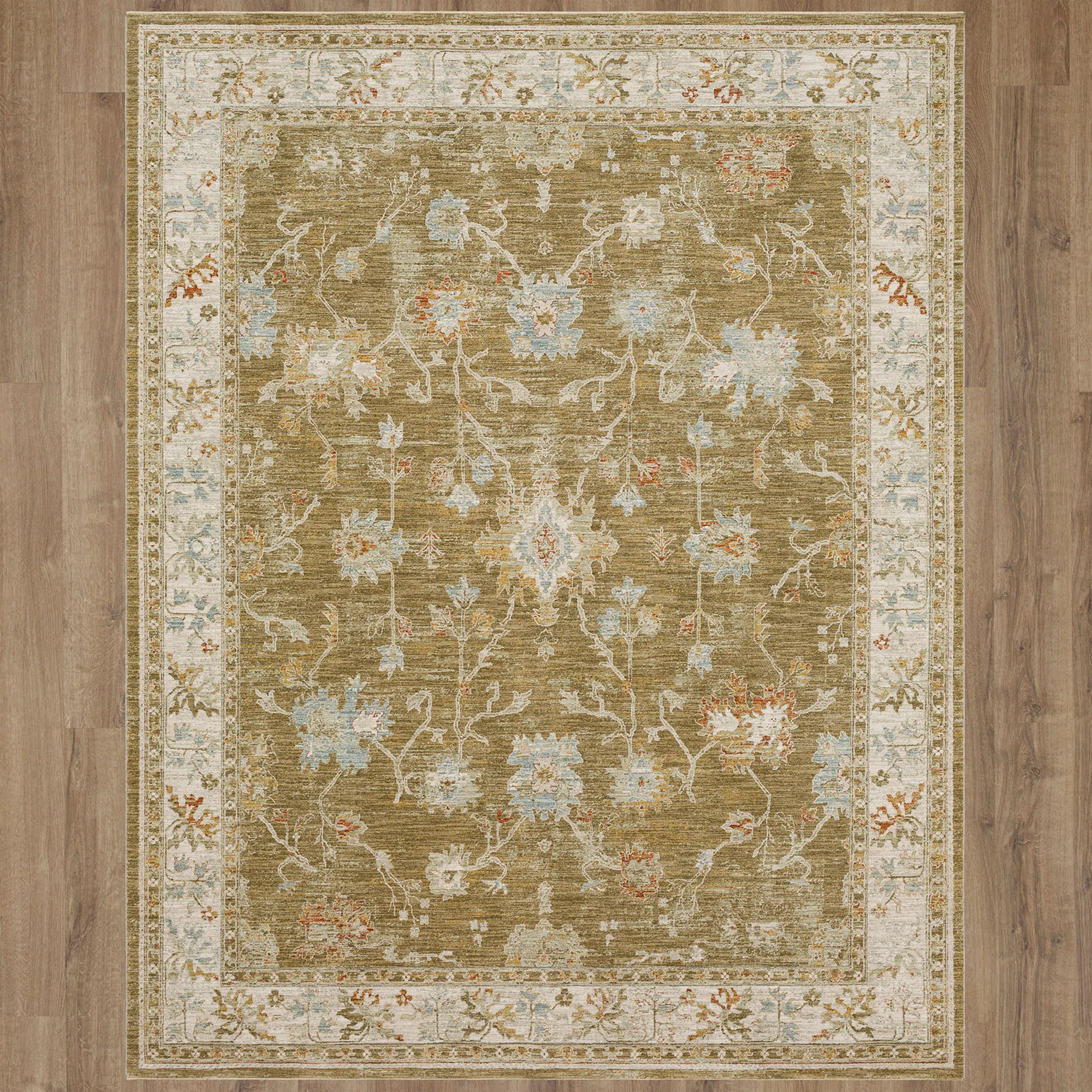 Ivette Stain Resistant Variegated Light Taupe Traditional Palmette Area Rugs