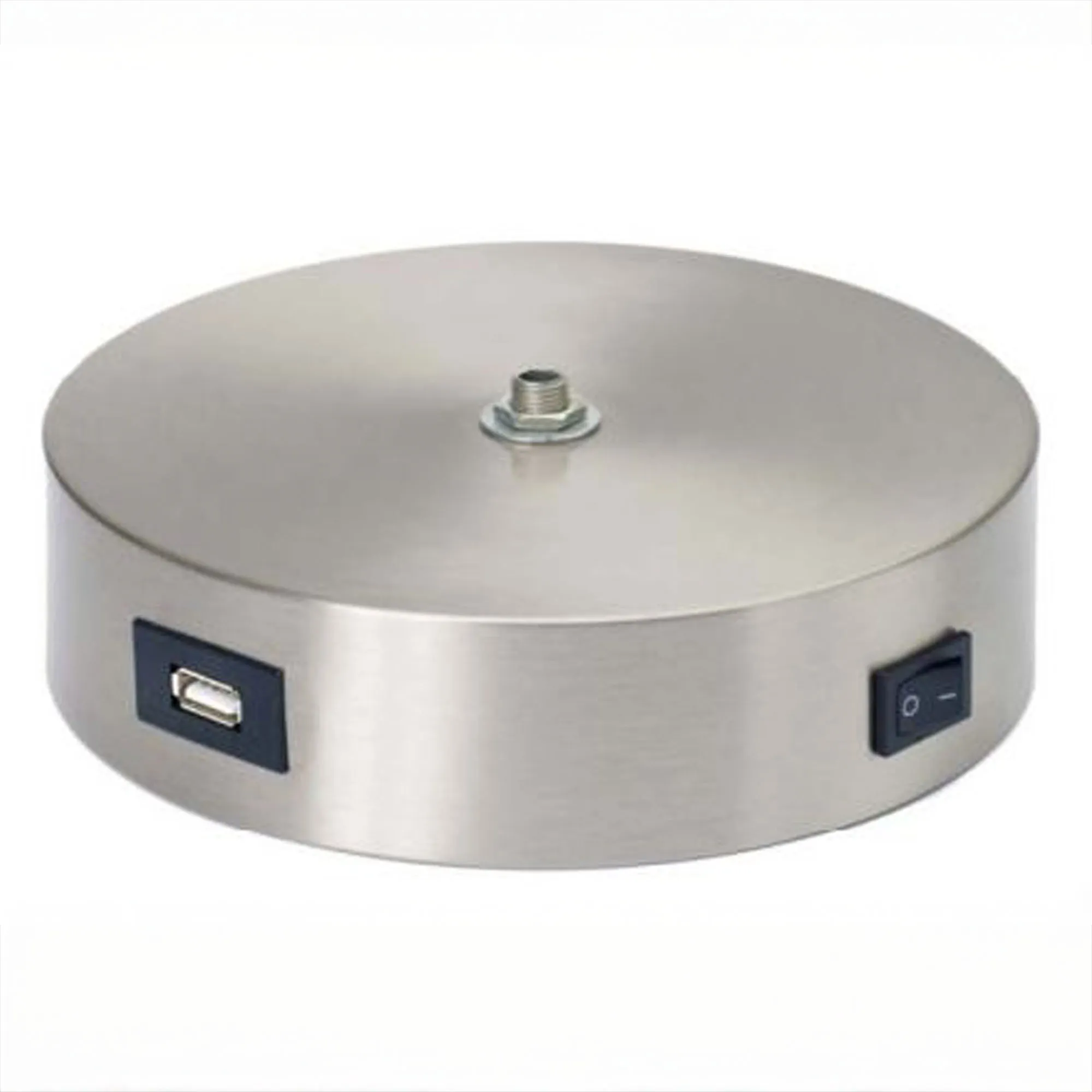 • Optional base has a USB port, outlet, and on/off switch