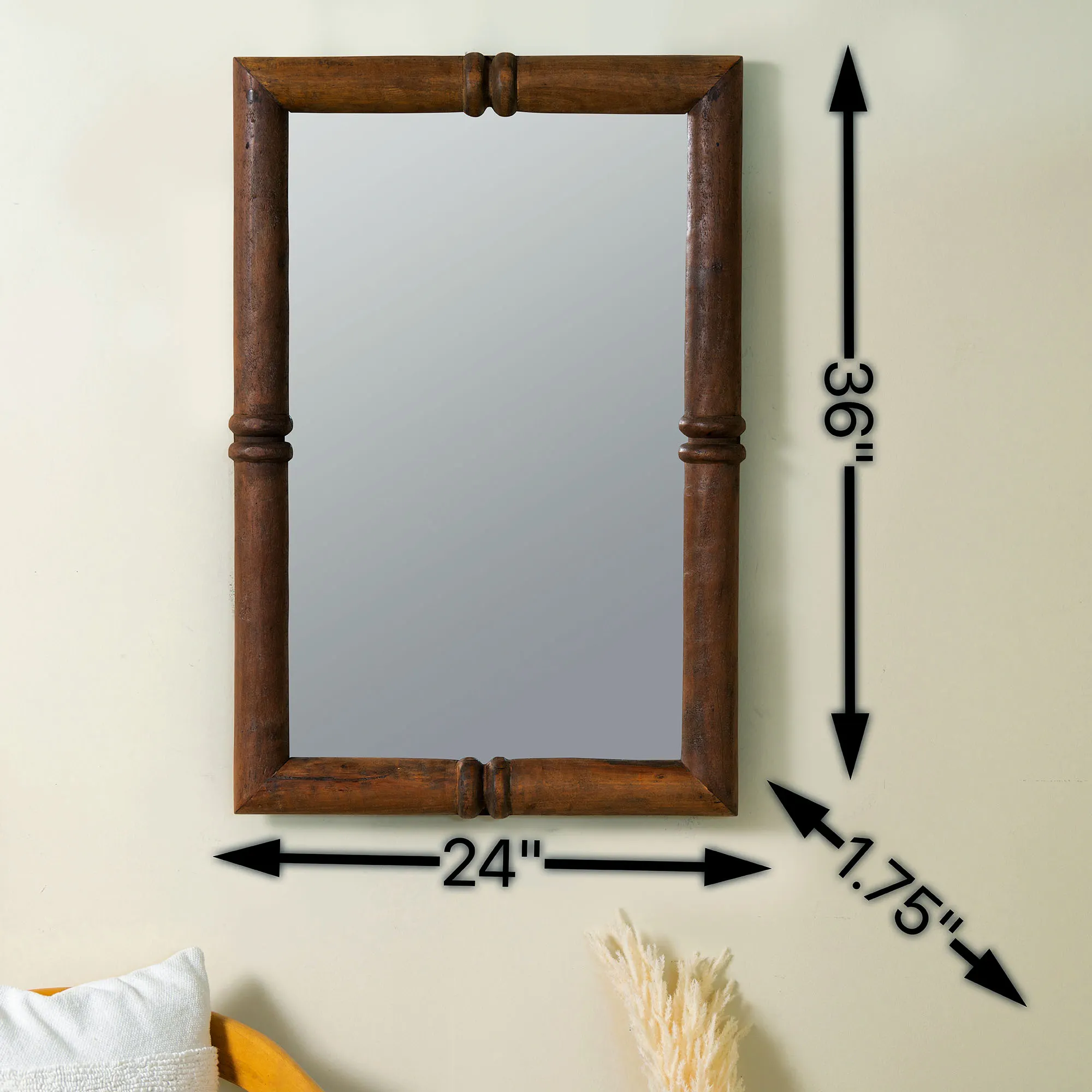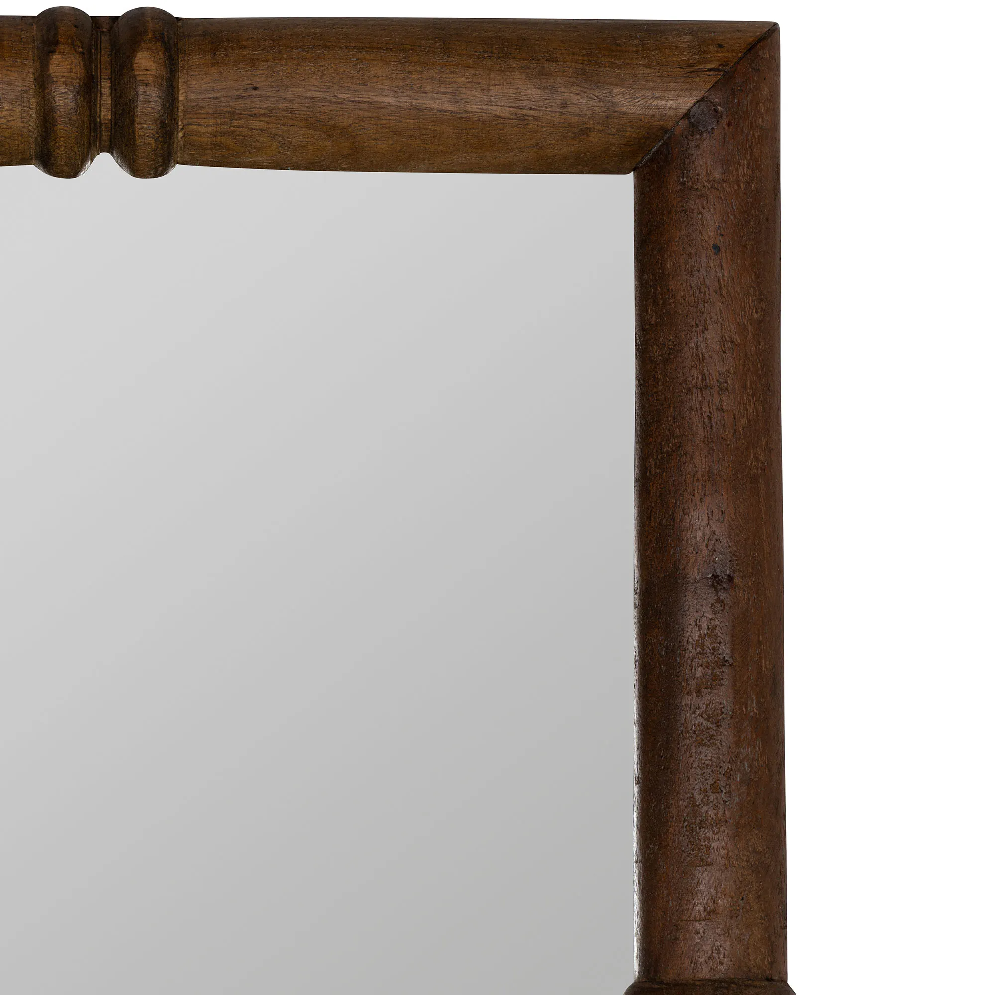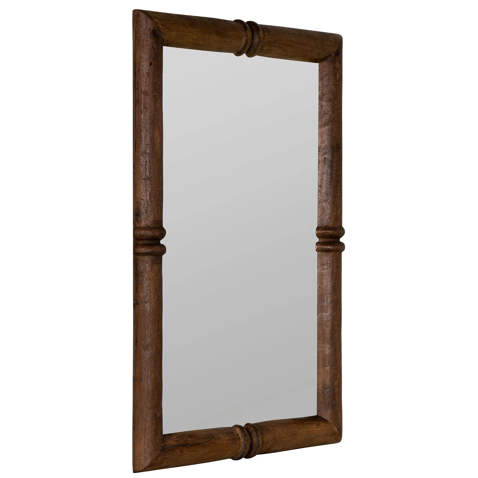 Spool designs add charm to the Jeanne Wall Mirror. This traditional wood wall mirror has a striking look, a central glass mirror (19"x30.5"), and a walnut finish. Can hang vertically or horizontally. Overall, the rectangular wall mirror measures 24"Wx2"Dx36"H; weighs 20 lbs.
