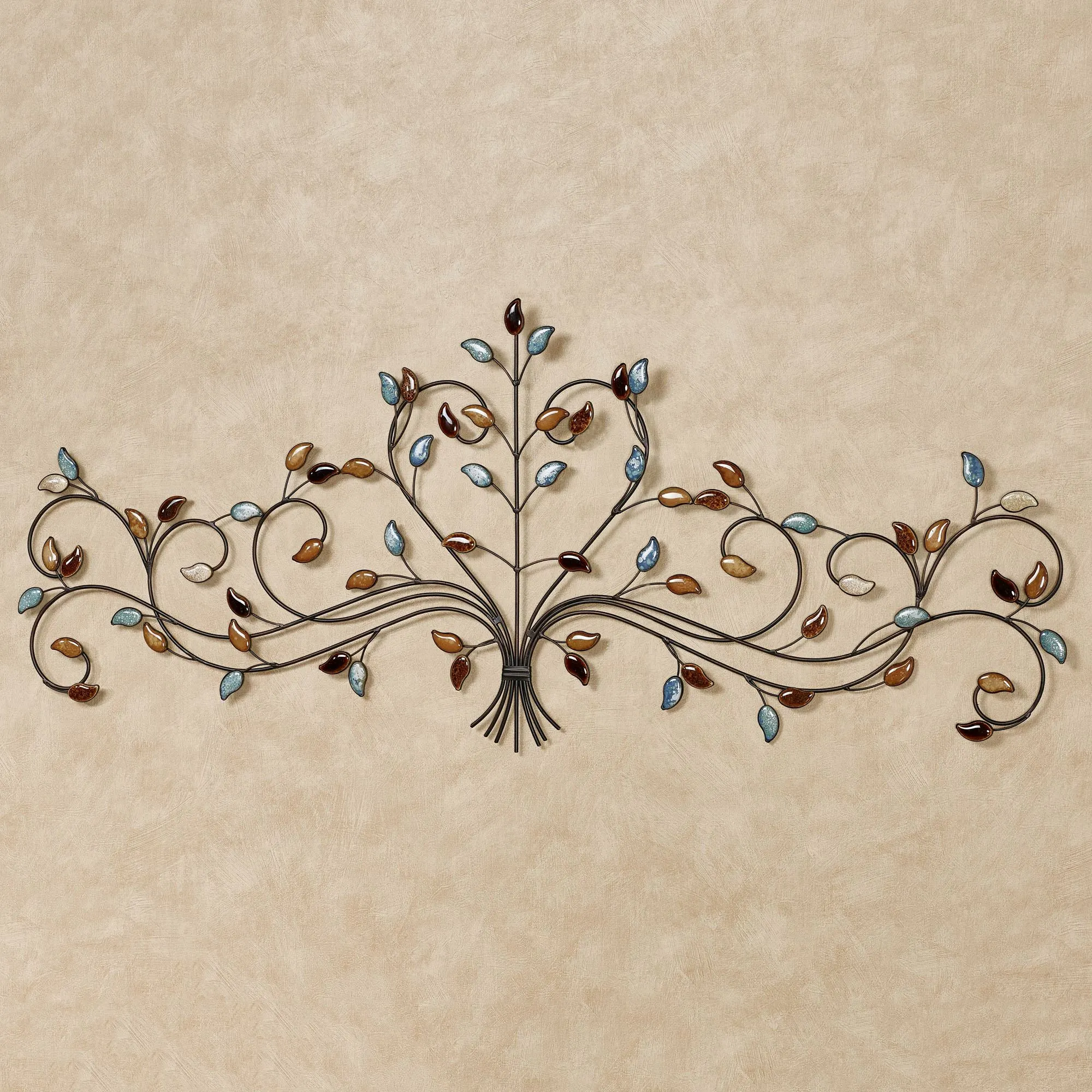 Wispy scrolls surround the heart featured on the Jeweled Love Wall Grille. Openwork metal wall accent has a bronze finish and is accented with approx. 68 ceramic jewels in shades of mocha, caramel, cornflower, chocolate, pearl, and teal. Measures 50"Wx0.5"Dx19"H.