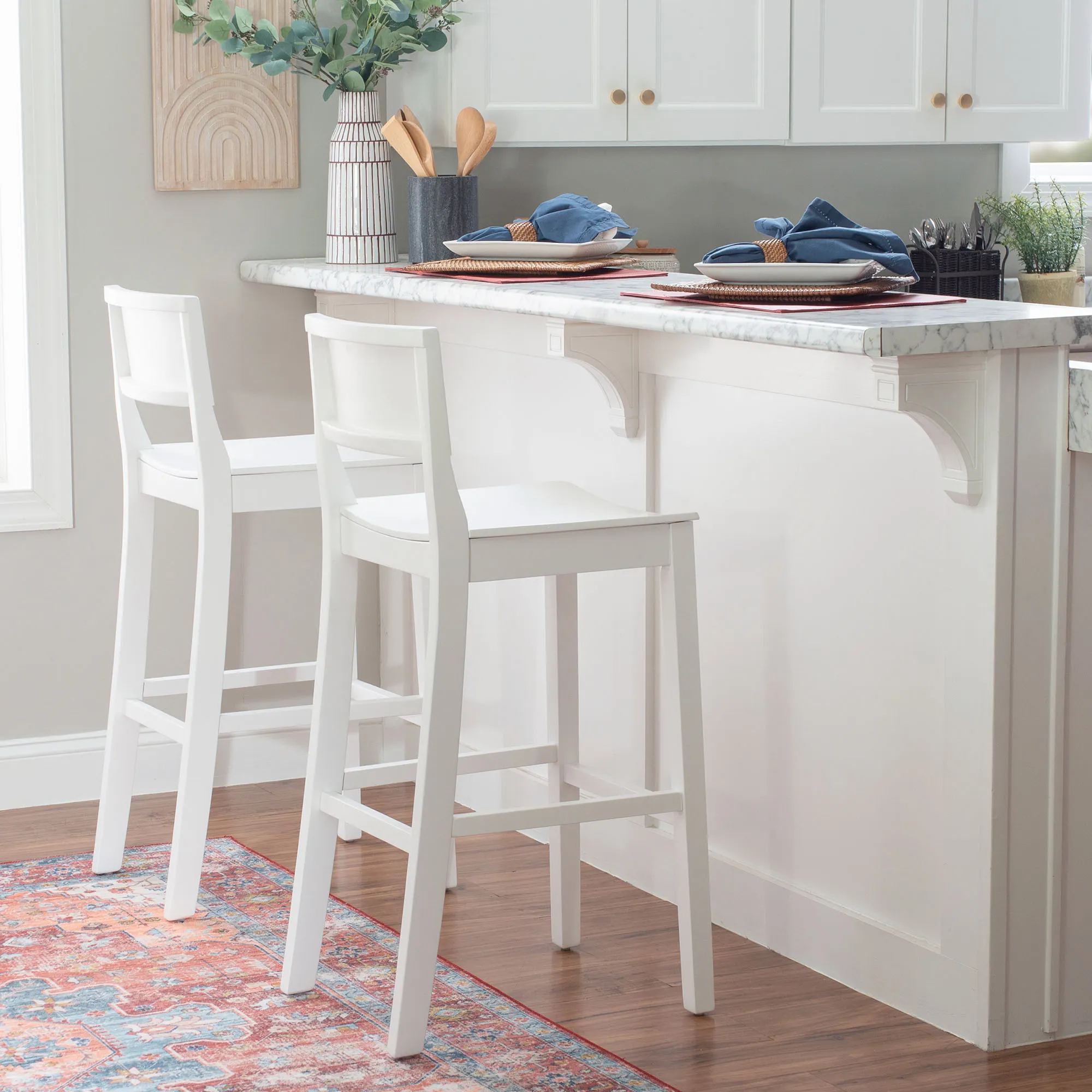 Johannes White Wood Counter or Bar Stool Set of 2