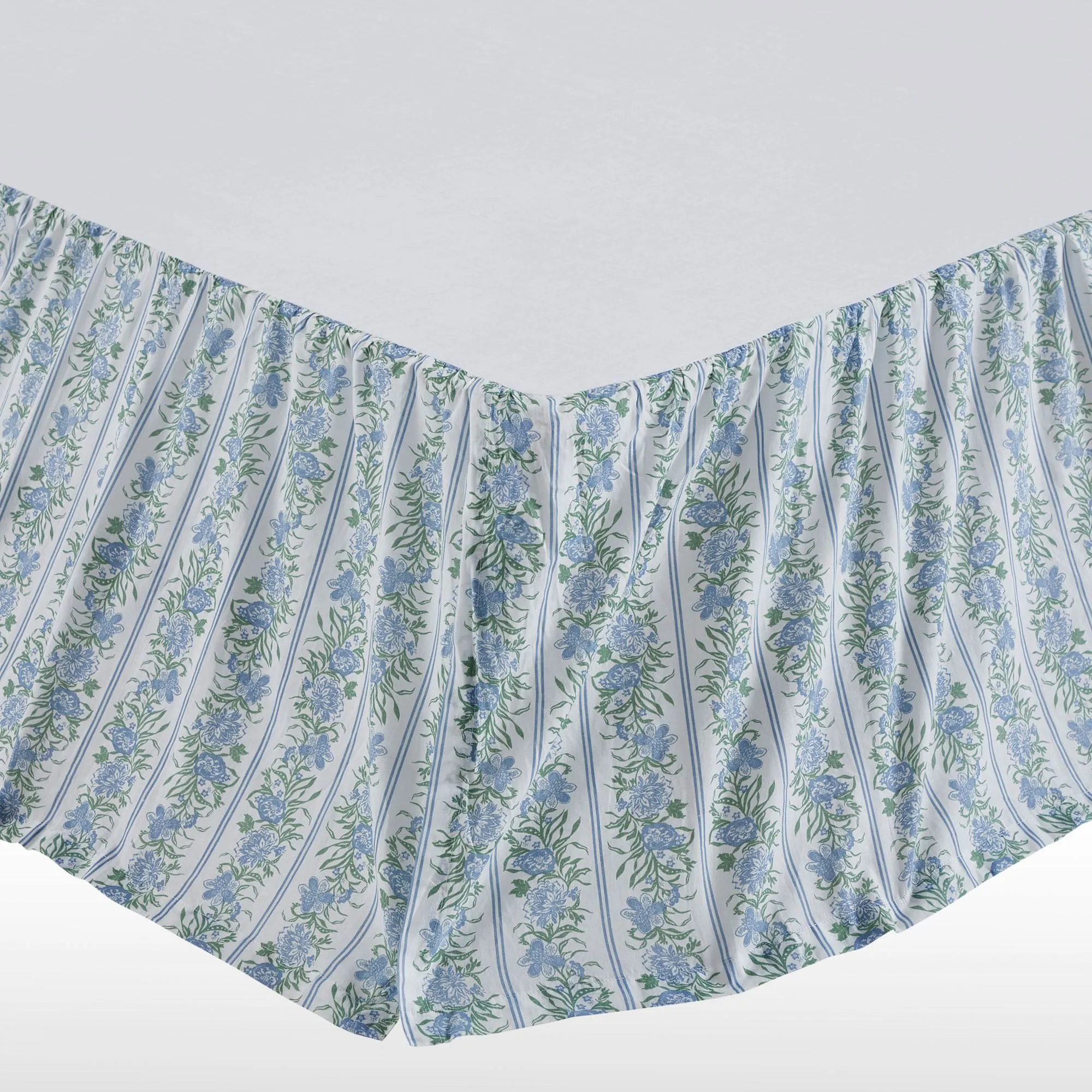 The 16" drop Gathered Bedskirt has a vining print on cotton with split corners. Choose Twin, Queen, or King.