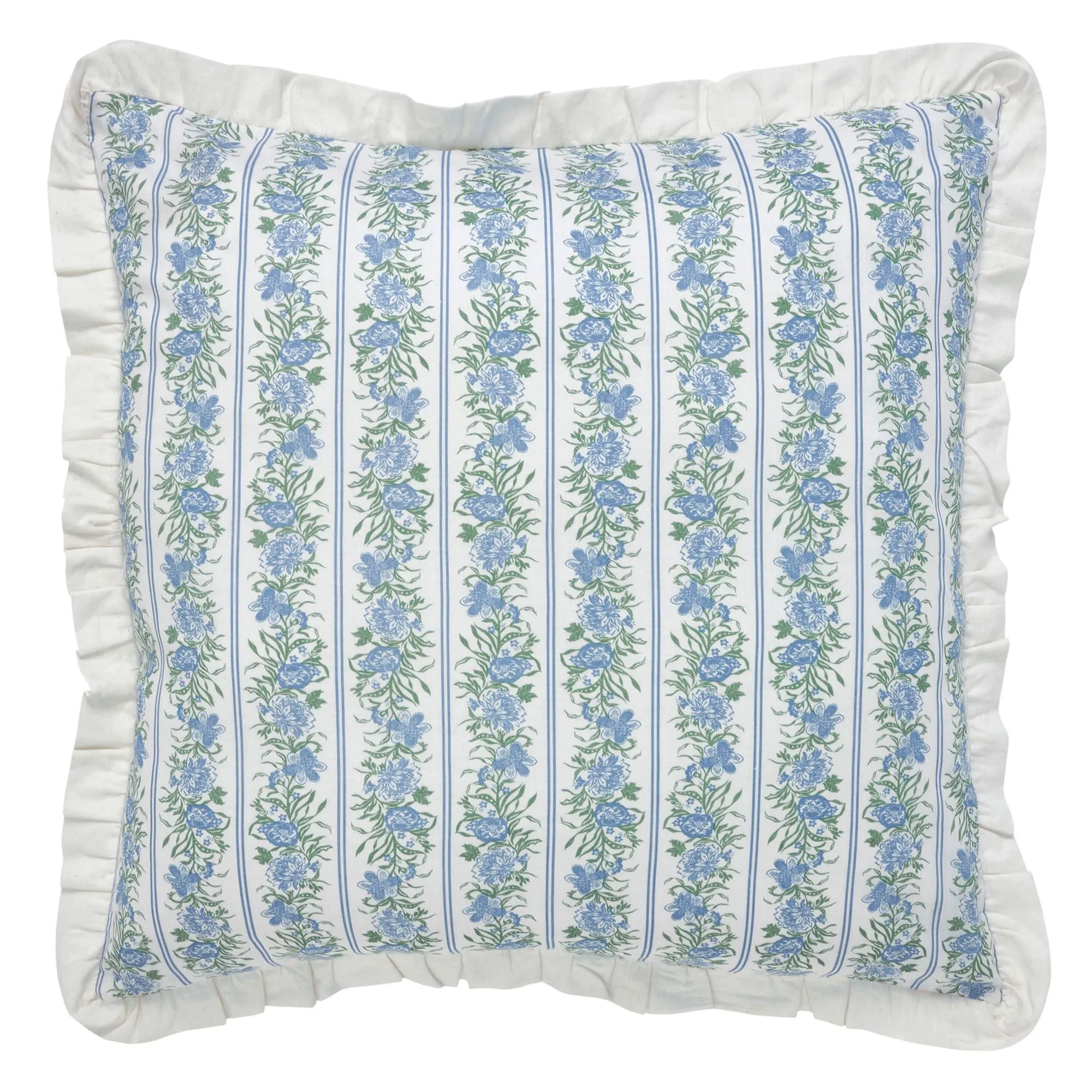 European Sham has a vining print on cotton with a ruffled flange; tie closure.