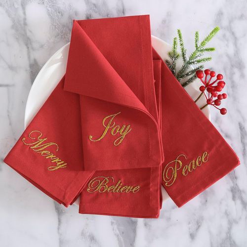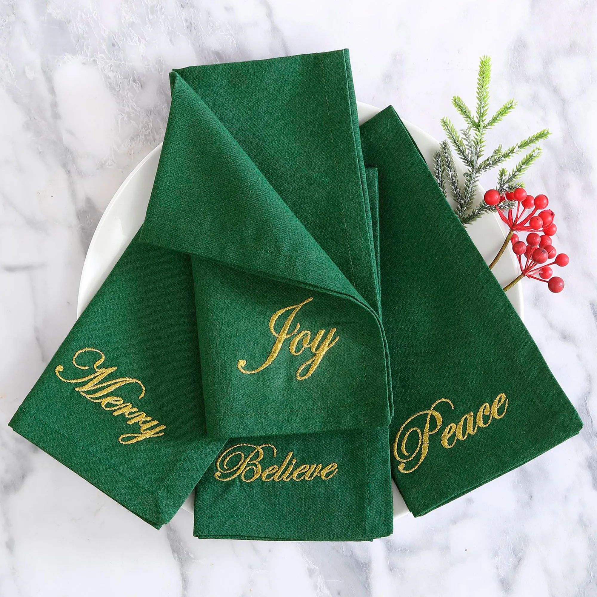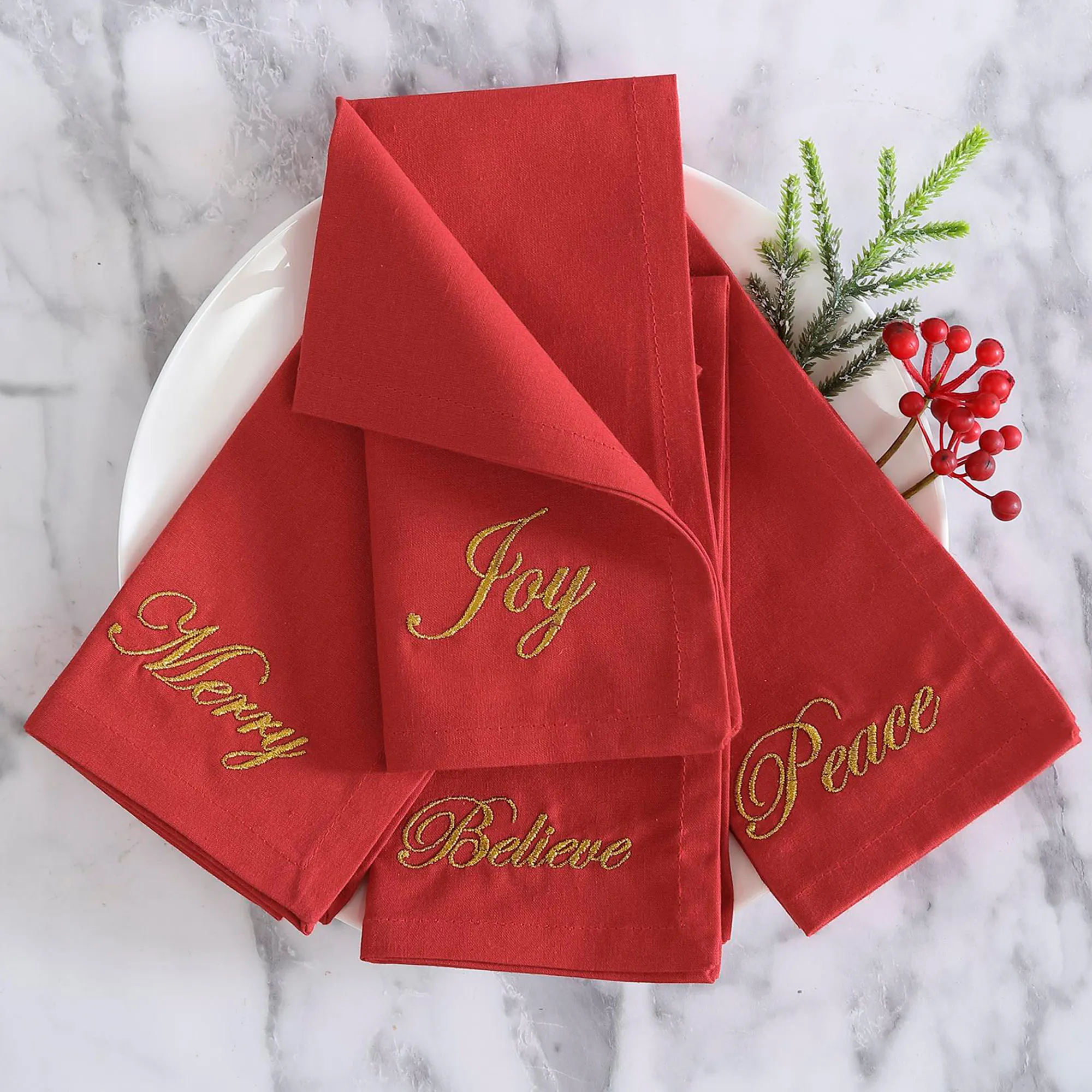 Joyful Gathering Embroidered Holiday Word Napkin Set of 4