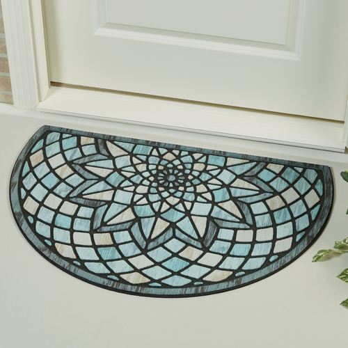Kaleidoscope Light Blue Mosaic Recycled Rubber Outdoor Entrance Slice Doormat