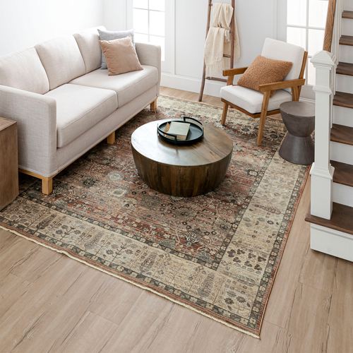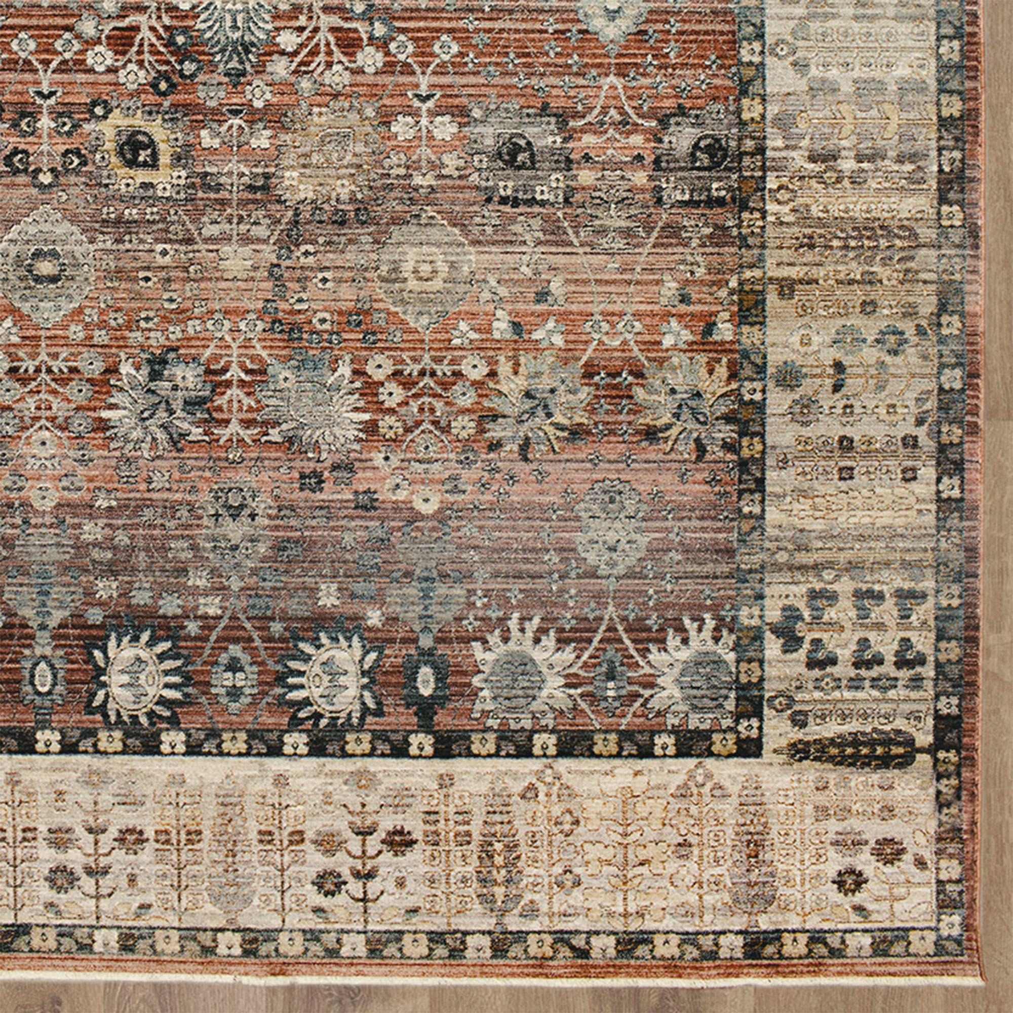 The all-over floral motifs on the Kamala Charcoal Rug decorate with ornate beauty. This power-loomed polyester area rug, .32" thick, is incredibly soft and has .5"L length-end fringe. The charcoal coloration includes colors of charcoal, cream, ivory, red, indigo, and beige. Backing is latex. We recommend professional cleaning by a rug cleaner. Imported.