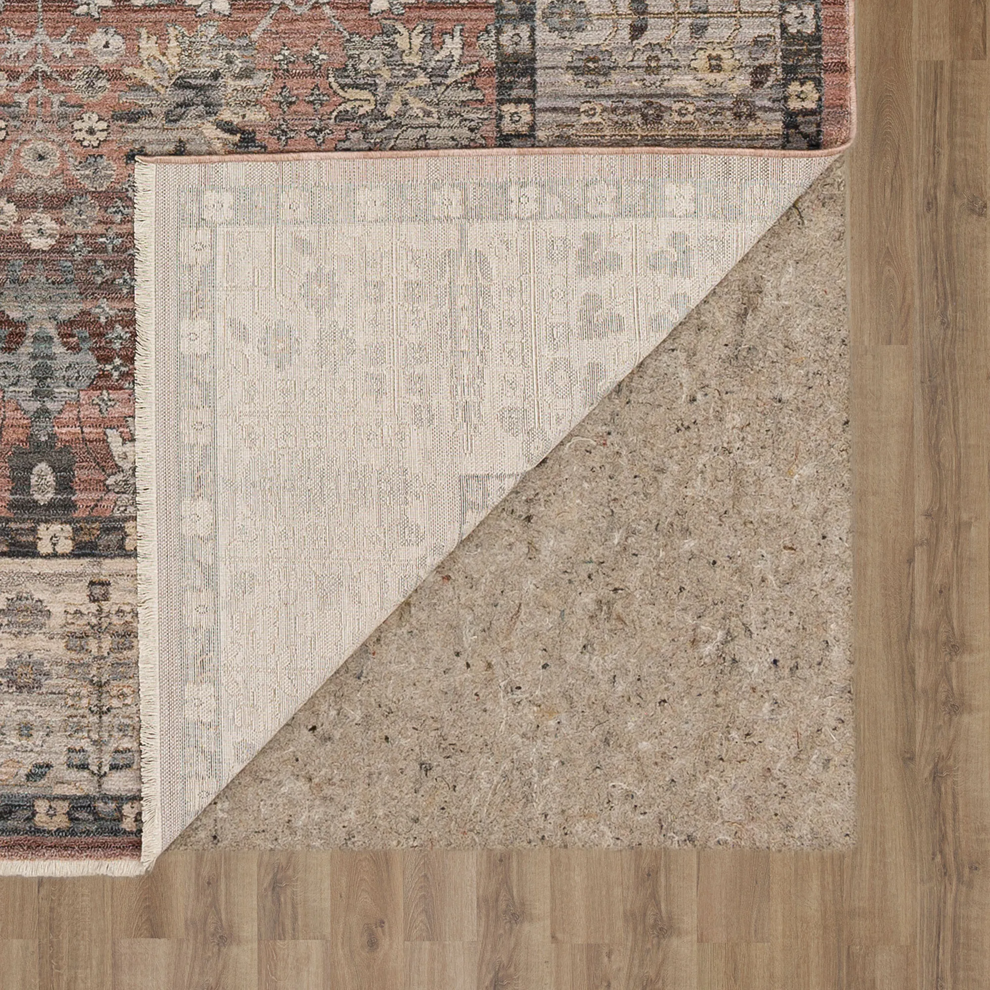 The all-over floral motifs on the Kamala Maroon Rug decorate with ornate beauty. This power-loomed polyester area rug, .32" thick, is incredibly soft and has .5"L length-end fringe. The maroon coloration includes hues of gray, cream, charcoal, maroon, and ivory. Backing is latex. We recommend professional cleaning by a rug cleaner. Imported.