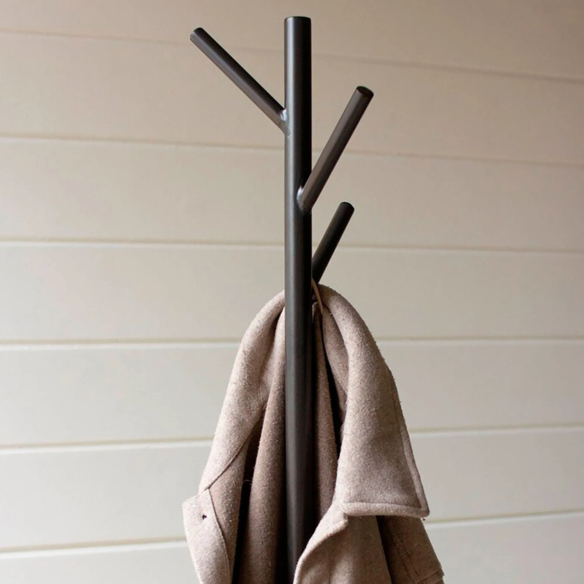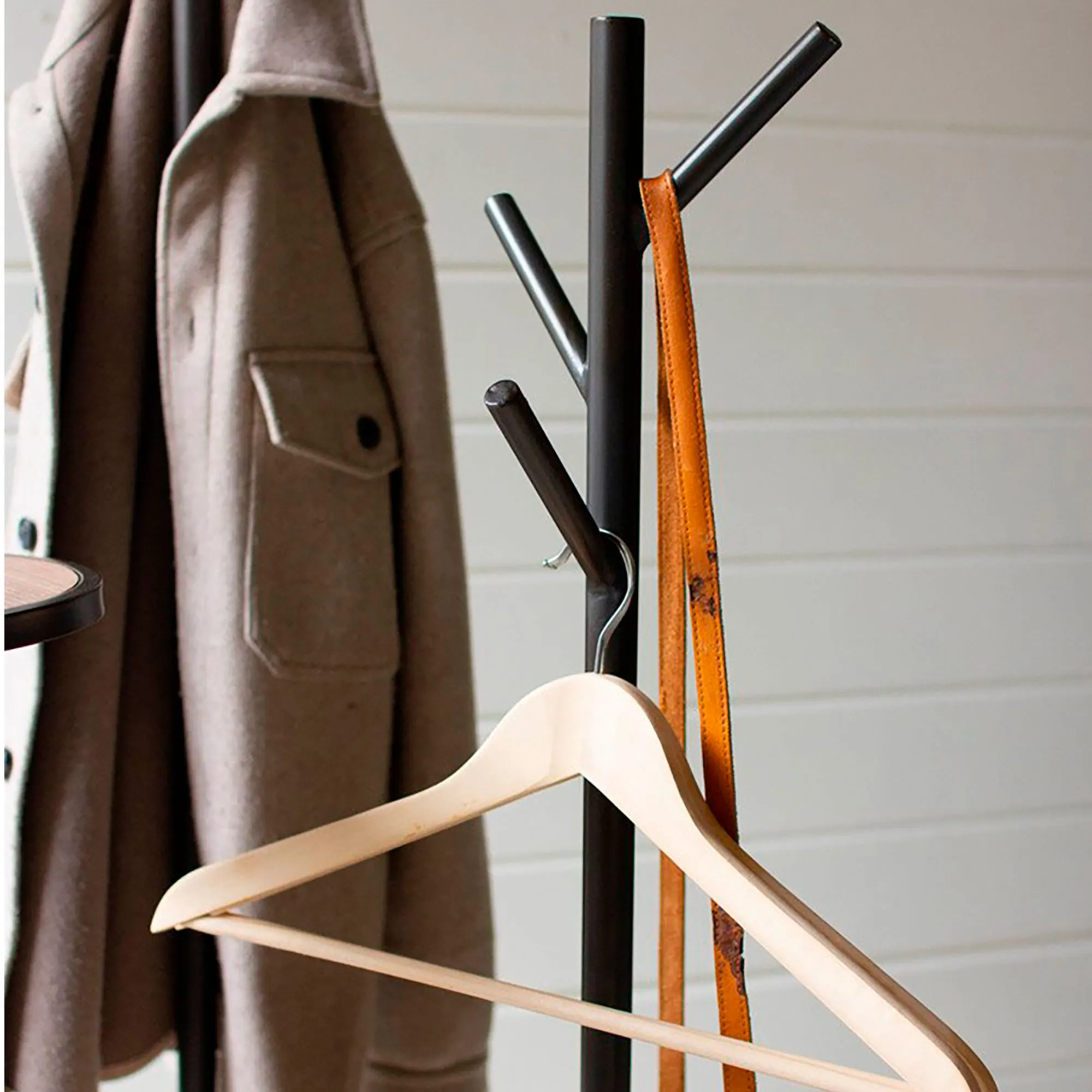 The Kamdyn Coat Rack Stand is metal and wood.