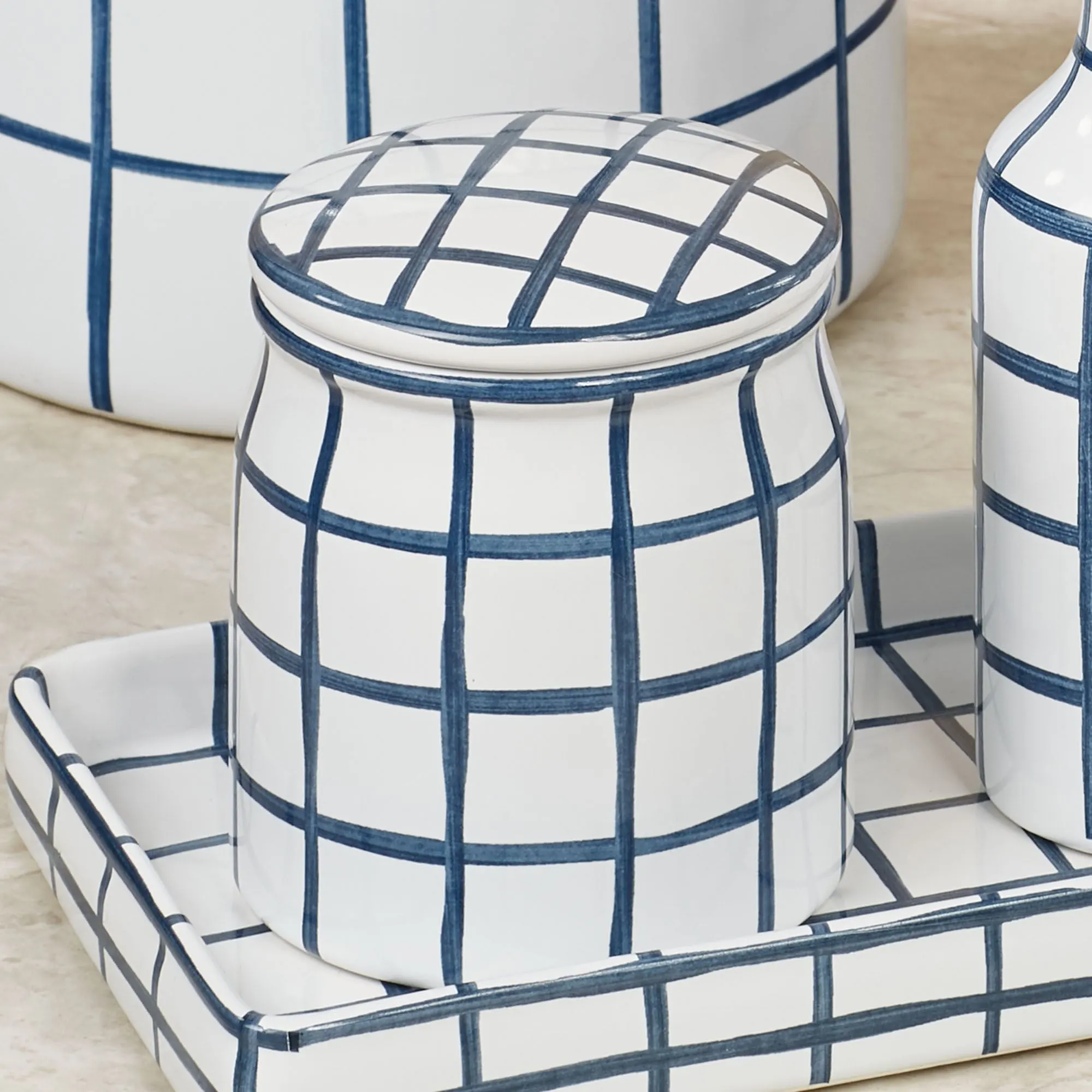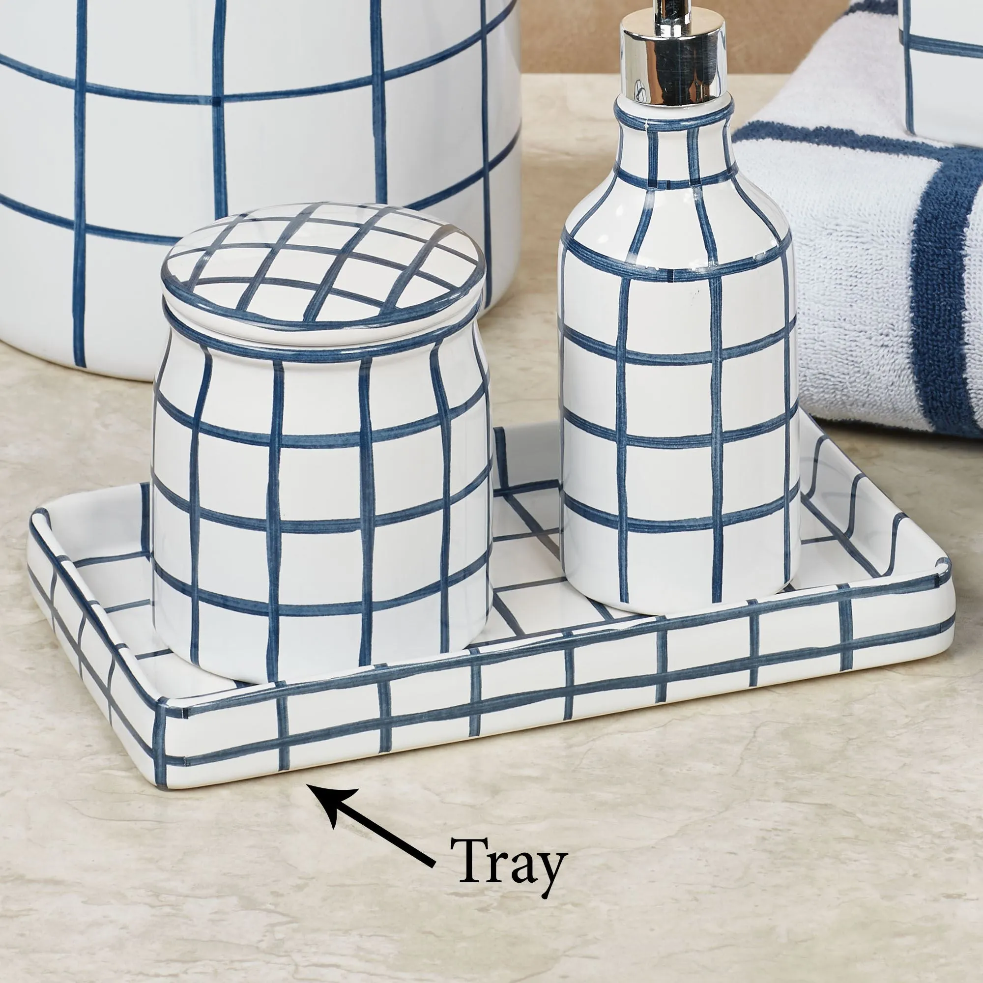 Keagan Indigo Windowpane Stoneware Bath Accessories