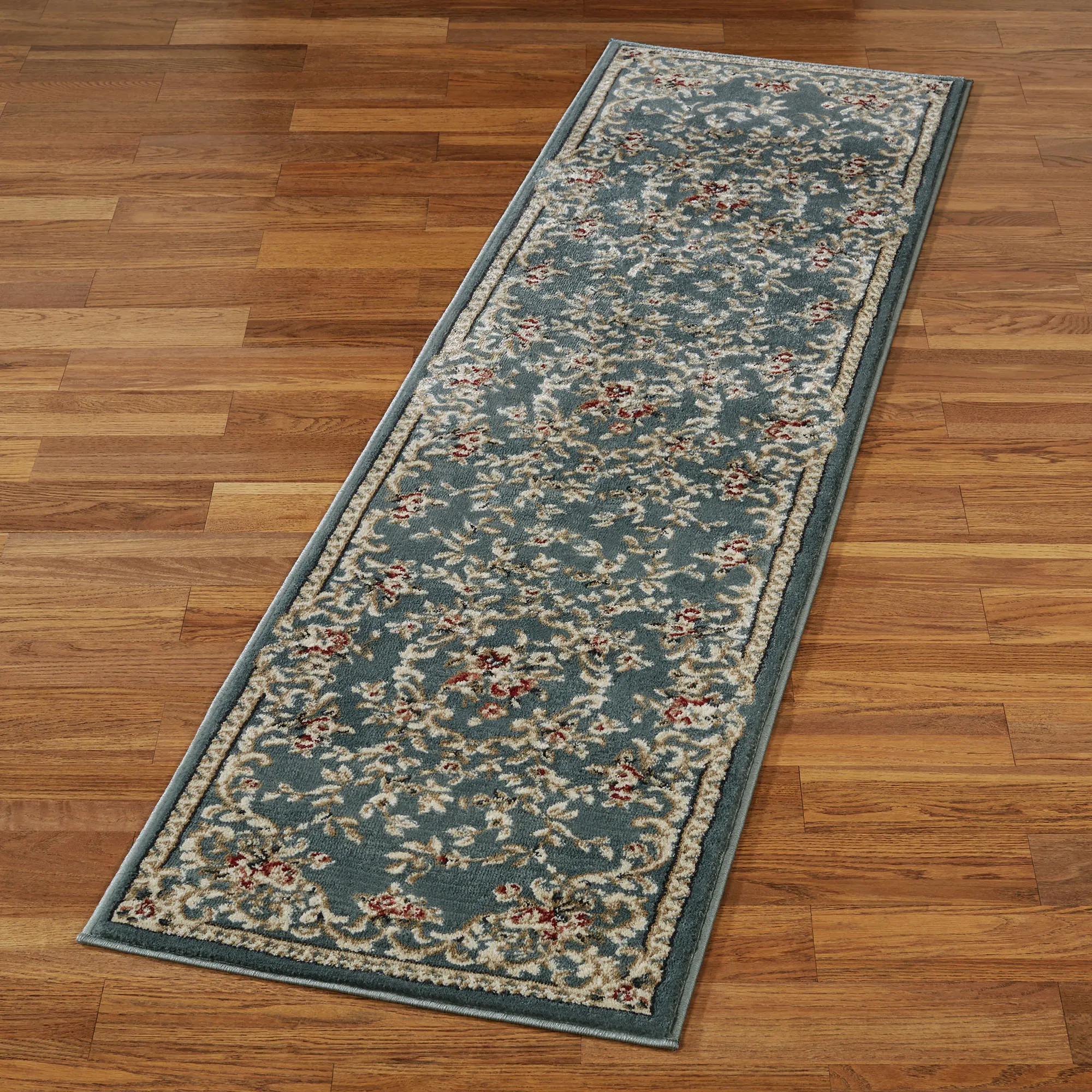 The swirling florals and leaves on the Kennesaw Rug Runner add a classic touch of elegance. Power-loomed of polypropylene, this runner, .5" thick, features an ornate traditional design. Slate Blue includes shades of pink, beige, and ivory. Ivory includes shades of blue, pink, red, beige, and ivory. Platinum Gray includes shades of cream, tan, and gray. We recommend professional cleaning by a rug cleaner. Imported.