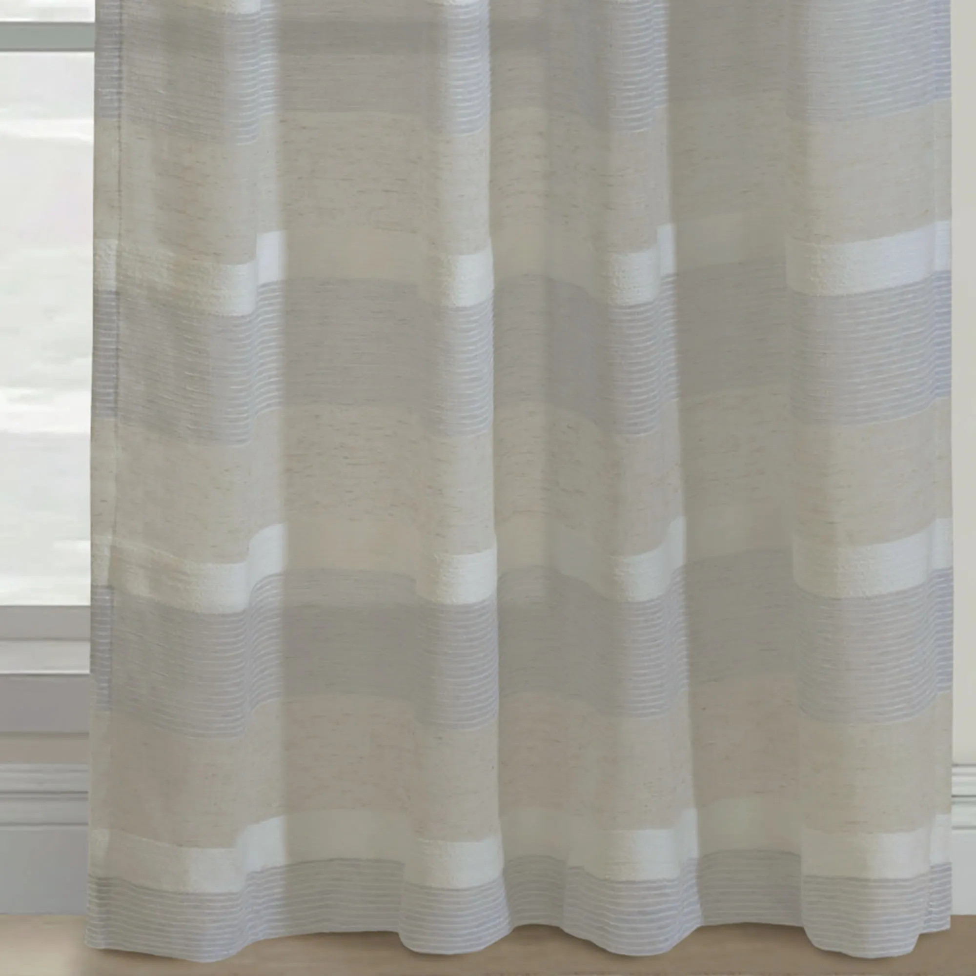 • Light-filtering striped curtain panel