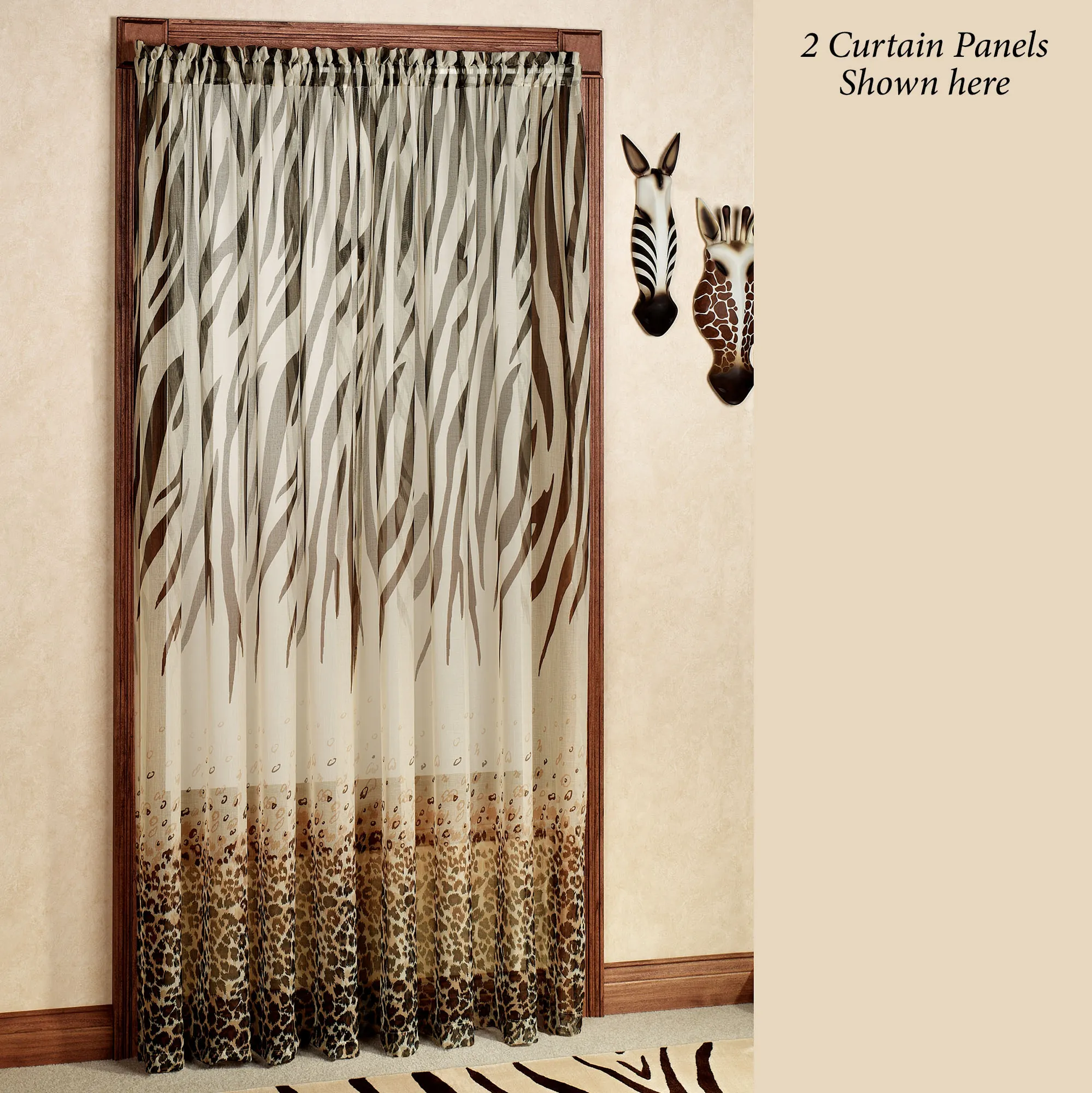 Kenya Safari Brown Animal Print Semi Sheer Curtain Panel