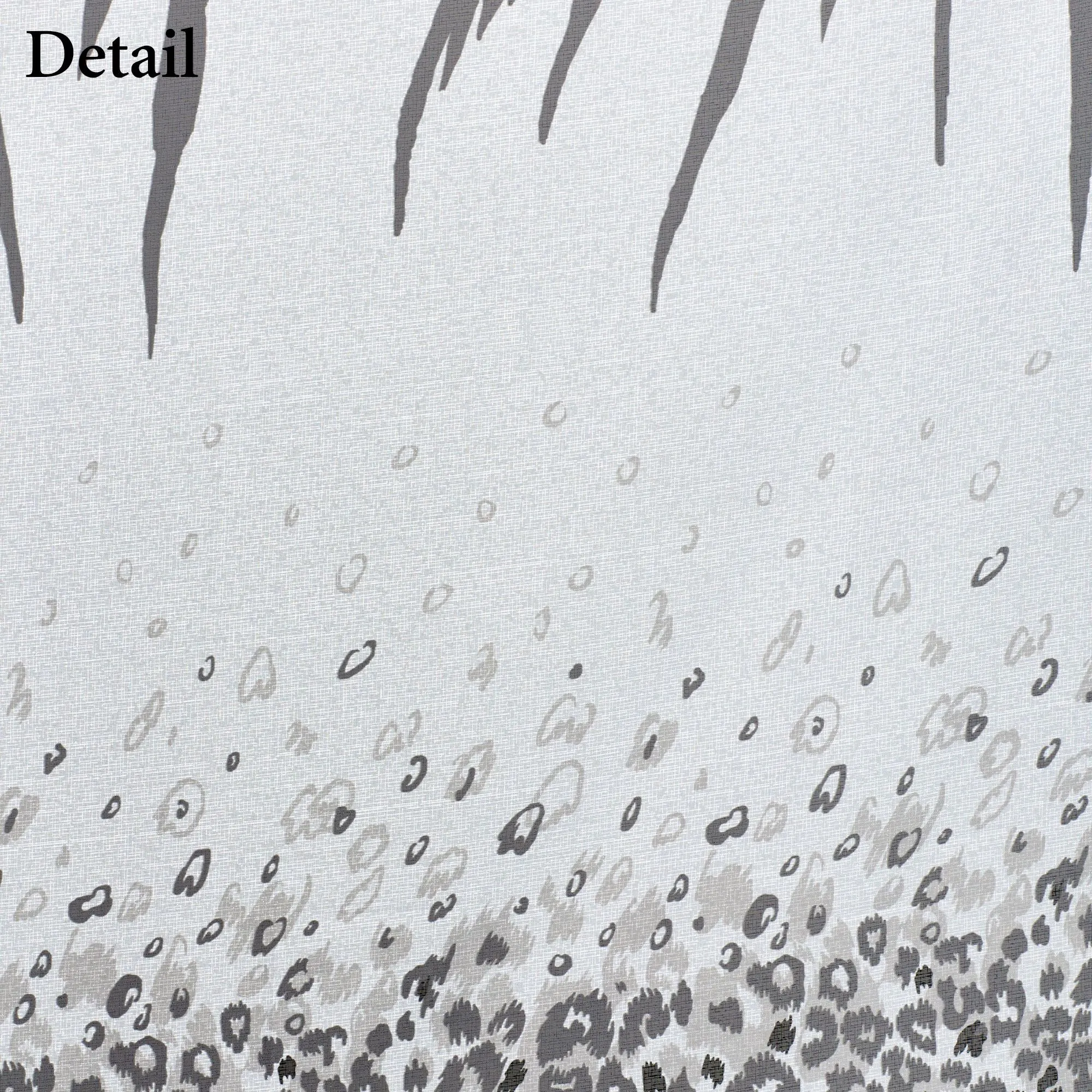 The Kenya Safari Black Animal Print Curtain Panel has an exotic and wild look that gives any room unique flair. This semi-sheer polyester curtain panel features a zebra print on top and a leopard print on the bottom. Black coloration includes shades of black and gray on a white background. Each panel has a 2" rod pocket. Panels are sold individually; each is 50"W. Machine washable. Imported.