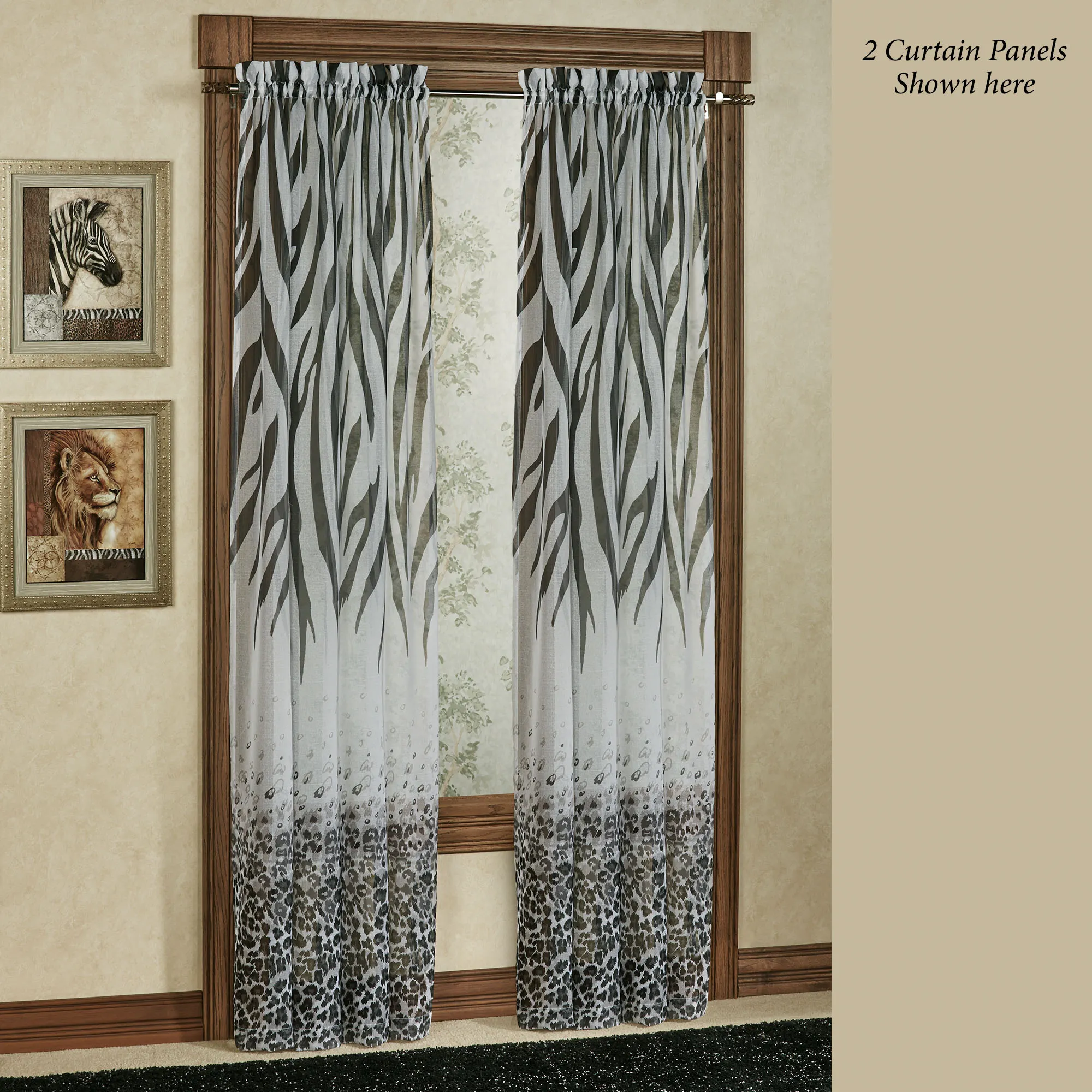 Kenya Safari Black Animal Print Semi Sheer Curtain Panel