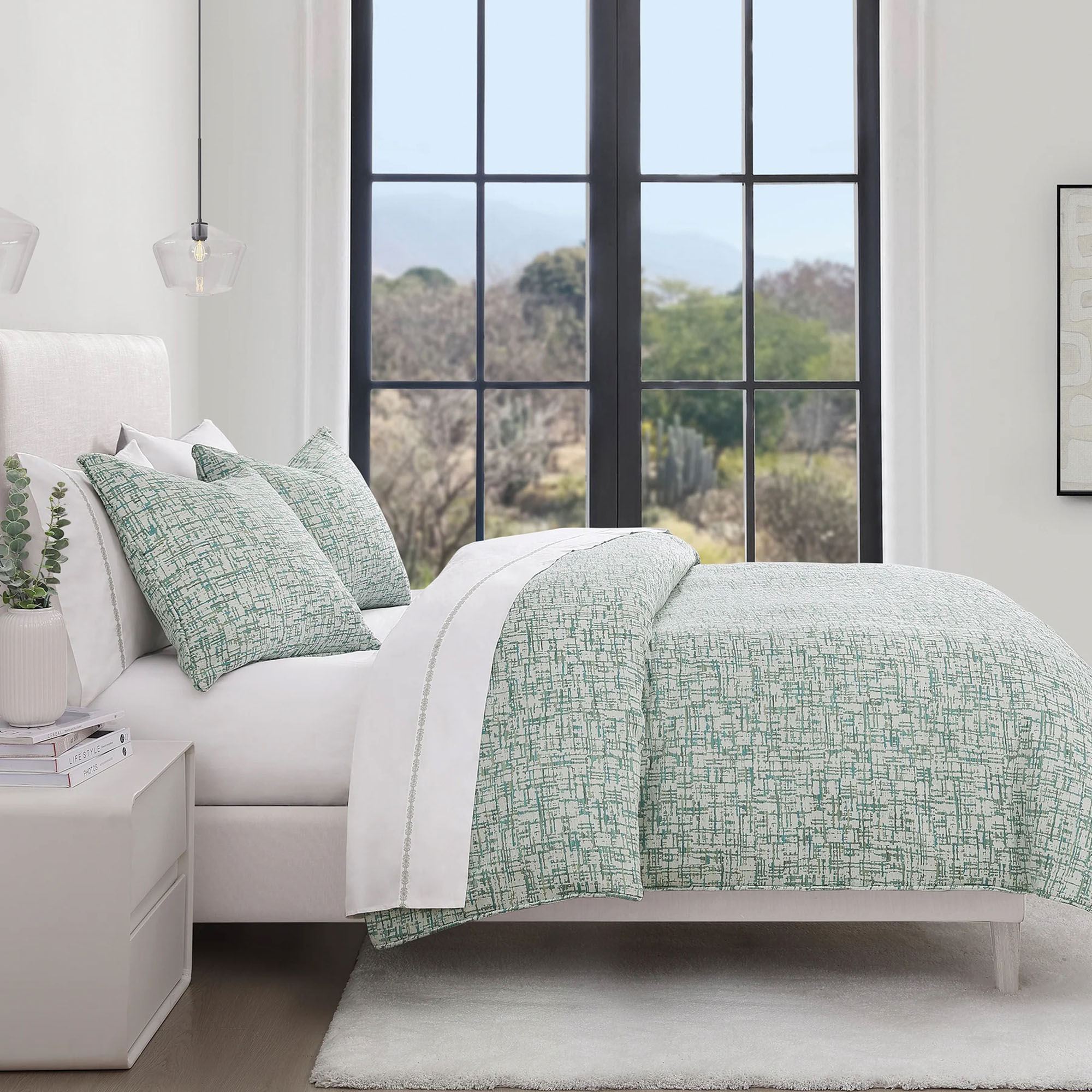 Serene hues and a modern allure style the Keziah Bedding. Perfect for year-round comfort, the jacquard-woven polyester chenille ensemble features a soothing jade, green, and crisp white crosshatch design for a richly textured, contemporary feel. Piped edges pristinely finish each element.