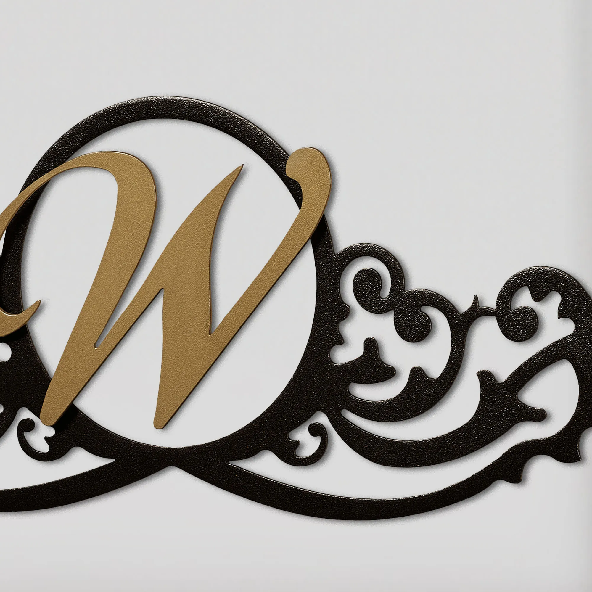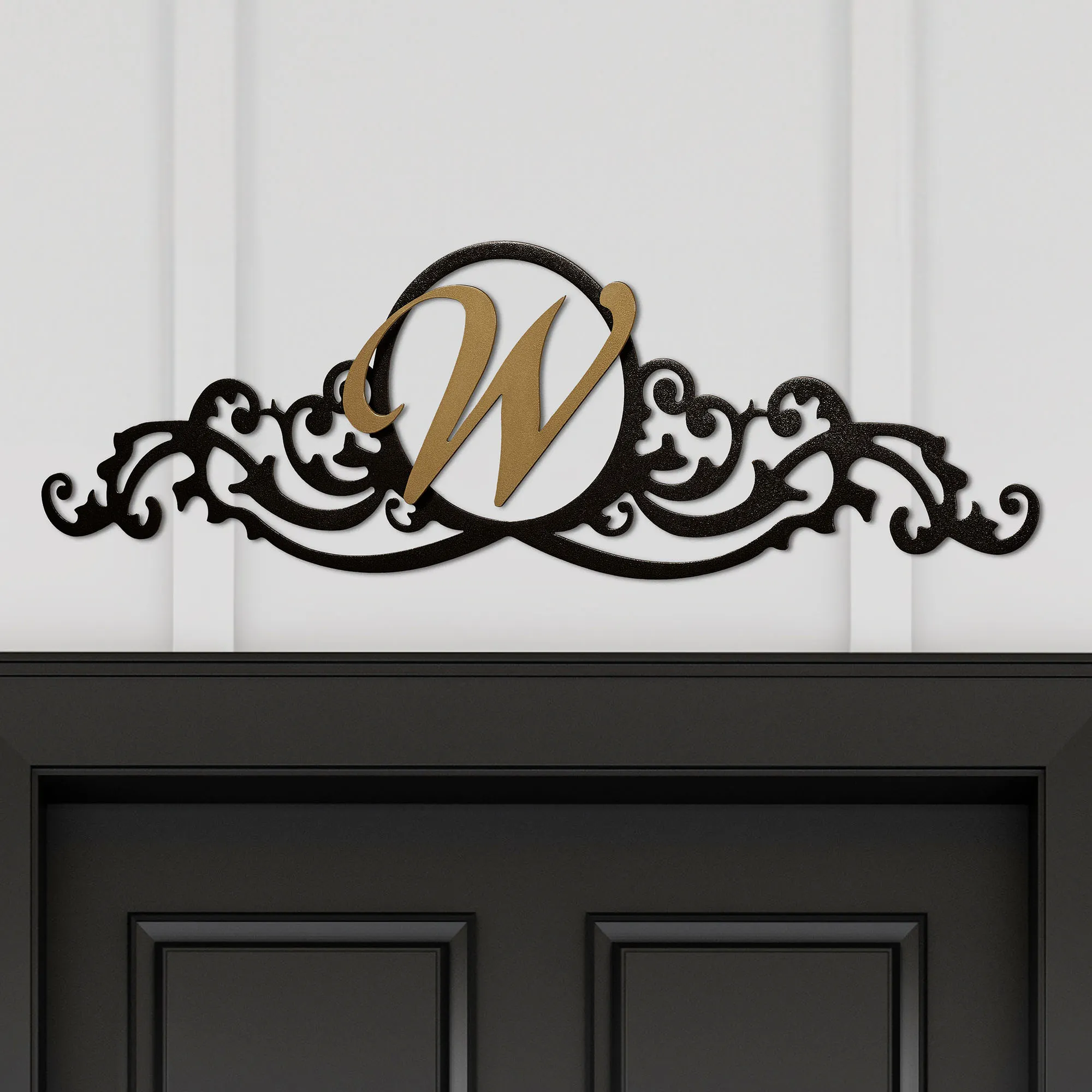 The Kindred Personalized Monogram Wall Topper flourishes with elegance. Perfect for a wedding or anniversary gift, this wall topper by JasonW Studios(R) is handcrafted of precision-cut, 14-gauge steel and features ornate scrollwork and a 7.5"H gold initial. The rich, powder-coat finish is UV-, weather-, and tarnish-resistant. May be used indoors or outdoors year round. Measures 36"Wx1"Dx11"H. (C)2020 Touch of Class(R).