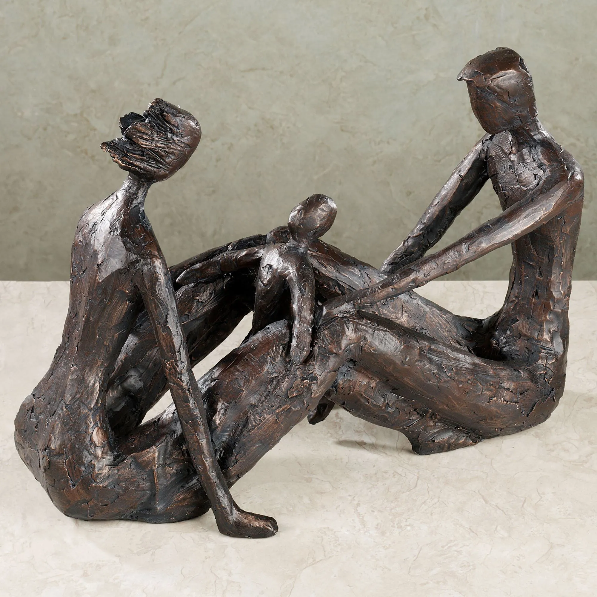 Close bonds of blood and spirit unite this family of Kindred Souls. Crafted from resin, this contemporary sculpture depicts an abstract man, woman, and child. The couple sit facing one another as the child plays between their intertwined legs. Figures have a handcarved appearance. Abstract family table sculpture is 17"Wx8"Dx12"H.