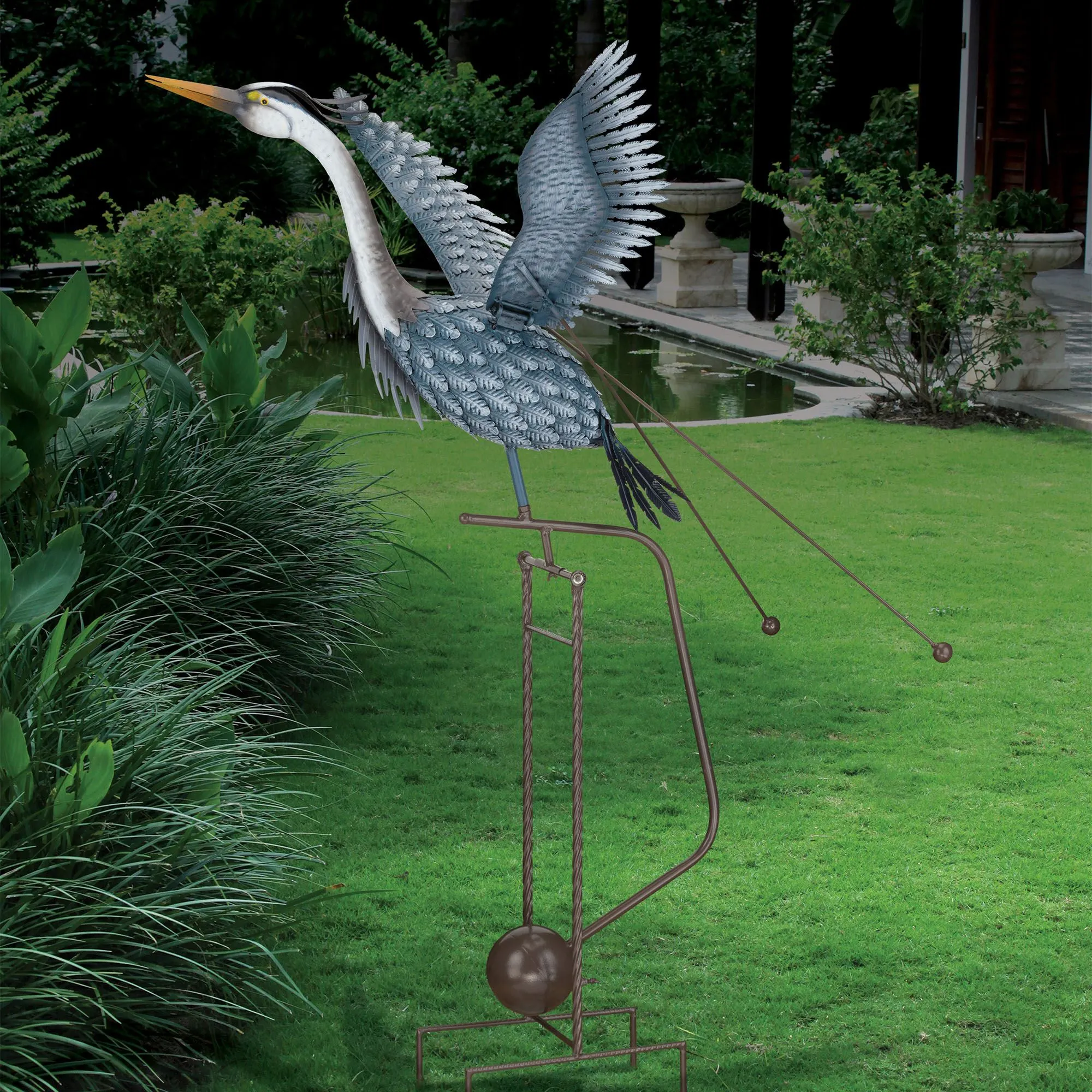 Kinetic Rocking Heron Outdoor Garden Sculpture