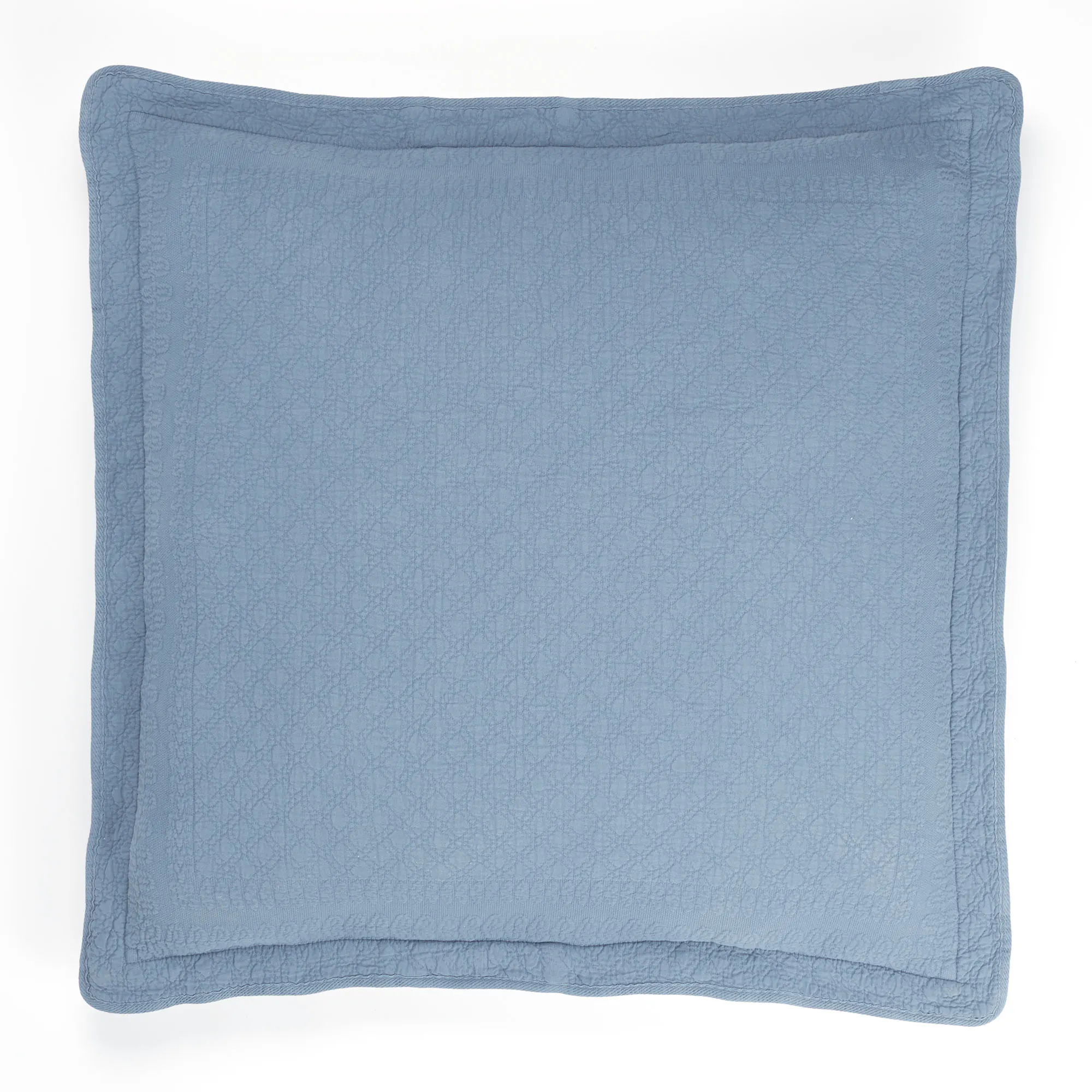 Give your bedroom a royal touch with the King Charles Matelasse Sham. The 100% cotton, flanged matelasse sham is a woven textile with a puffed, quilted appearance; sham is stone-washed for softness. Standard Sham has an intricate sun medallion design. European Sham has a diamond-patterned center. Choose solid color: Powder Blue or Ruby; some color/size combinations are no longer available. Machine washable.