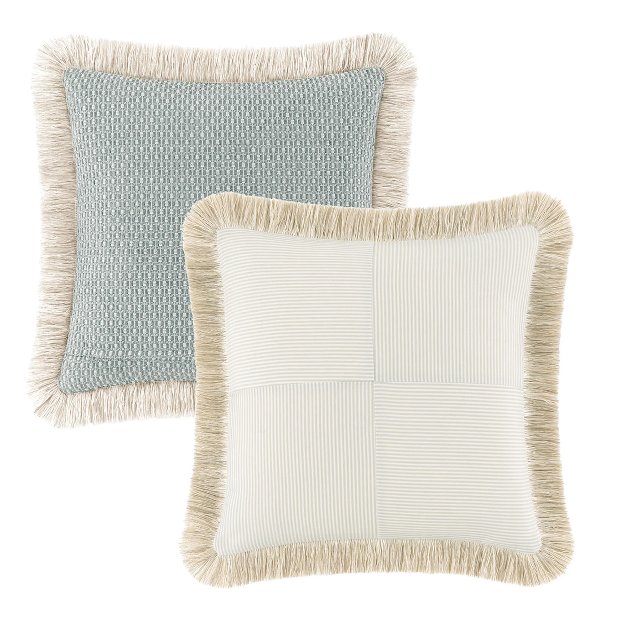 Pillows: Fringed Square, 16". Embroidered Square, 20". Rectangle, 11"x22".