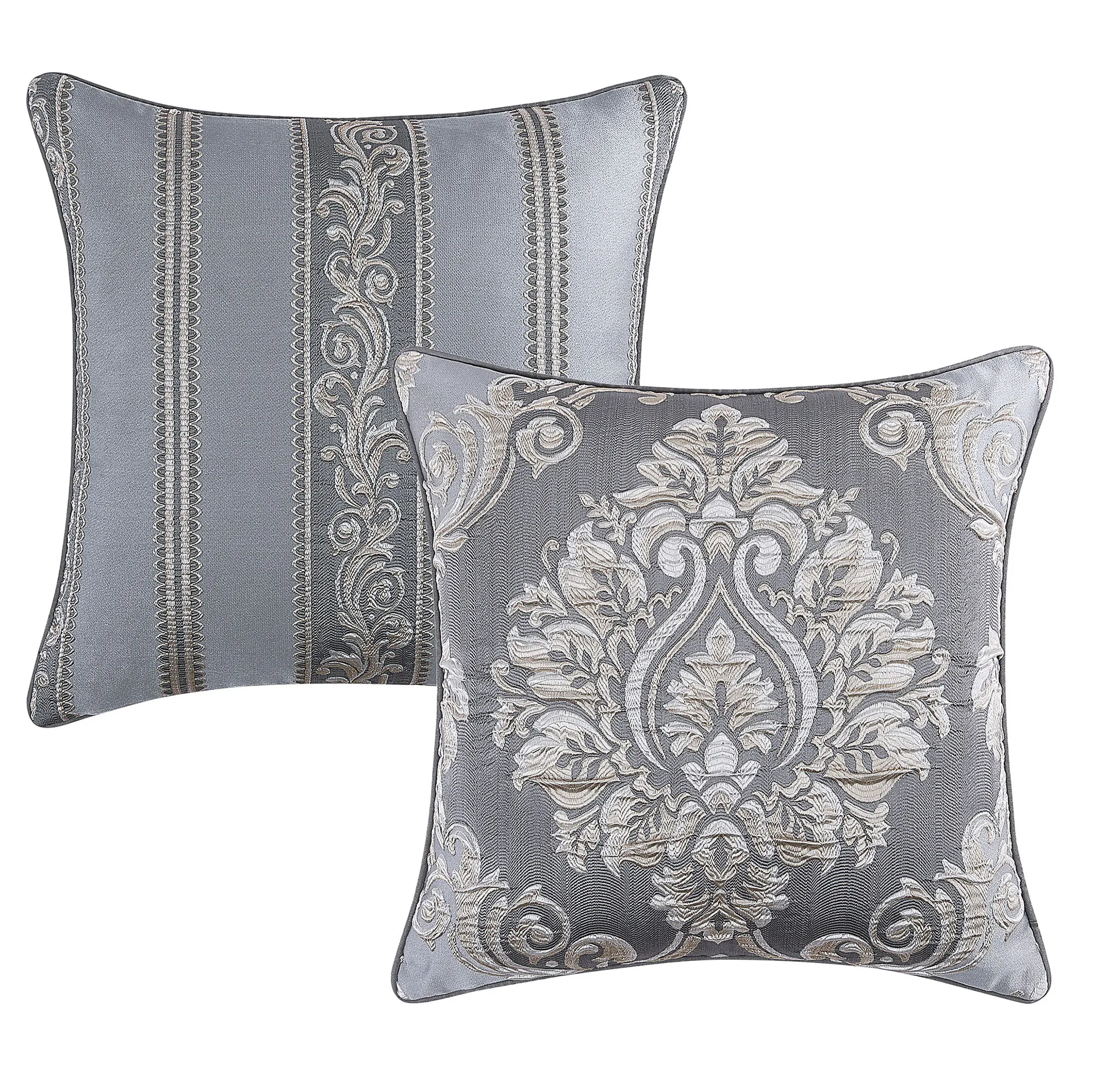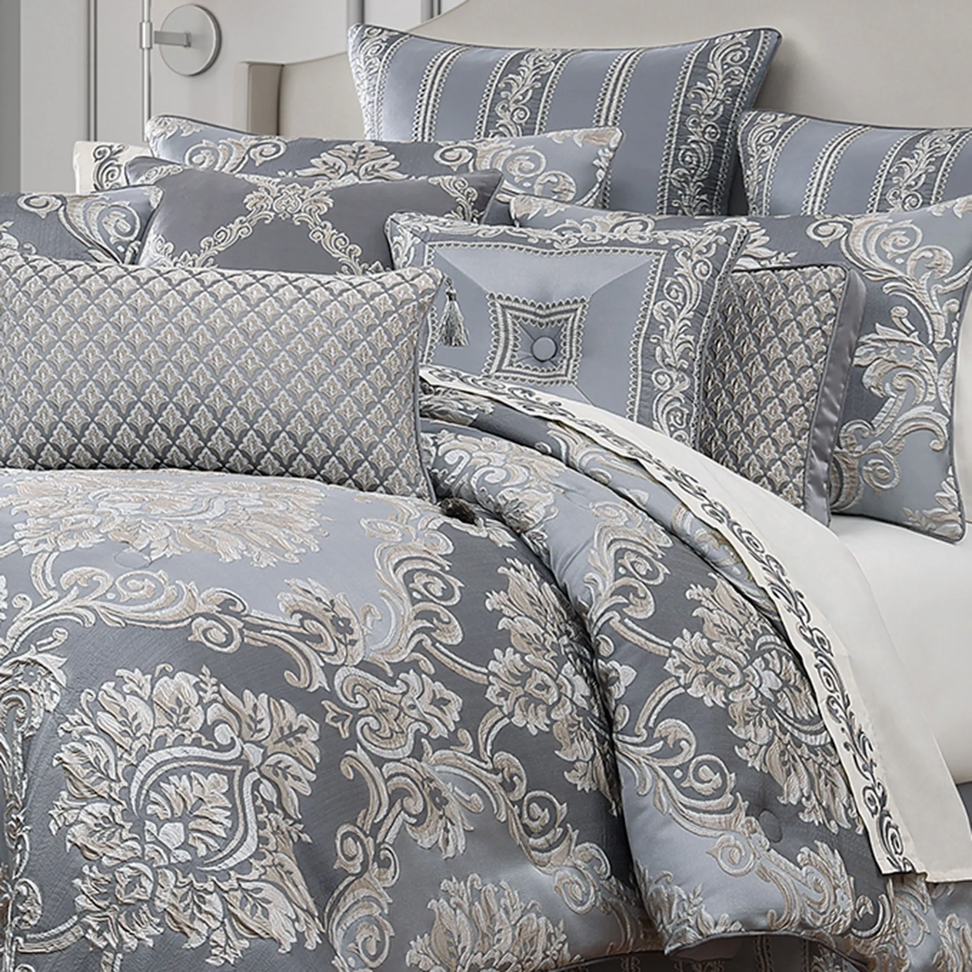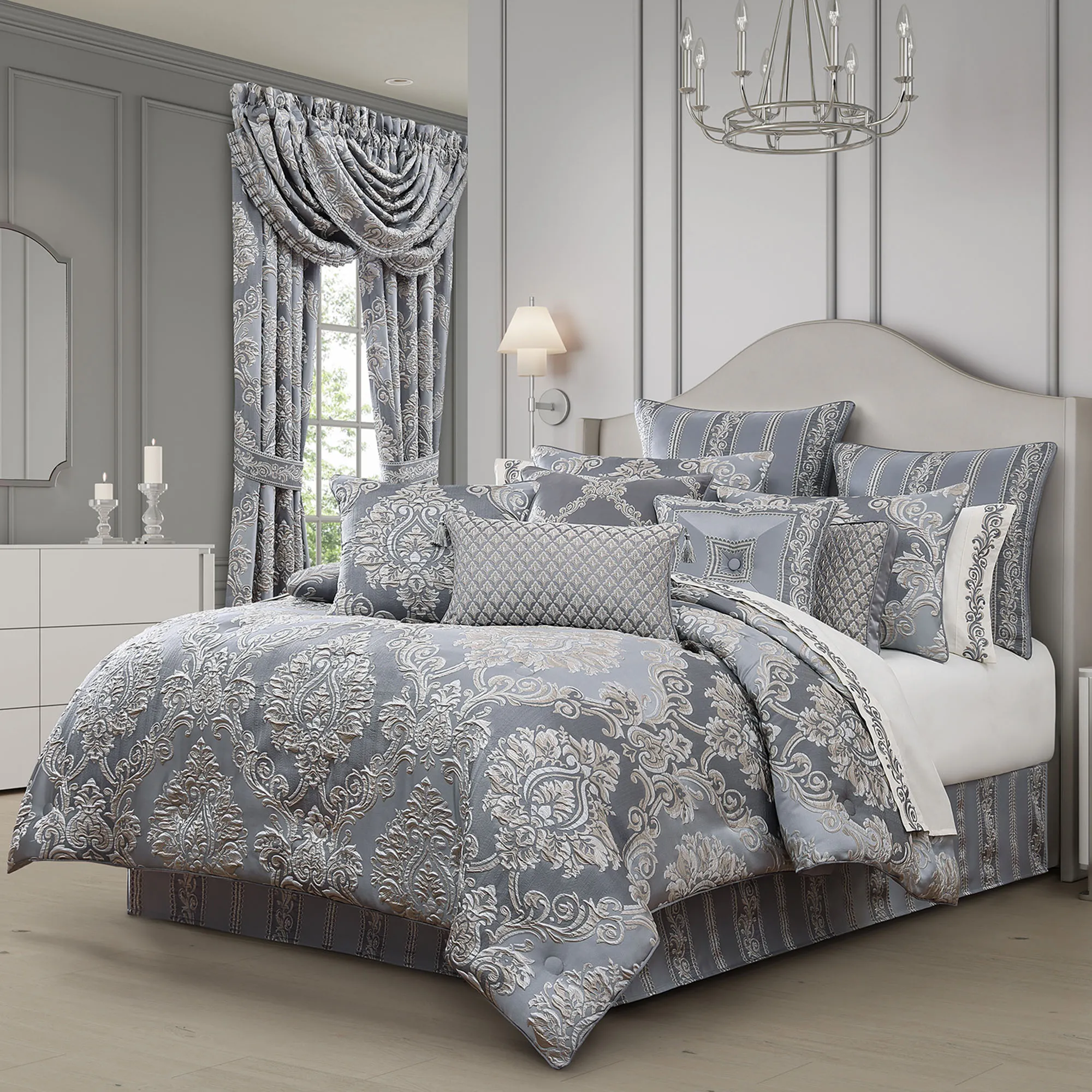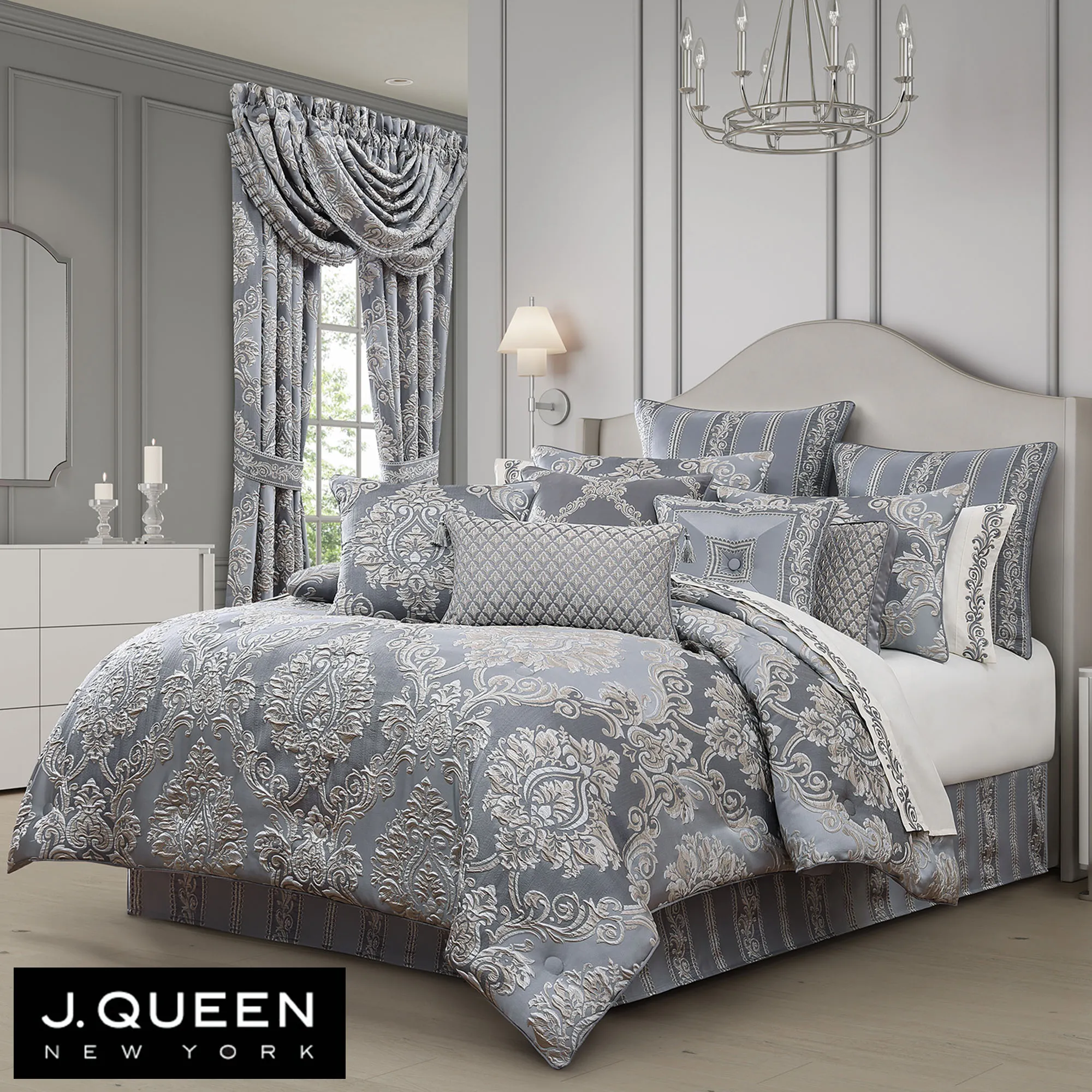 Krista Powder Blue and Steel Blue Damask Comforter Set Luxury Bedding by J Queen New York
