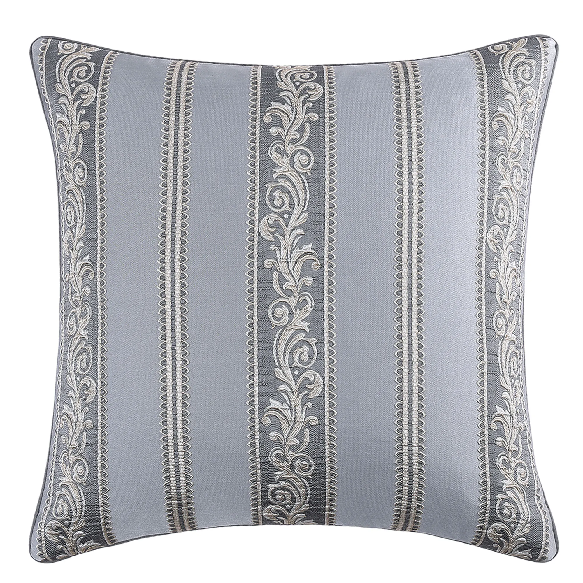 The piped European Sham has woven-jacquard stripes with fleur designs and a zipper closure.