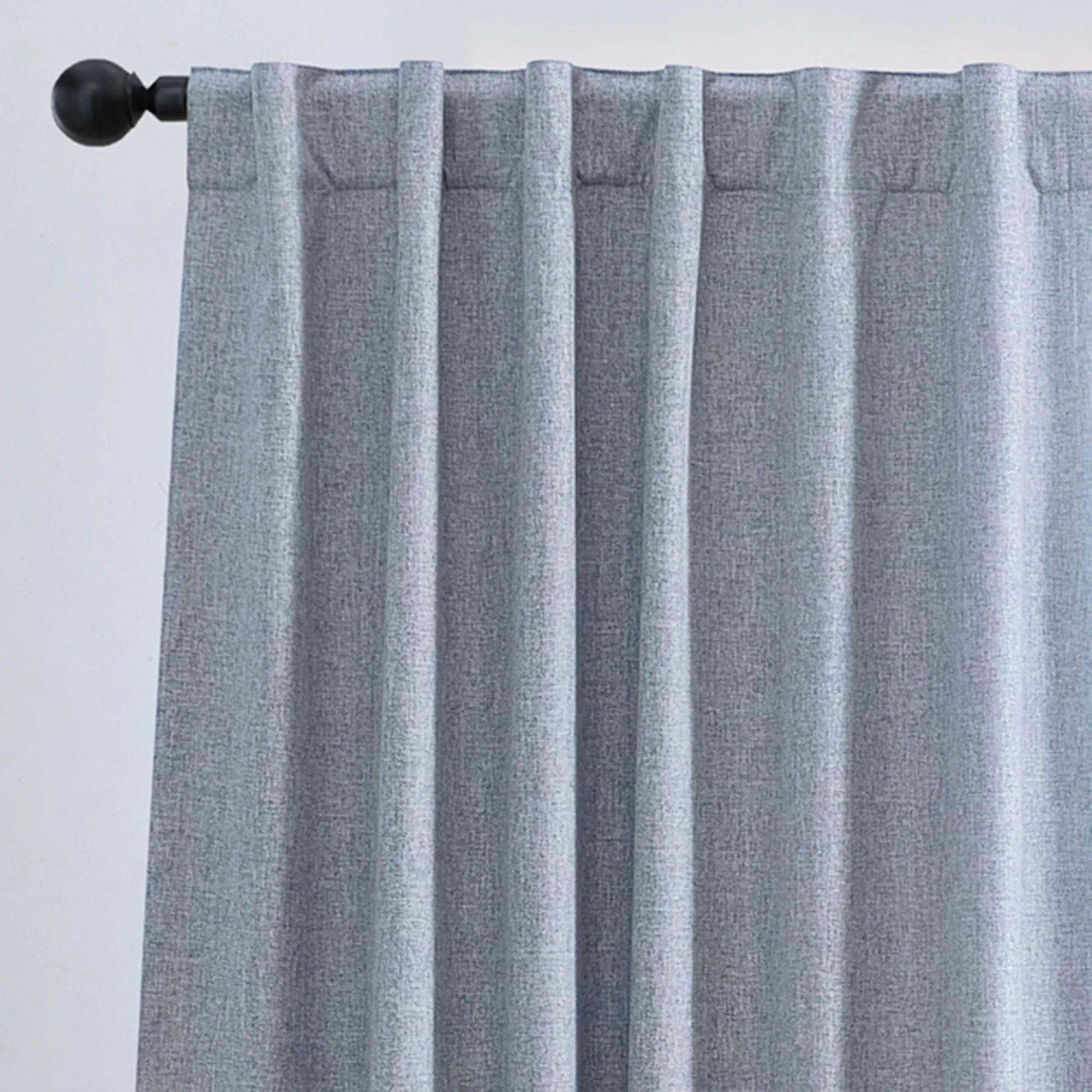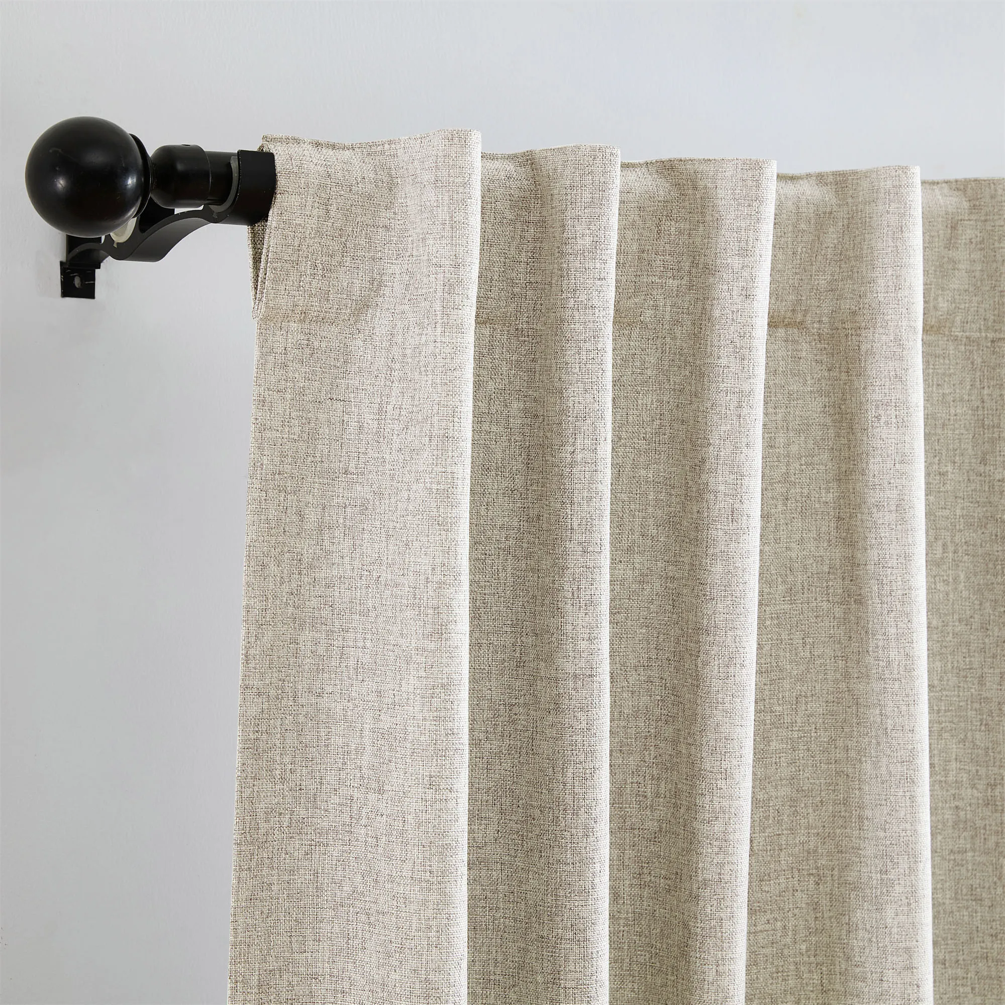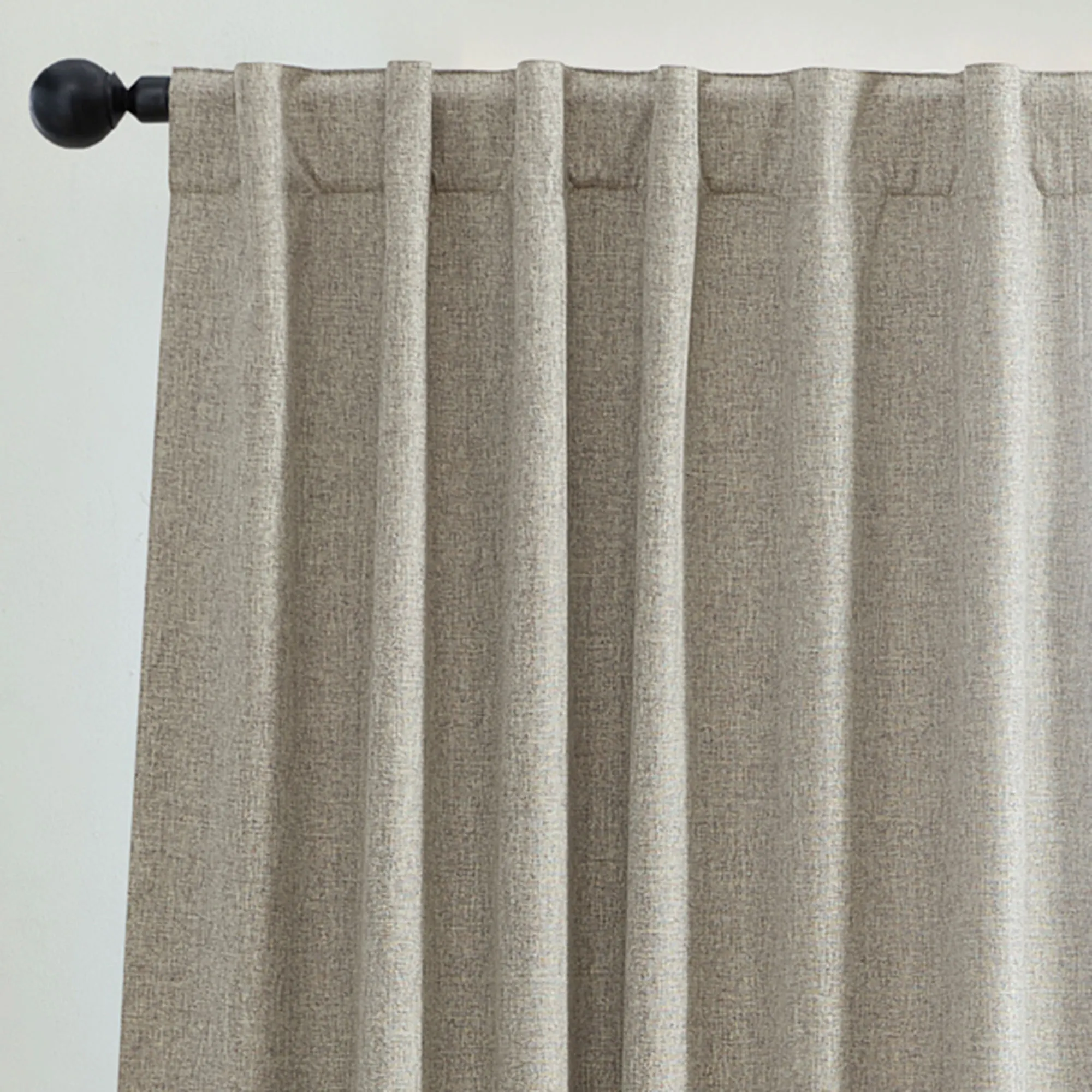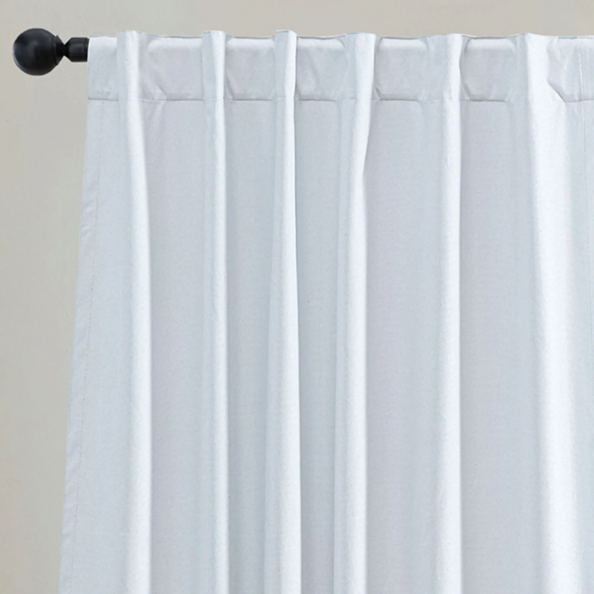 The soft and luxurious Ladora Blackout Window Panel decorates with a smooth, linen-textured look. This polyester panel uses blackout technology with an off-white, three-pass blackout lining affixed to the back that is able to effectively block out 99% of sunlight and harmful UV rays for complete privacy and a serene darkened room any time of day. Panel will block out unwanted light, filter sound, and offer energy-saving insulation. Hang using the 4" rod pocket or the 4"L back tabs. For maximum movement, we recommend using a 2" rod. Sold individually, each panel measures 52"W. Machine washable. Imported.