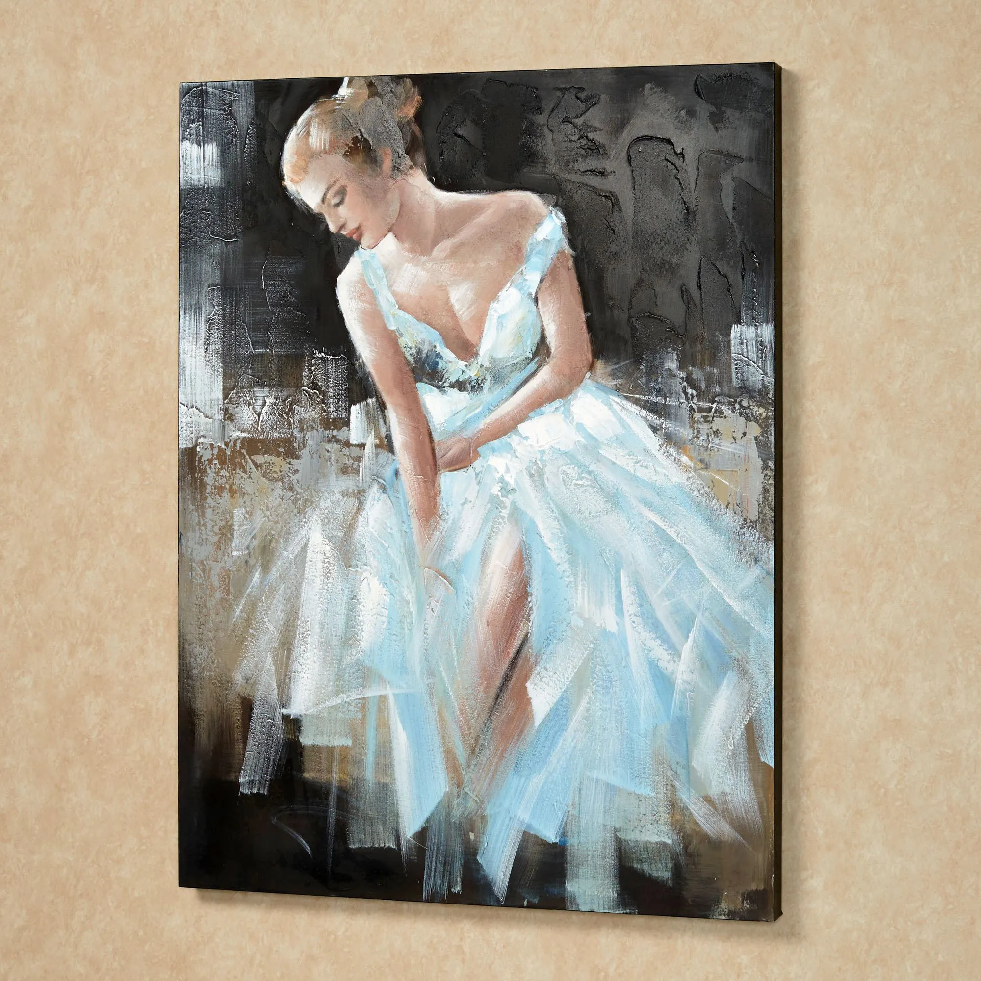 Adorn your wall with a vision of delicately tranquil beauty from the Lady Isabella Canvas Wall Art. Textured, handpainted oil on canvas features a woman with her hair up, wearing a flowing sky blue and white dress. Background has shades of black, brown, and tan. Canvas is gallery-wrapped over a wood frame. Due to the handpainted nature of this item, minor variations may occur. Wall art measures 29"Wx2"Dx39"H.