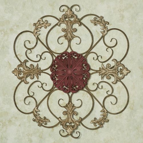The Lambridge Wall Grille defines classic elegance. Handcrafted of powder-coated metal, this handpainted wall grille has scrolls and pressed fleur designs in gold and black. A wood ruby medallion accents the center. Measures 30.5"Wx1"Dx26.5"H.