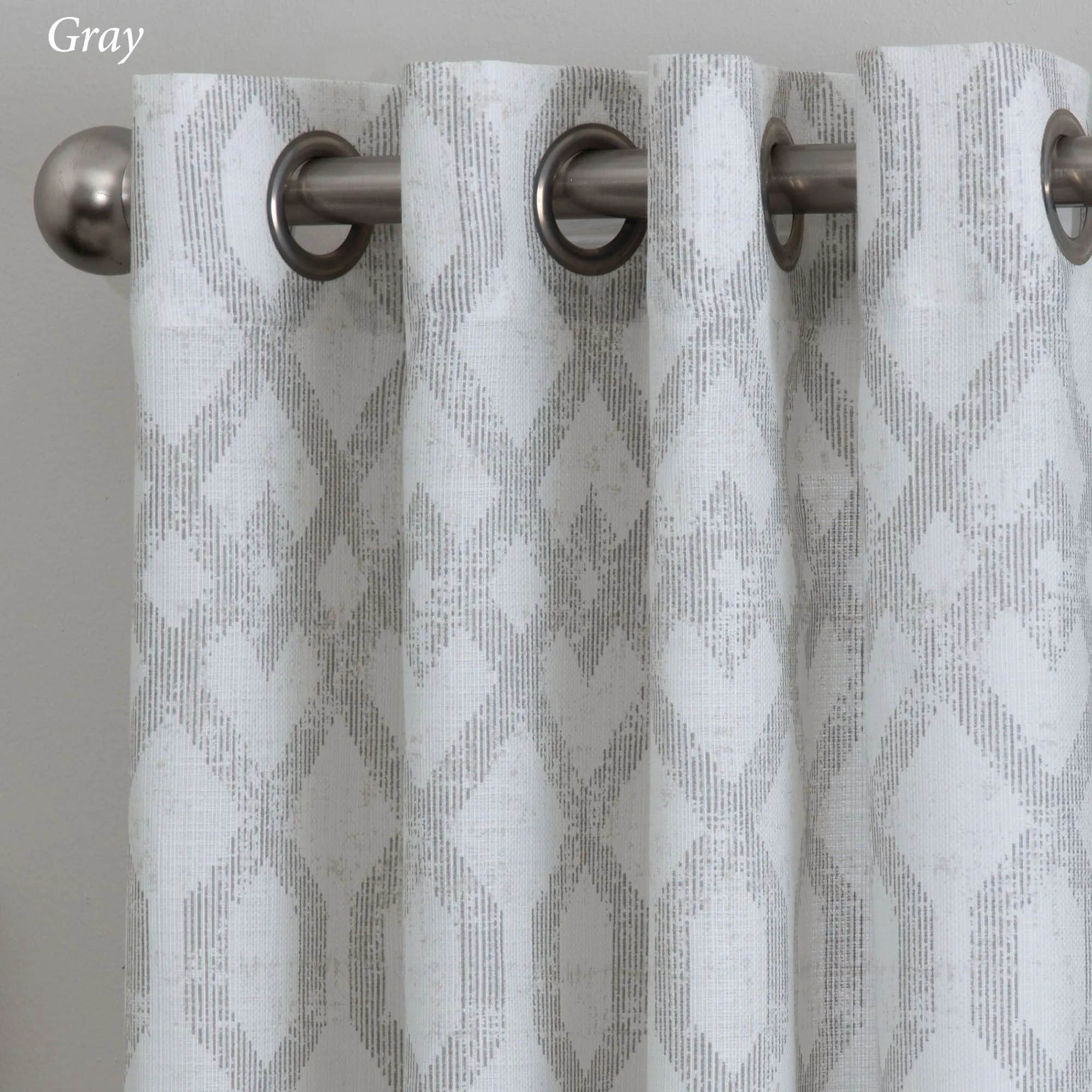 Flaunt a geometric design with the Lanford Grommet Curtain Panel. This polyester/cotton window panel has motifs on ecru, filters light, and is fade-resistant. The 1.5" dia. metal grommets have a silver finish. Sold individually, each panel is 50"W. Machine washable. Imported.
