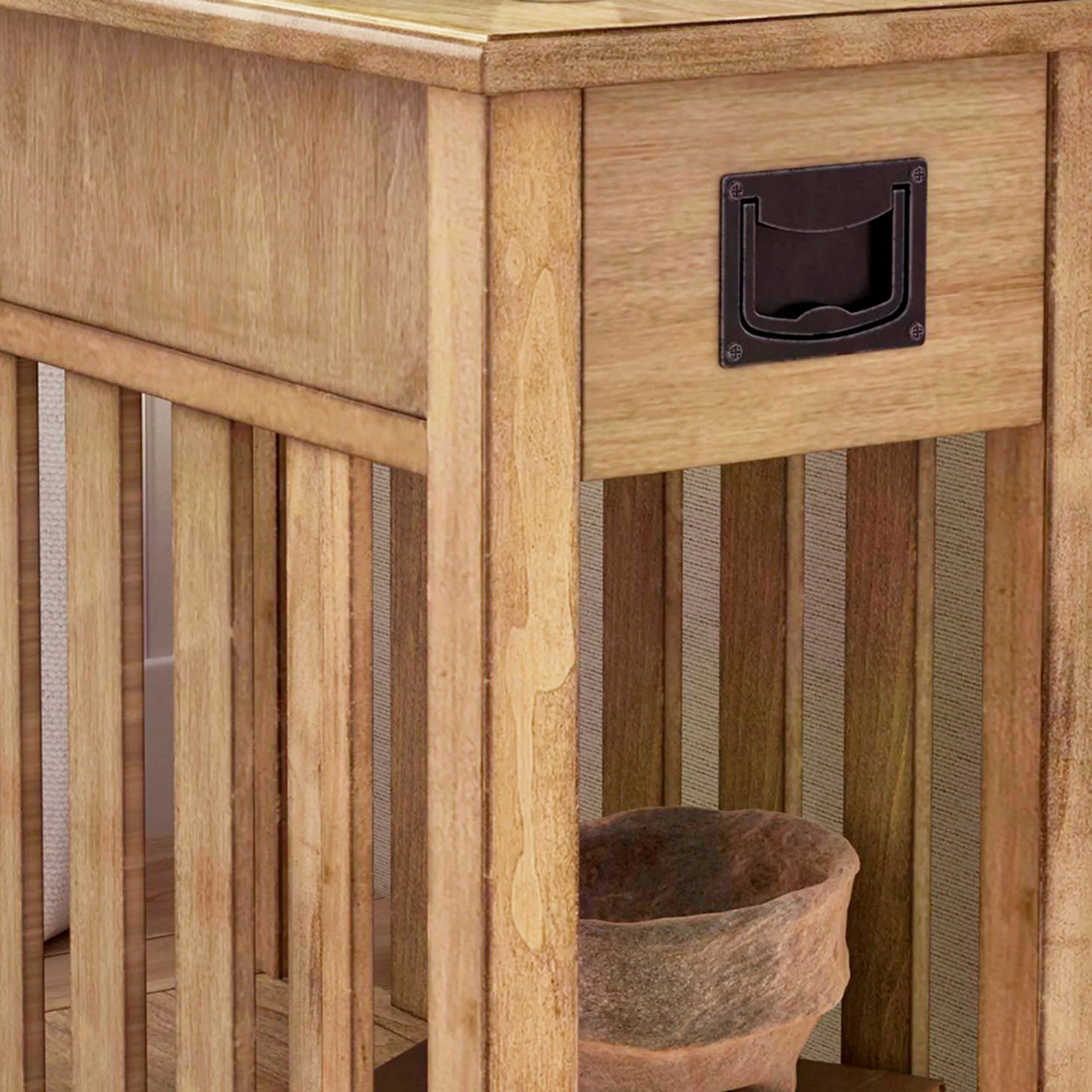 • Slatted sides and clean lines add to the Mission style