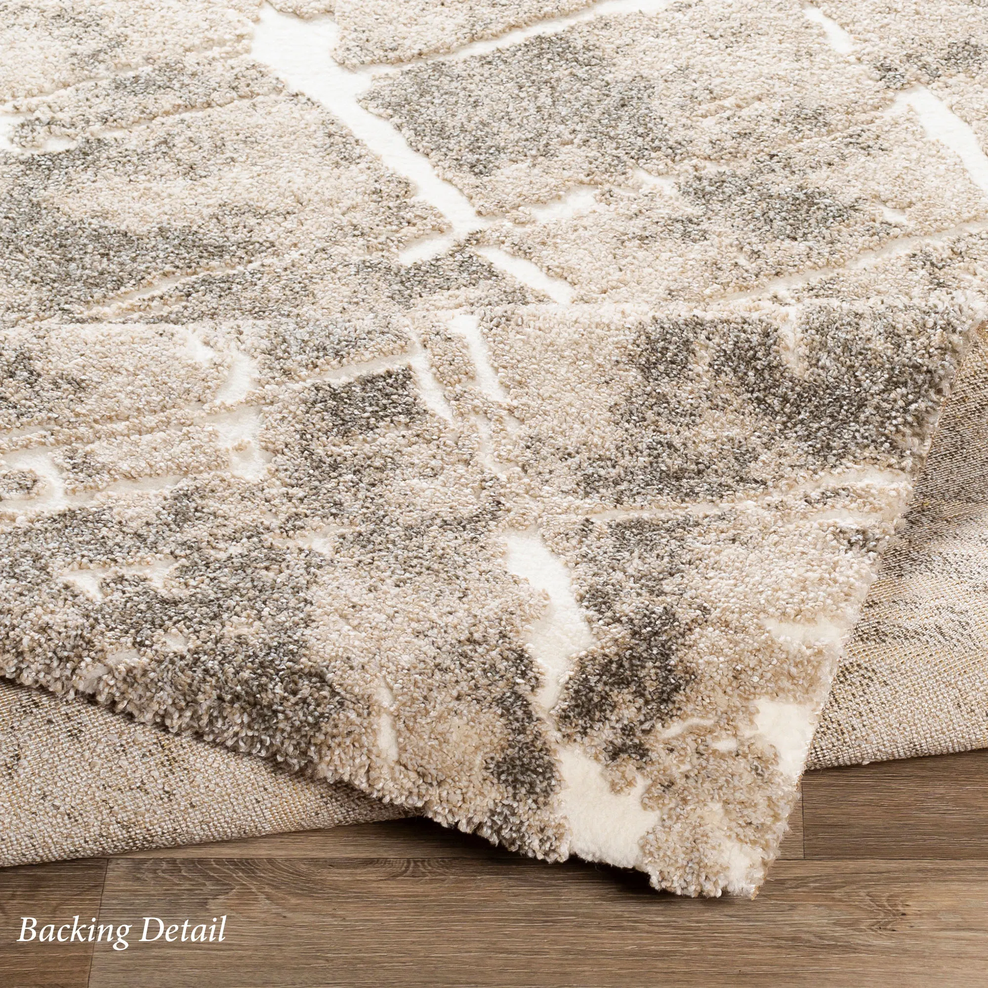 A crisscross scratch pattern gives the Lathan Tuscany Rug a mottled look. Power-loomed polypropylene/polyester area rug, .87" thick, includes hues of beige, light beige, off-white, and dark brown. We recommend professional cleaning by a rug cleaner. Imported.