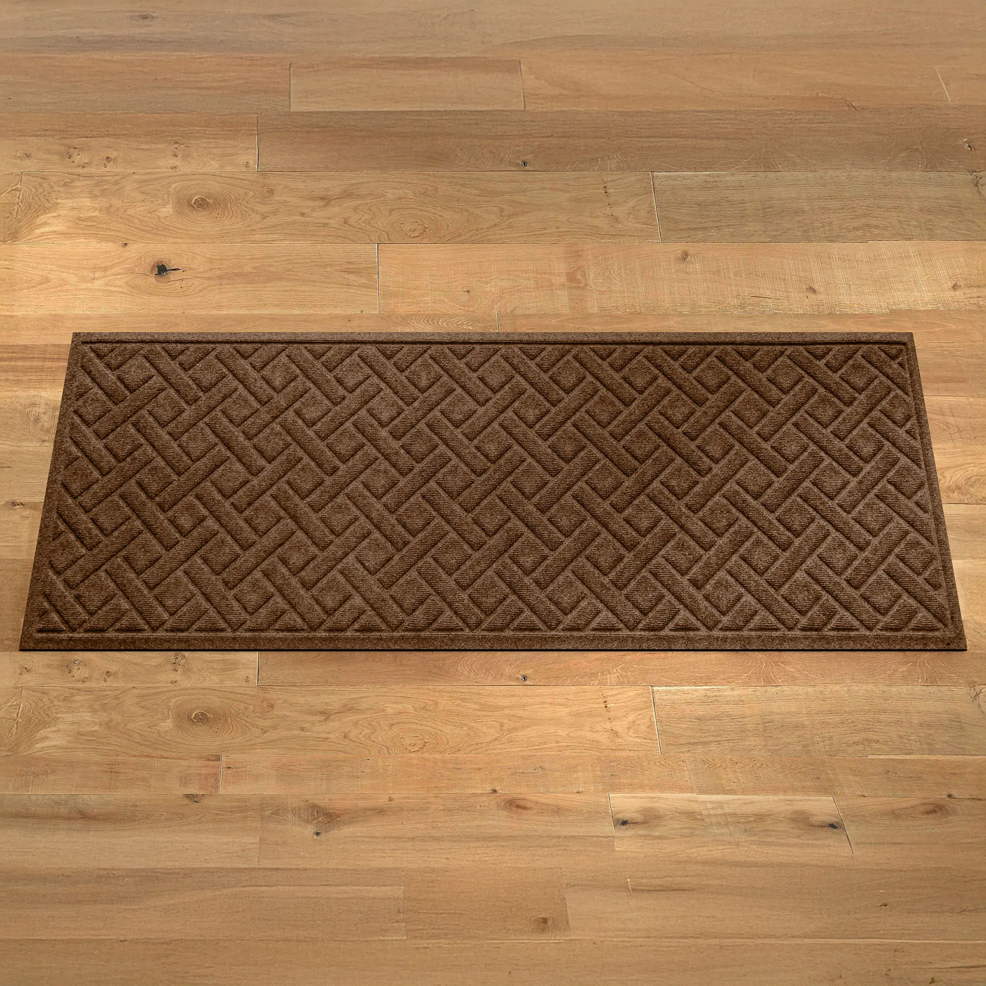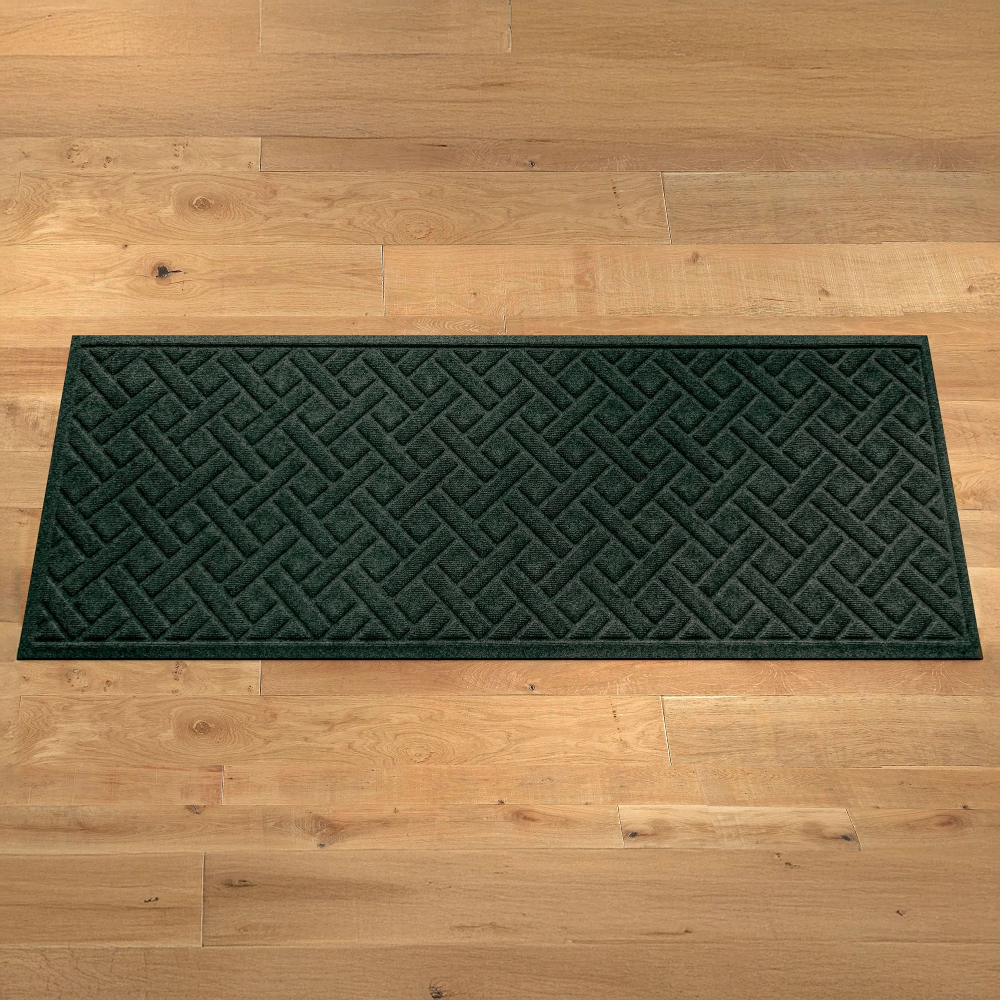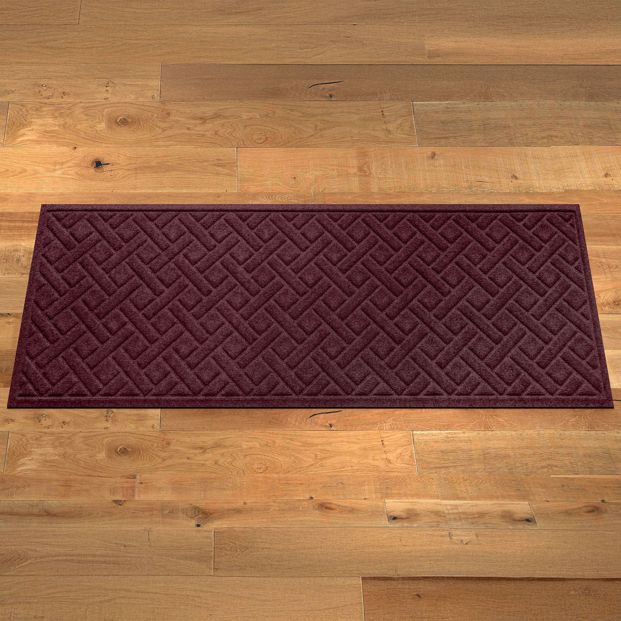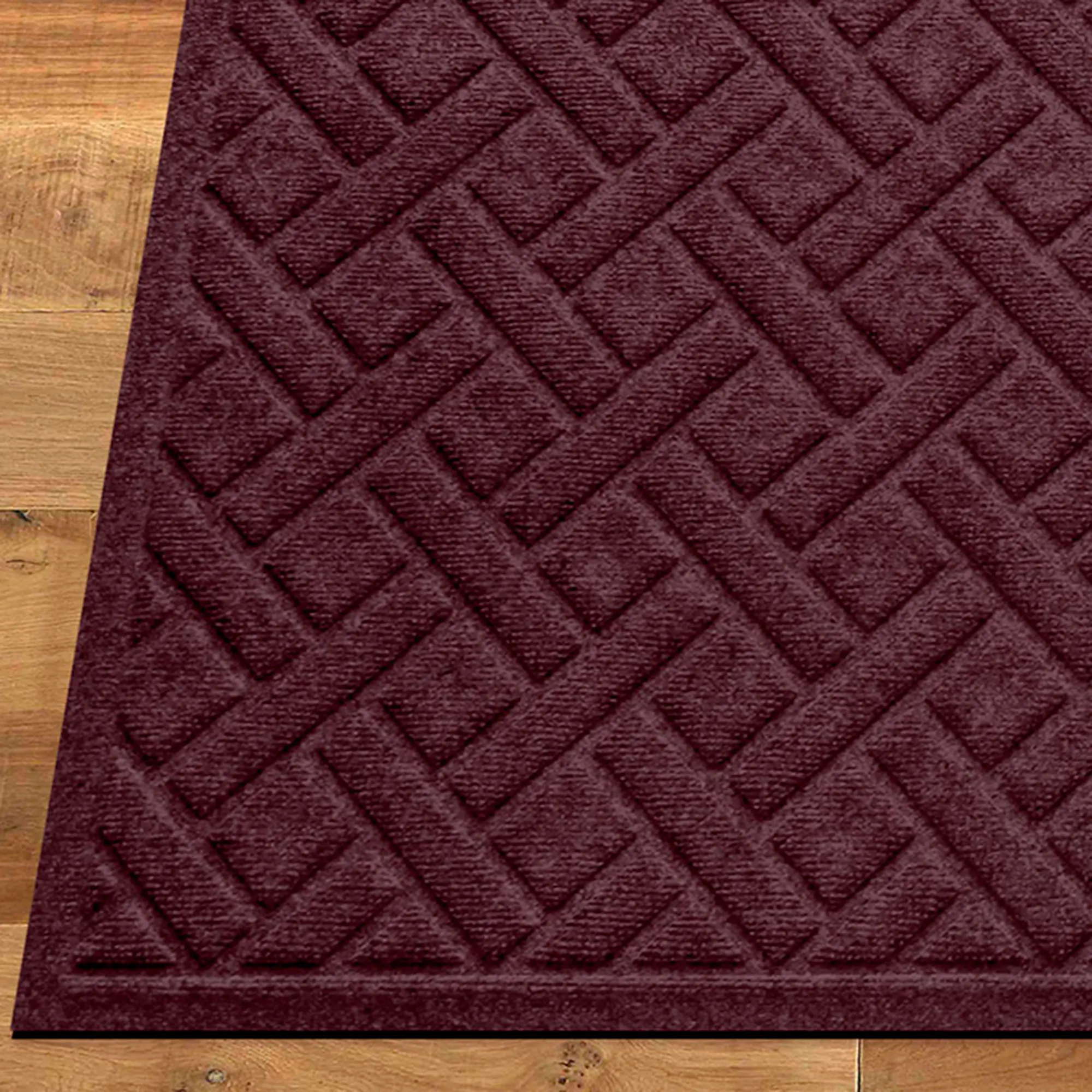 Classic geometrics create a timeless Lattice pattern upon this indoor/outdoor runner mat with a dimensional, molded design. The antistatic PET polyester floor mat has a skid-resistant SBR rubber backing that is slip-resistant and certified by the National Floor Safety Institute. The WaterHog(R) exclusive Water Dam border keeps dirt and water on the mat and not your floor. Design is mildew-, mold-, and rot-resistant to withstand indoor or outdoor year-round use. Specify Burgundy, Charcoal, Dark Brown, Dark Green, Gray, Khaki, Navy, or Slate Blue. Runner is 60"x22". Shake to remove dirt; hose off to clean.