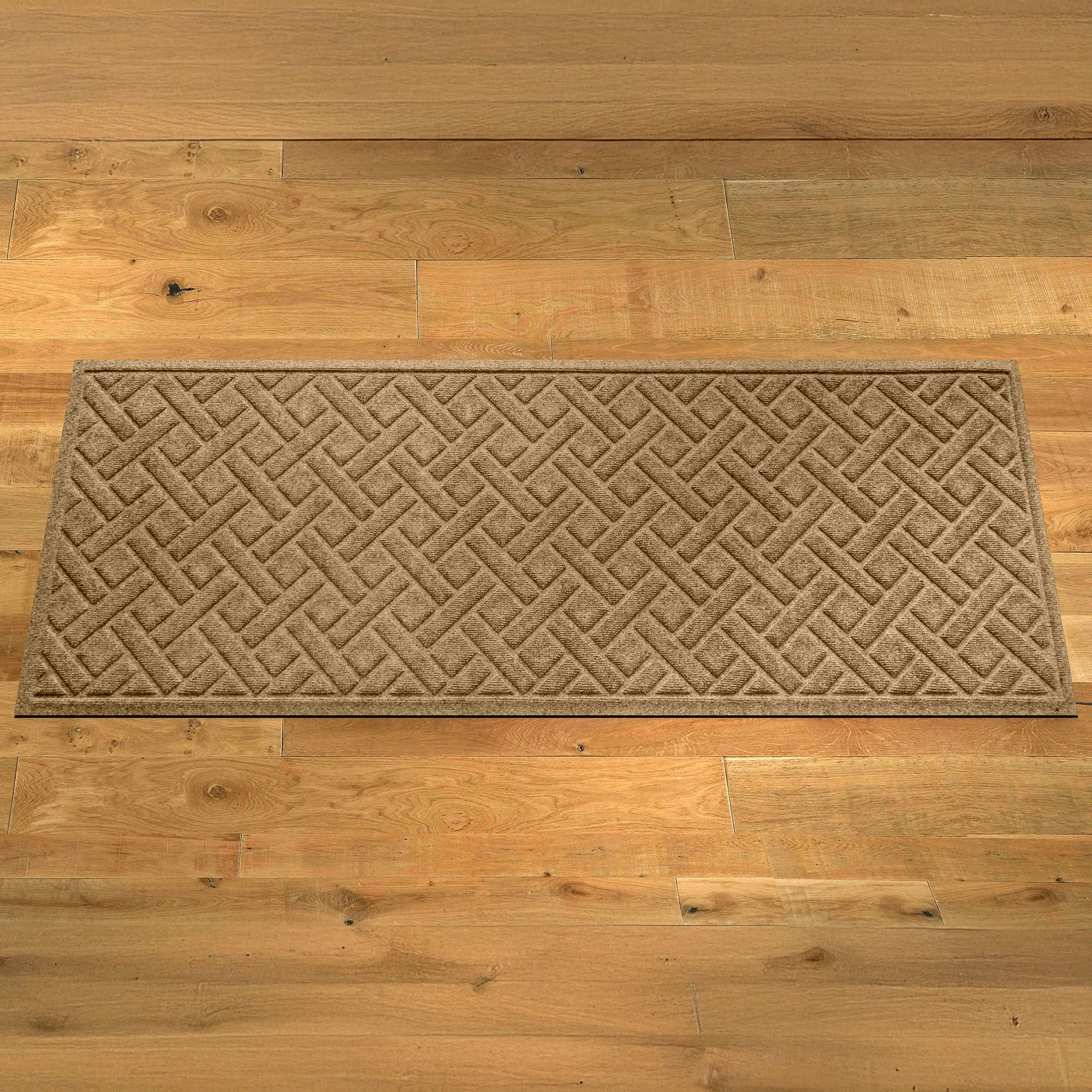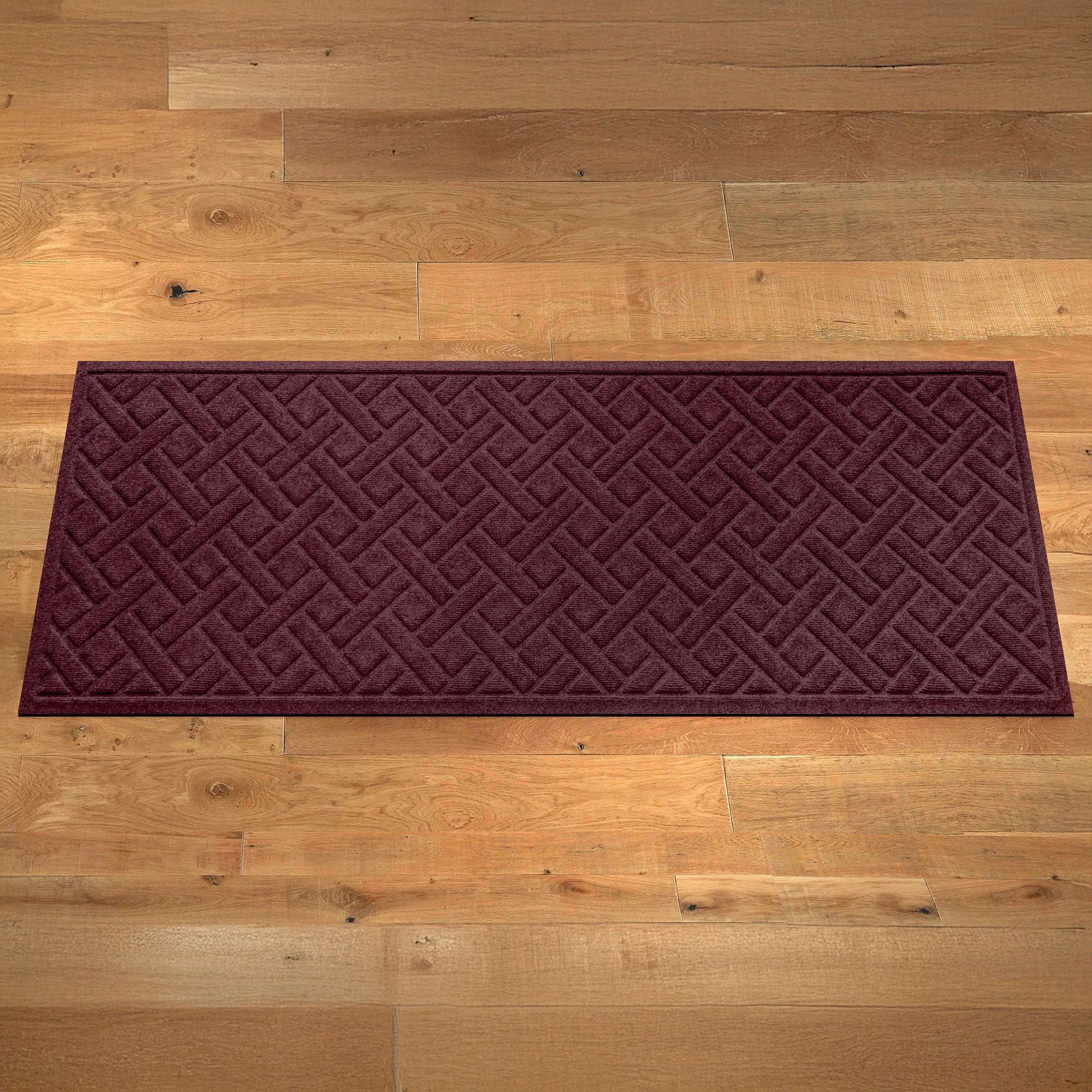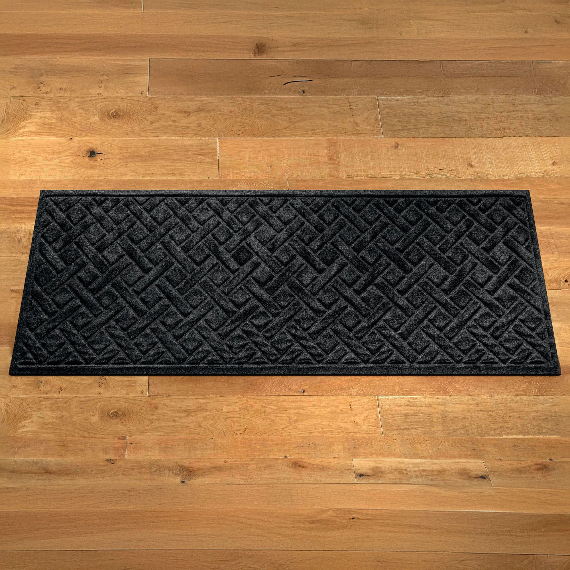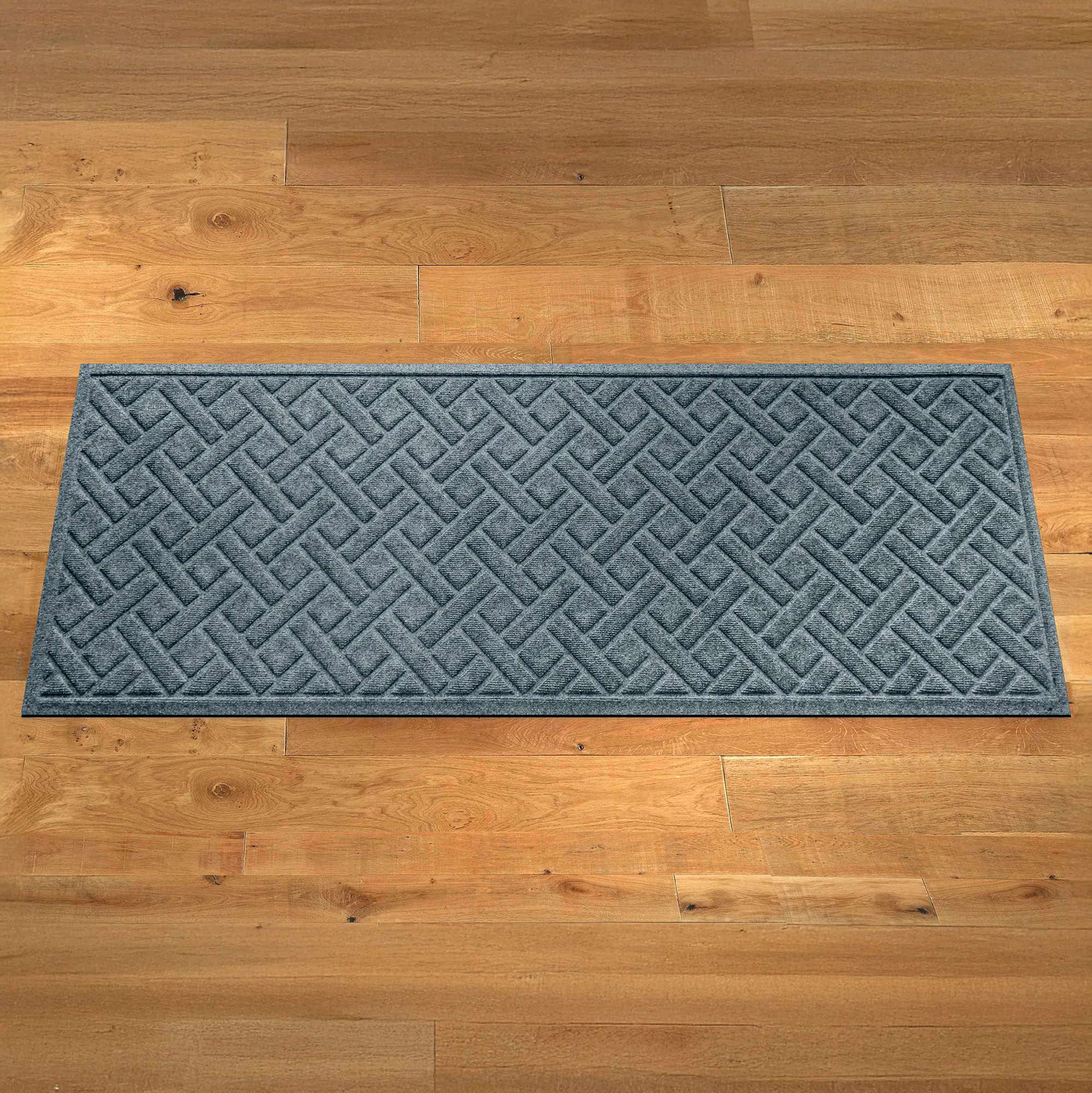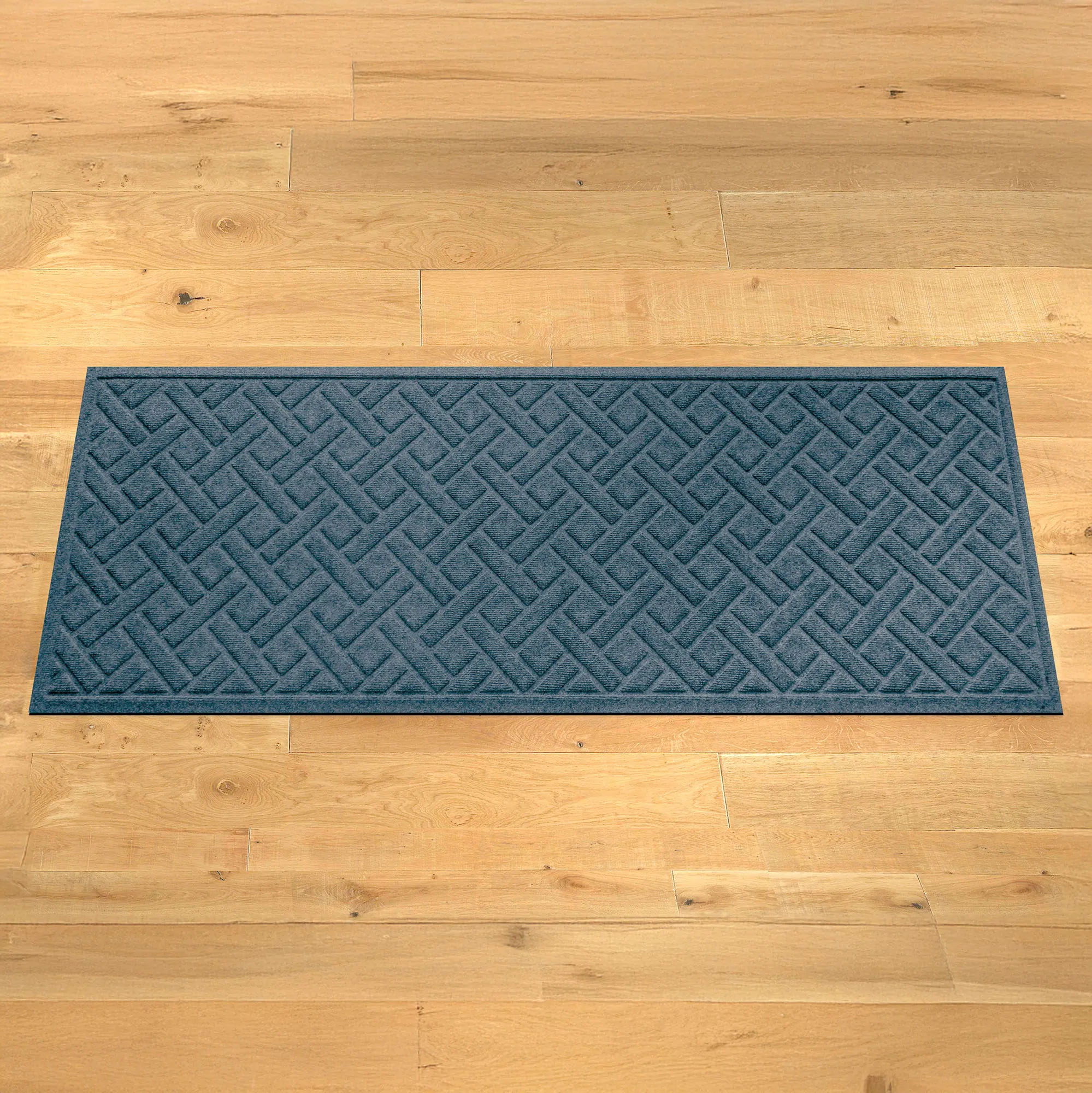 Classic geometrics create a timeless Lattice pattern upon this indoor/outdoor runner mat with a dimensional, molded design. The antistatic PET polyester floor mat has a skid-resistant SBR rubber backing that is slip-resistant and certified by the National Floor Safety Institute. The WaterHog(R) exclusive Water Dam border keeps dirt and water on the mat and not your floor. Design is mildew-, mold-, and rot-resistant to withstand indoor or outdoor year-round use. Specify Burgundy, Charcoal, Dark Brown, Dark Green, Gray, Khaki, Navy, or Slate Blue. Runner is 60"x22". Shake to remove dirt; hose off to clean.