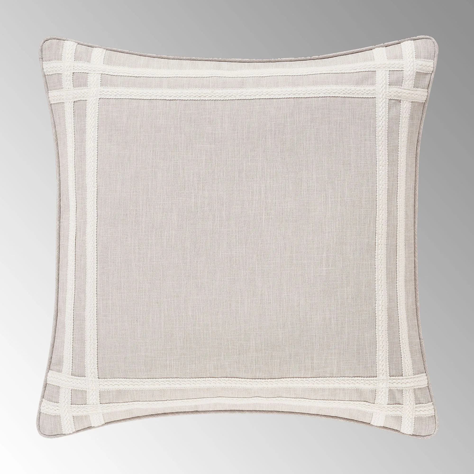 Reversible piped European Sham is beige with a double trim frame; reverses to ivory; zipper closure.