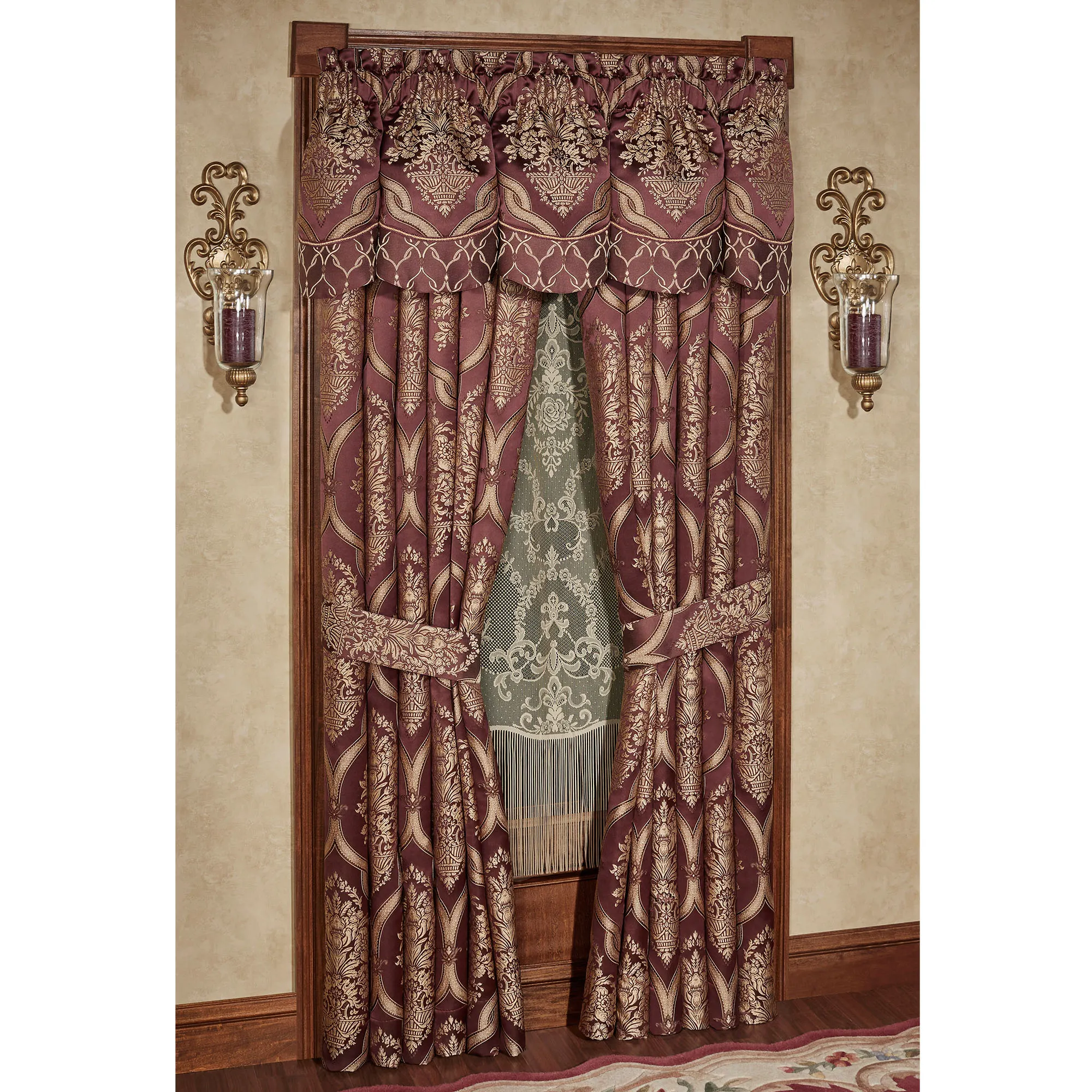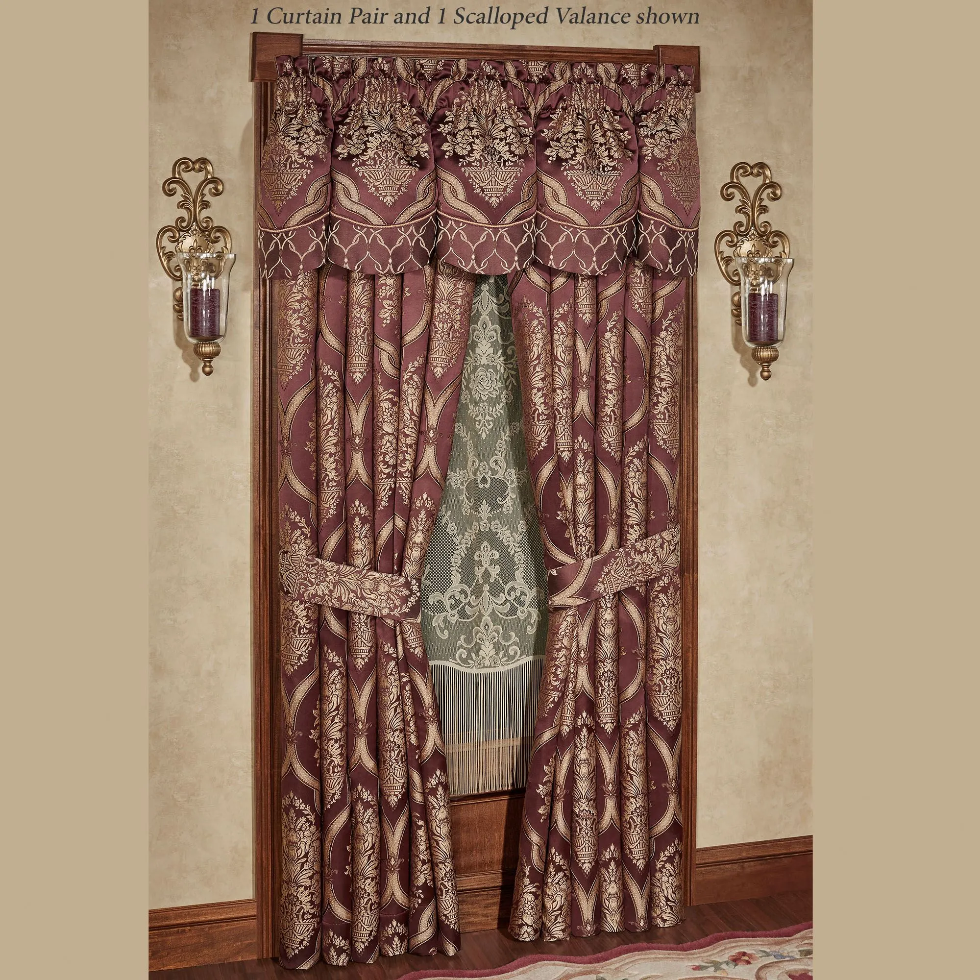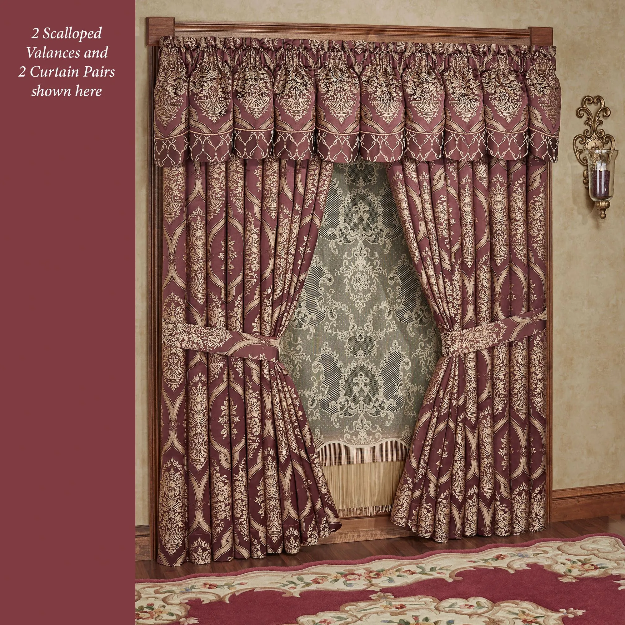 Laurelton Damask Medallion Wine Scalloped Valance Window Treatment