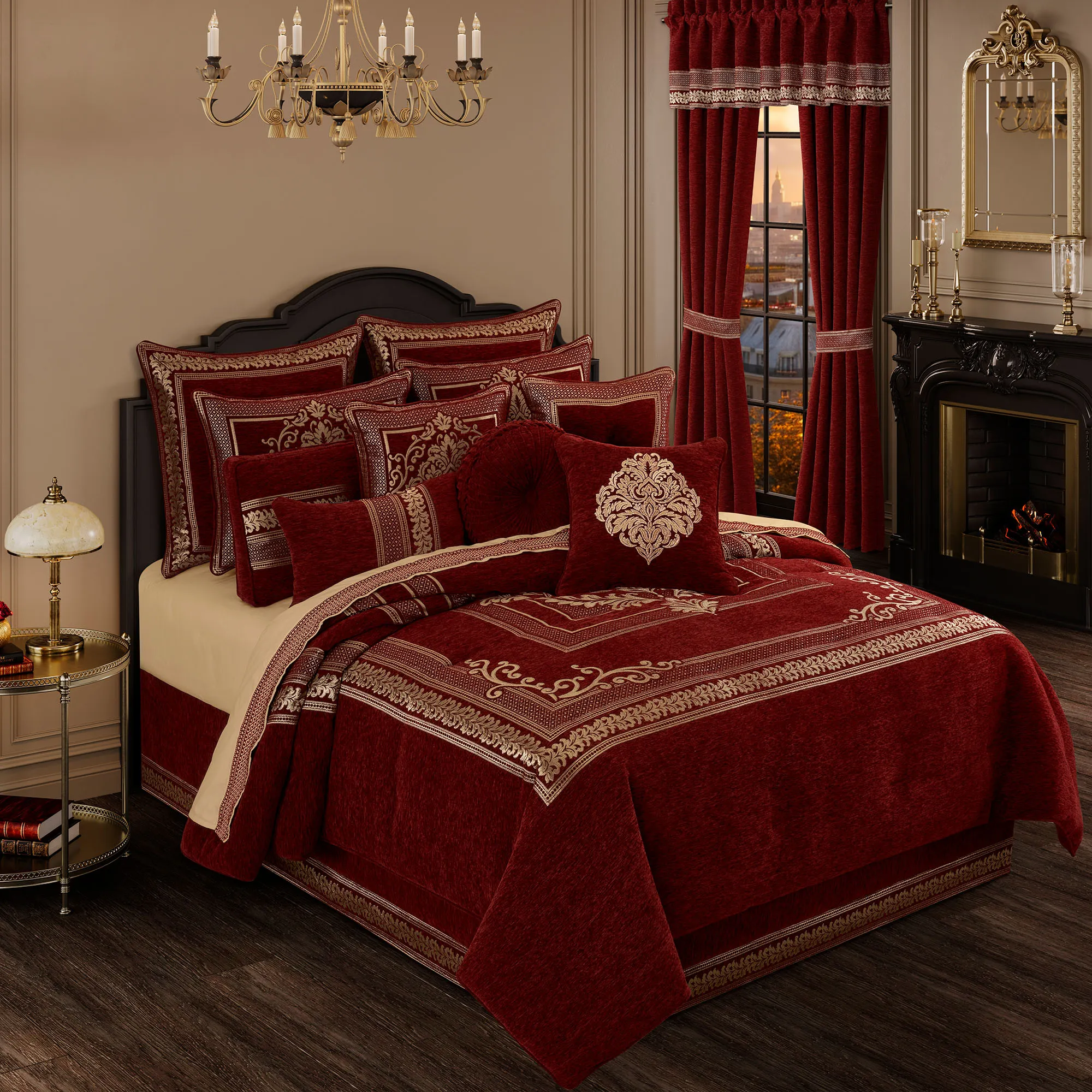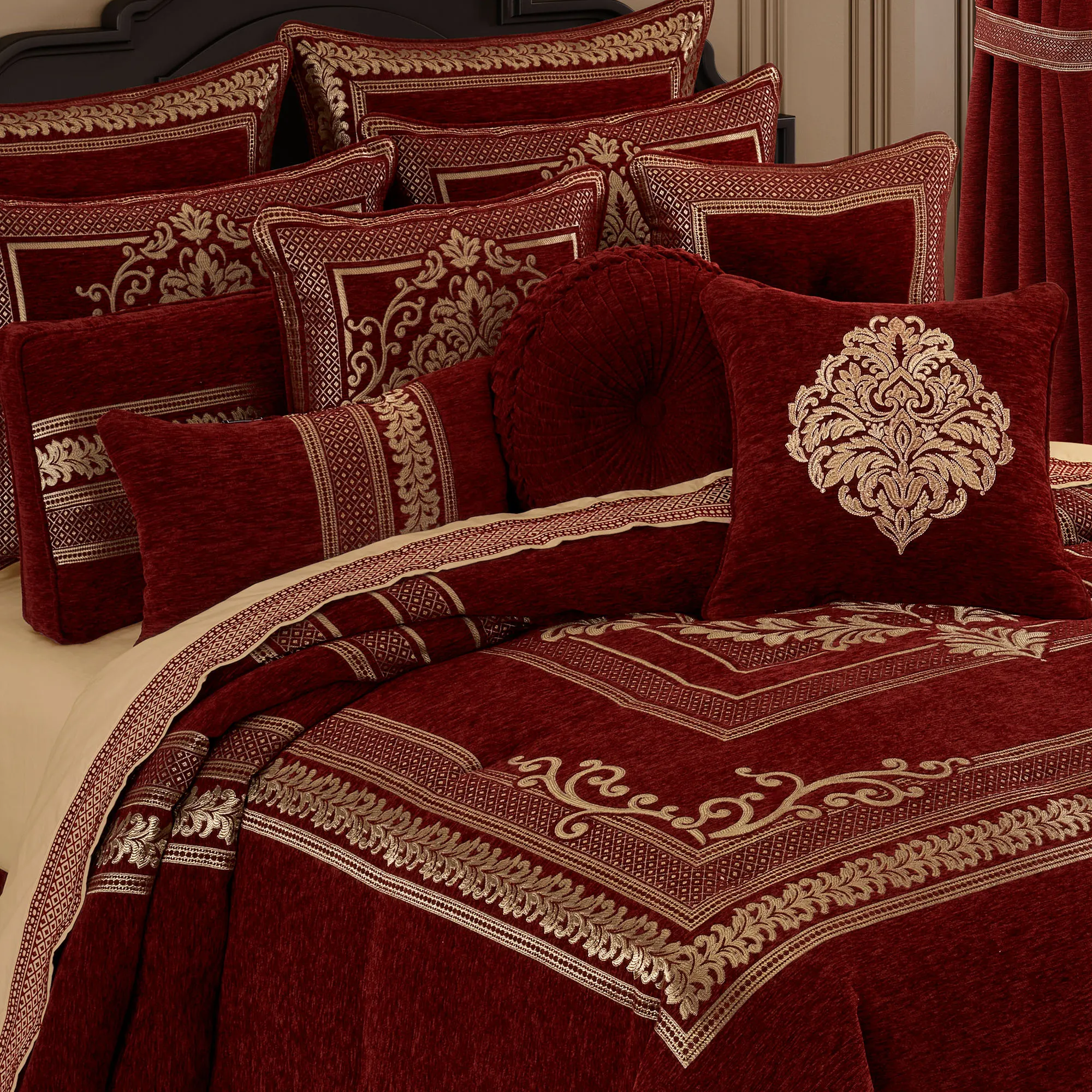 Laurenza Crimson and Gold Comforter Set Luxury Bedding by J Queen New York