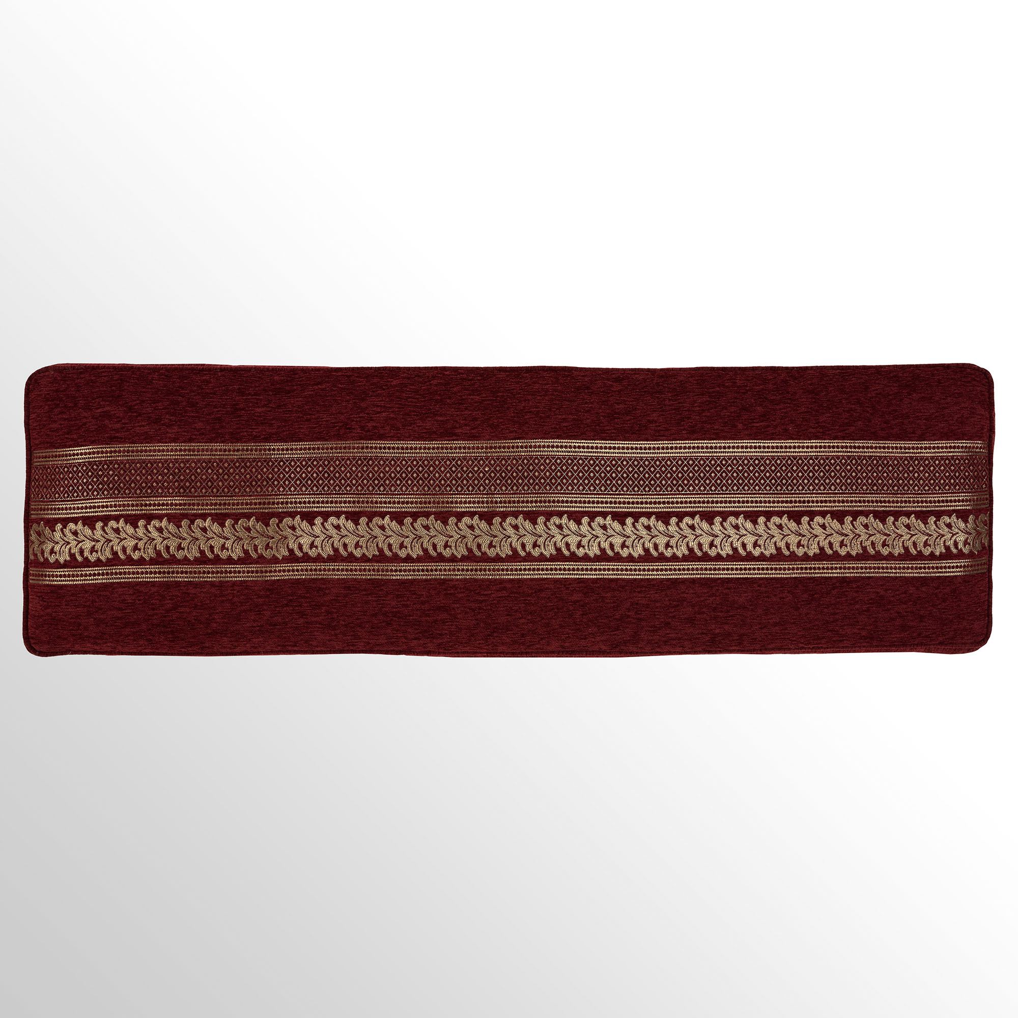 Beautifully embellish your decor with the elegant Laurenza Comforter Bedding from J. Queen New York. The oversized, polyester chenille comforter has engineered woven damask along with intricate scroll, diamond, and fleur designs. Colors include rich shades of gold and crimson. Backing is solid crimson. Fill is polyester. Dry clean only. Imported.