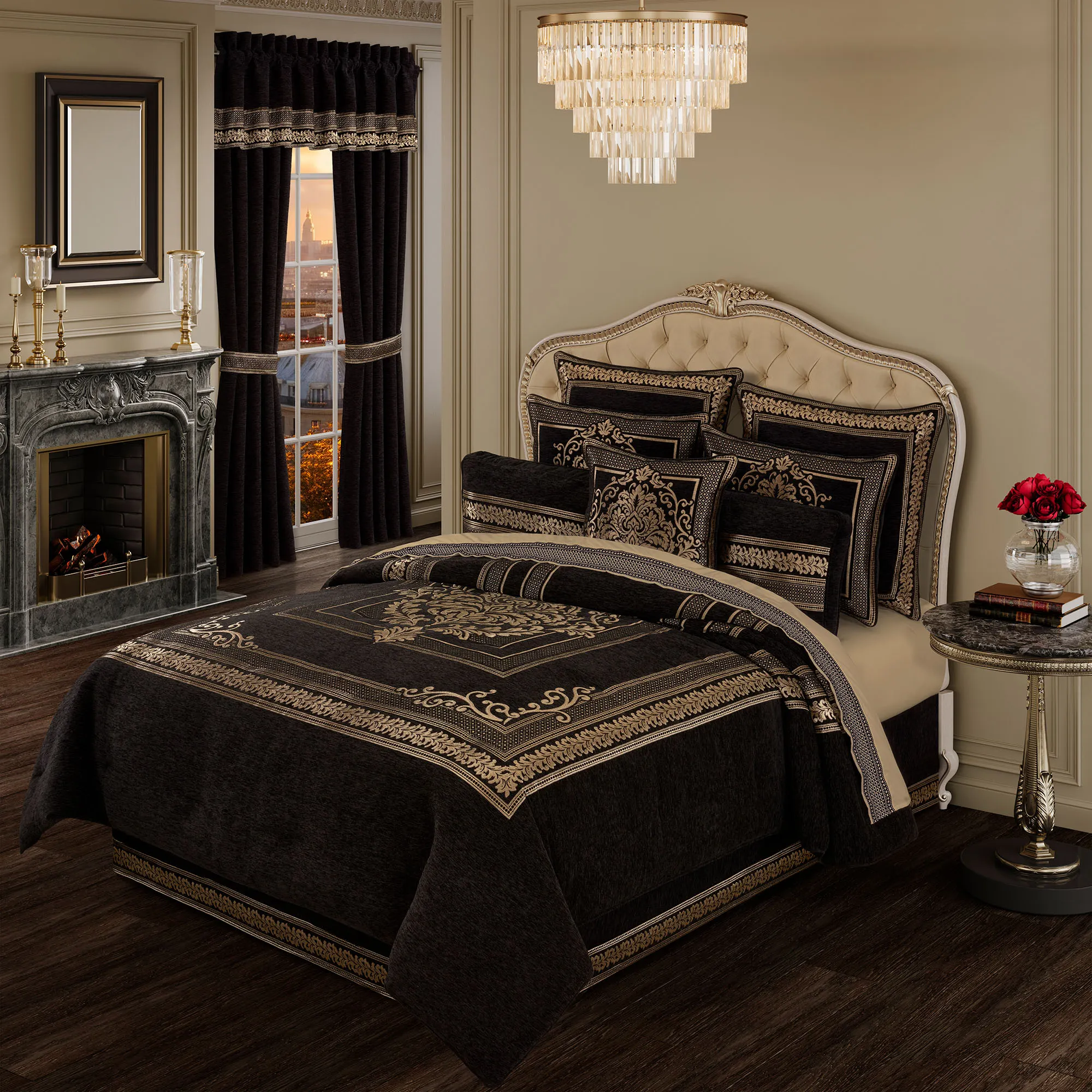 Laurenza II Black and Gold Comforter Set Luxury Bedding by J Queen New York