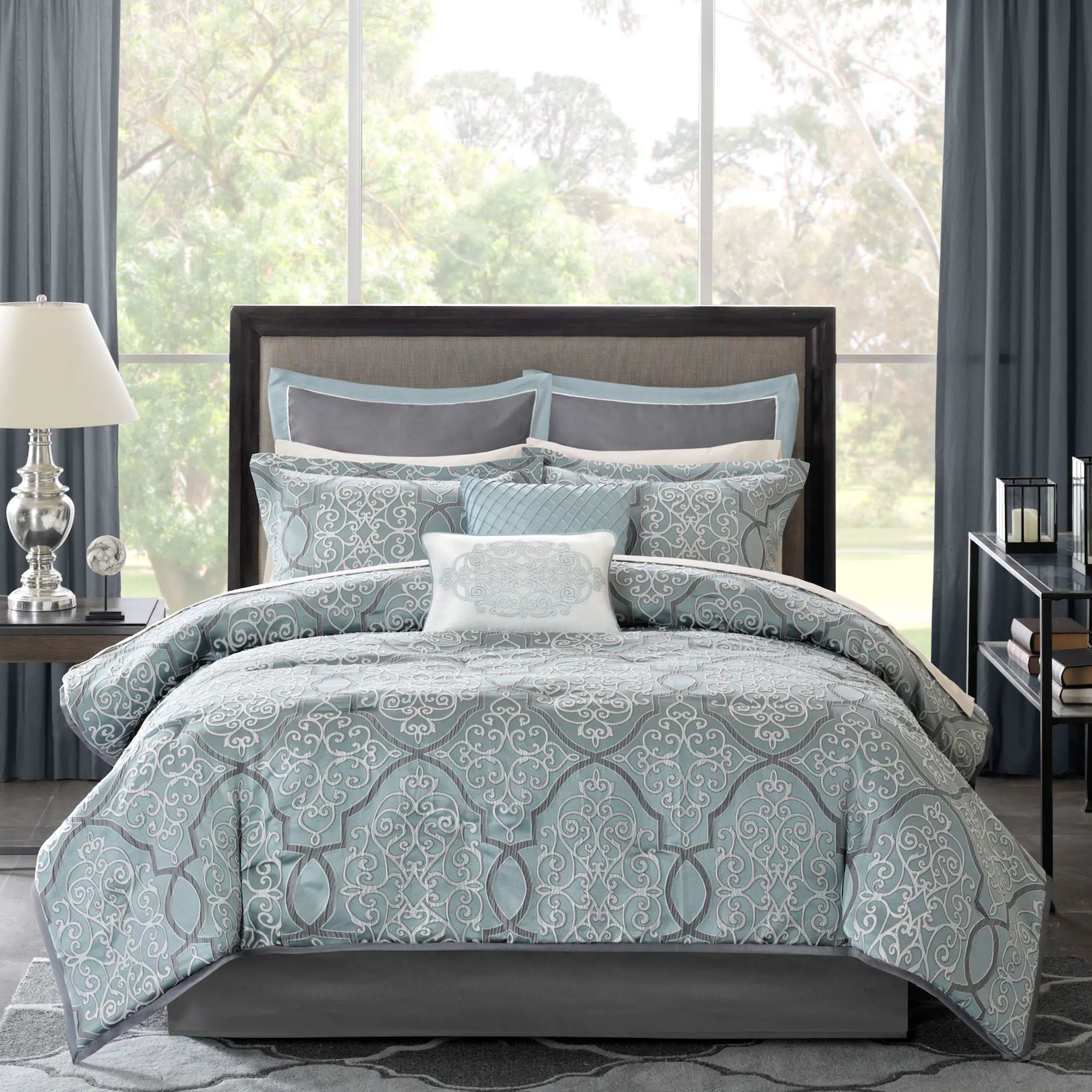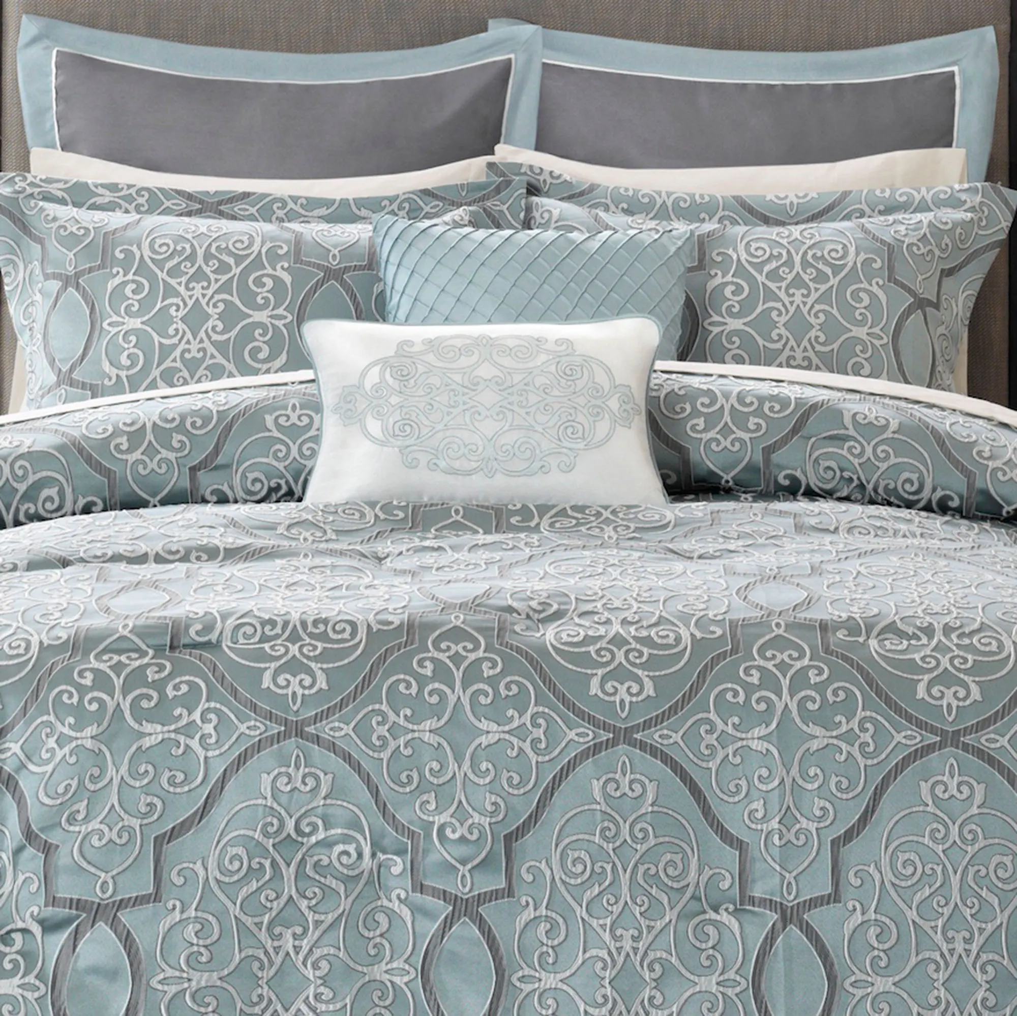 Lavine Glacier and Gray Damask 12 pc Comforter Bed in a Bag Set by Madison Park