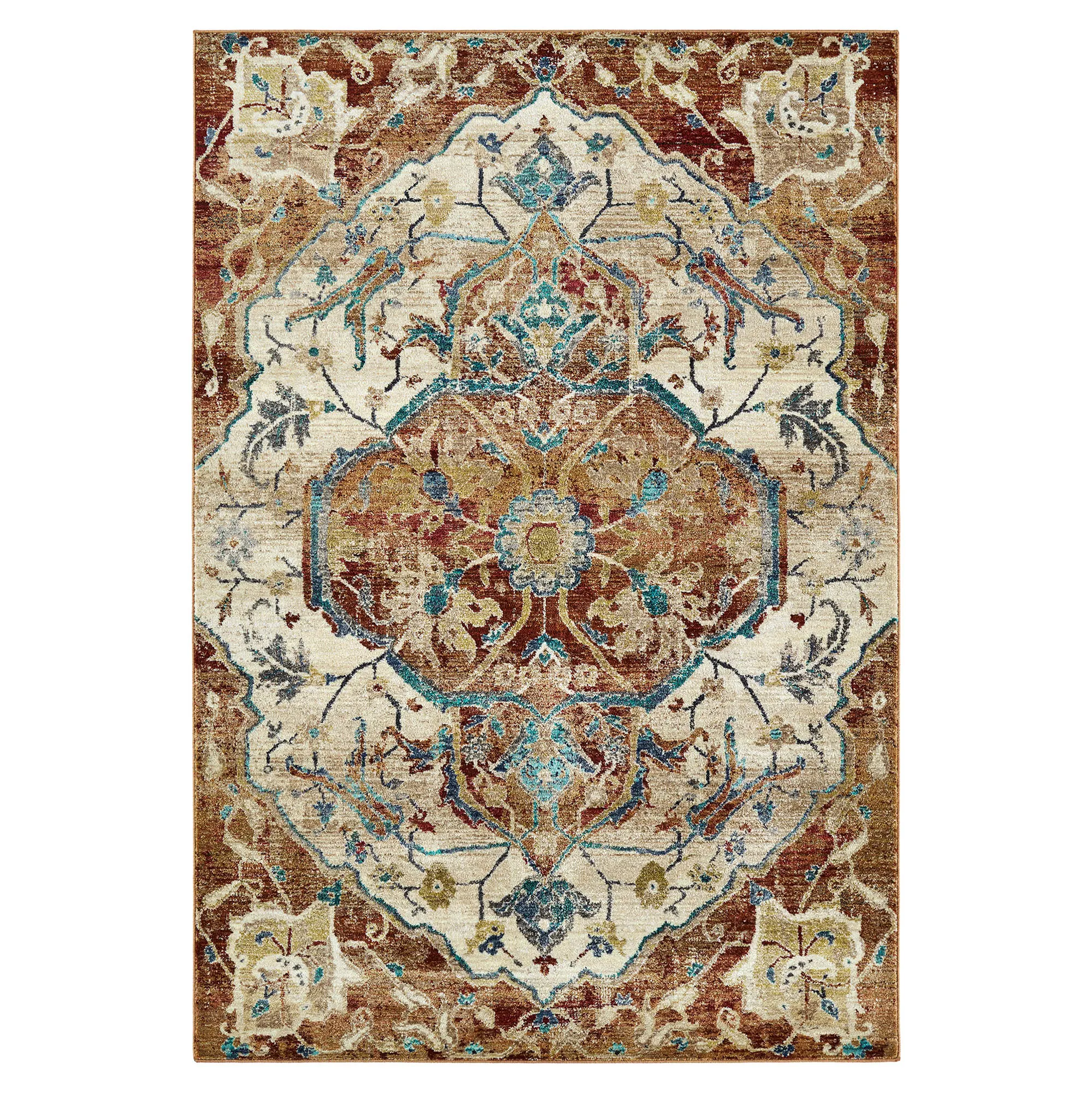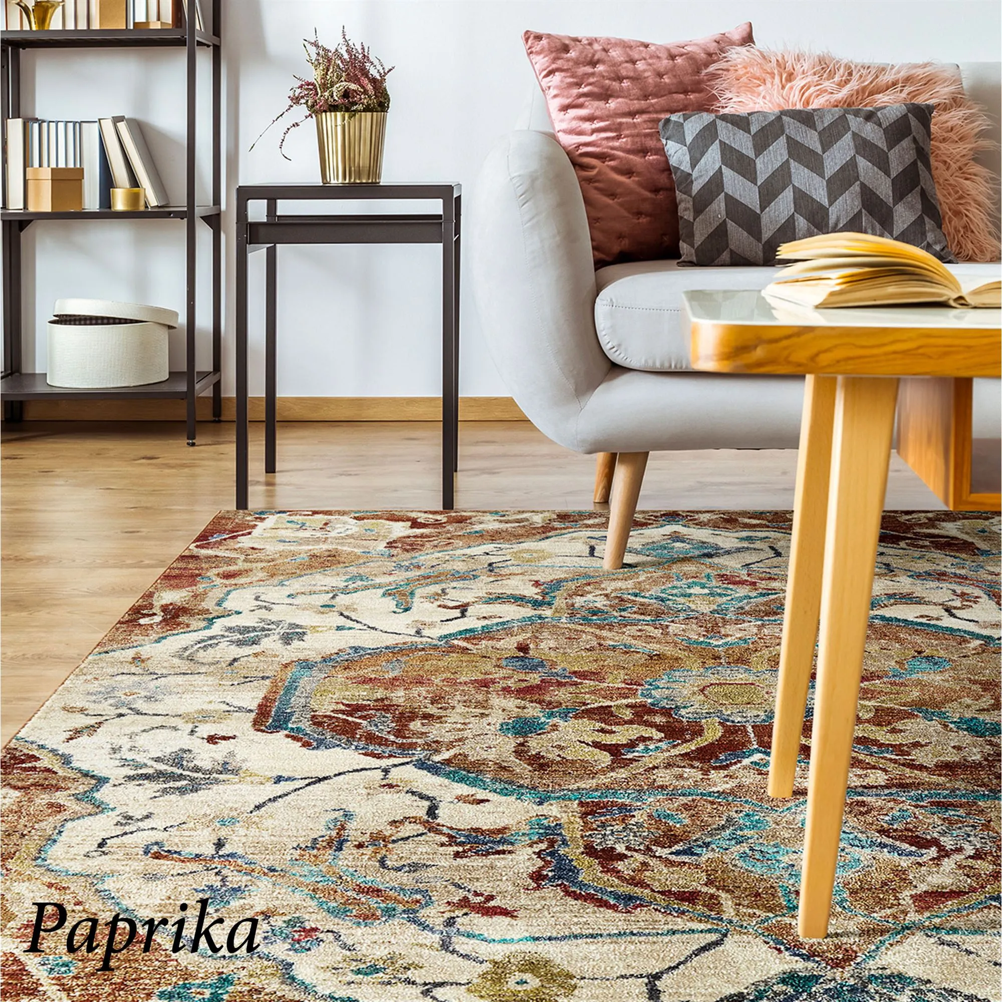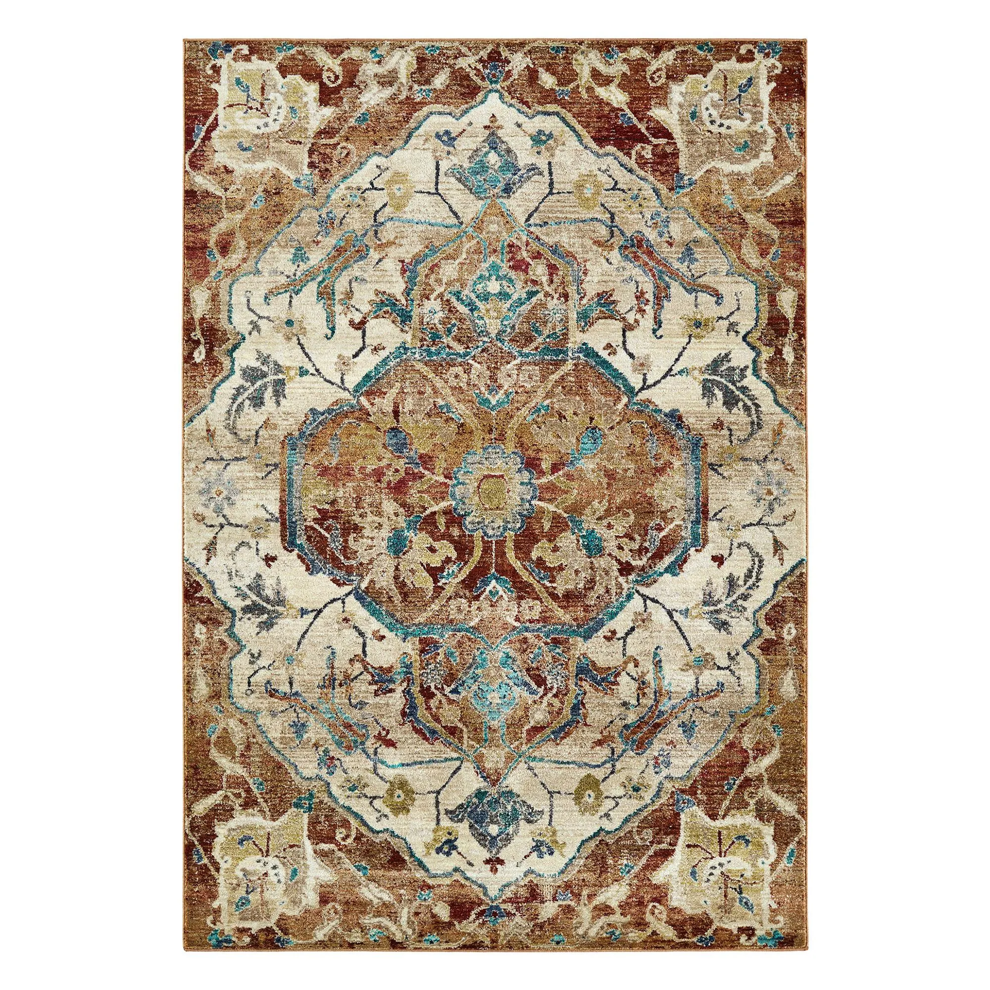 The ornate motifs on the Lawrence Rug add character in any setting. Power-loomed polypropylene area rug, .4" thick, features florals, scrolling designs, and medallions. Paprika includes colors of paprika, brick red, coral, sand, ivory, gray, blue, and teal. We recommend professional cleaning by a rug cleaner. Imported.