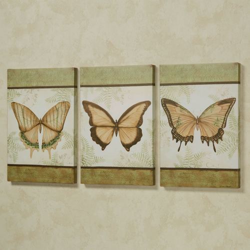 The Le Papillon Canvas Wall Art Set elegantly displays a butterfly's true beauty. From original acrylic artwork by artist Jean Plout, these canvases feature exquisitely detailed butterflies in dark brown, light brown, and deep sage hues. Sectioned backgrounds with fern leaves and decorative scrollwork designs, all in off-white, fern, olive green, light brown, and dark brown shades, add a further natural allure. Gallery-wrapped over a wooden frame, each canvas is proudly made in the USA and measures 16"Wx1.5"Dx24"H.